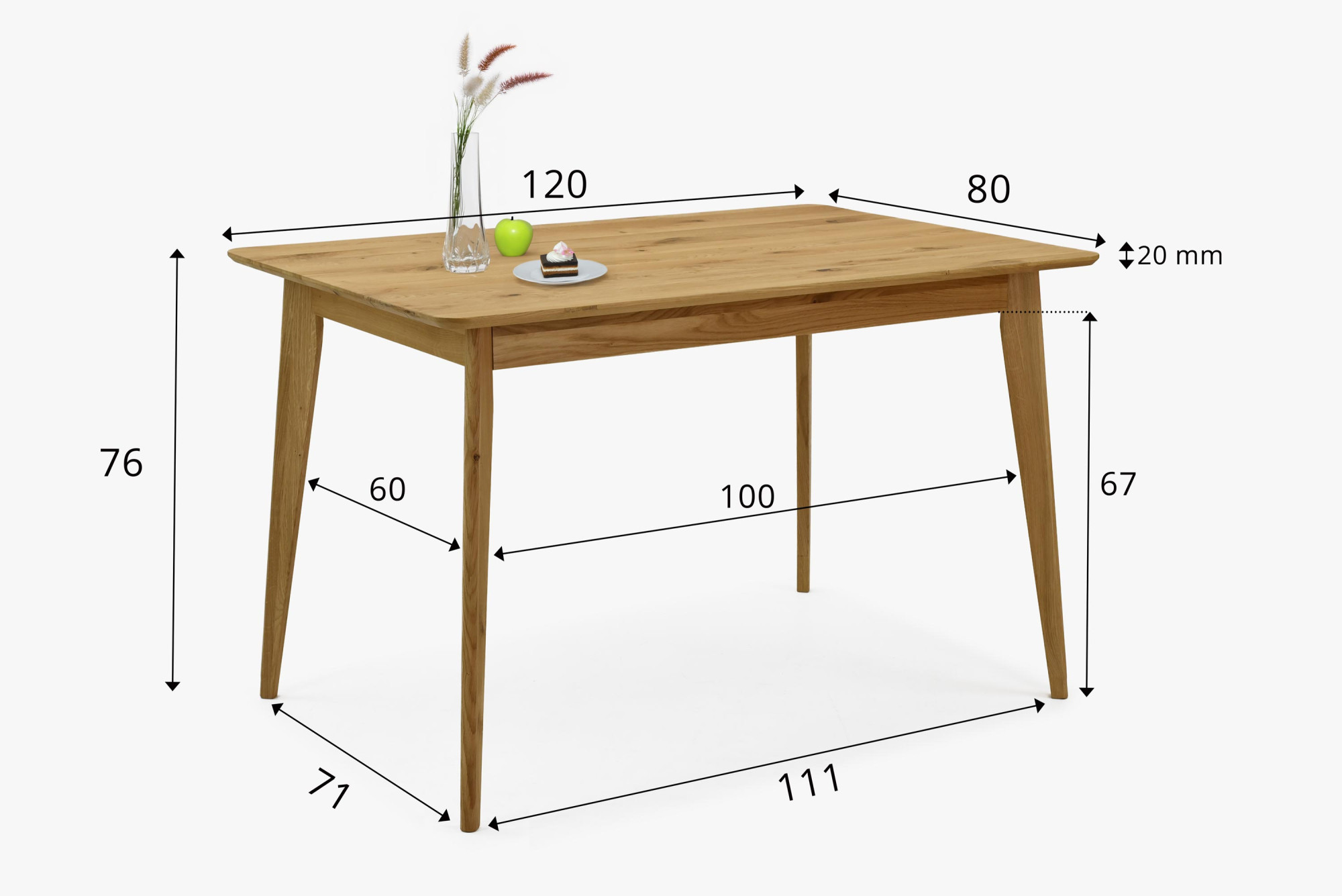 A 120 x 80 cm-es méret ideális kisebb étkezőkbe vagy konyhákba is, anélkül hogy le kellene mondani a kényelmes étkezésről.