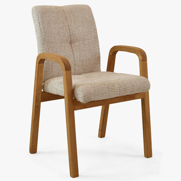 - Székek: tömör tölgy bézs kárpittal, elegáns karfákkal
