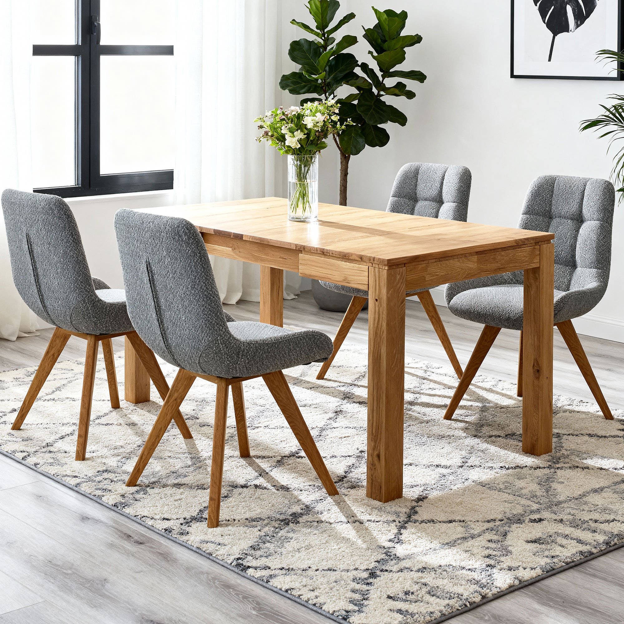- Lehet a szettet más tölgyfa bútorral kombinálni? Igen, az asztal és a székek univerzálisak, jól illenek más tömör tölgyfa termékekhez.