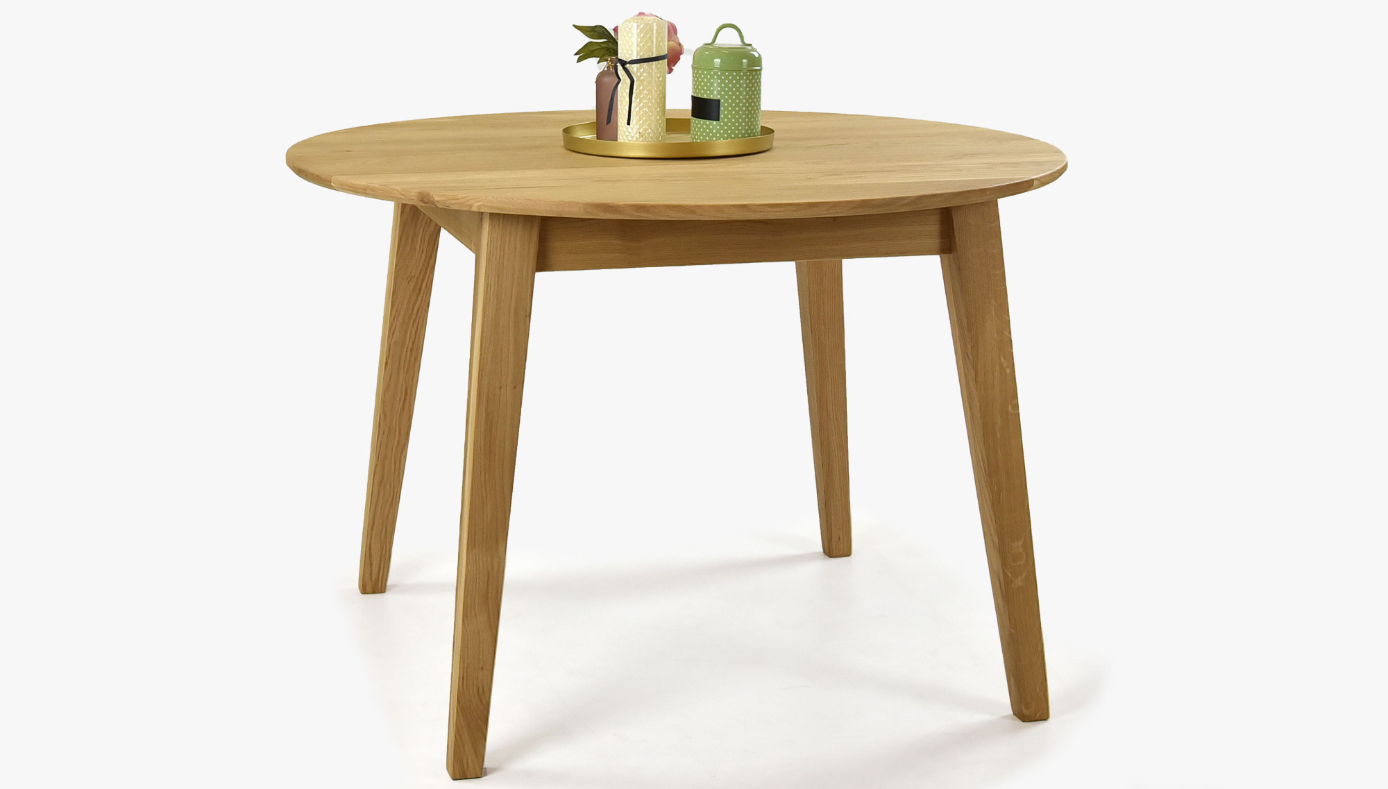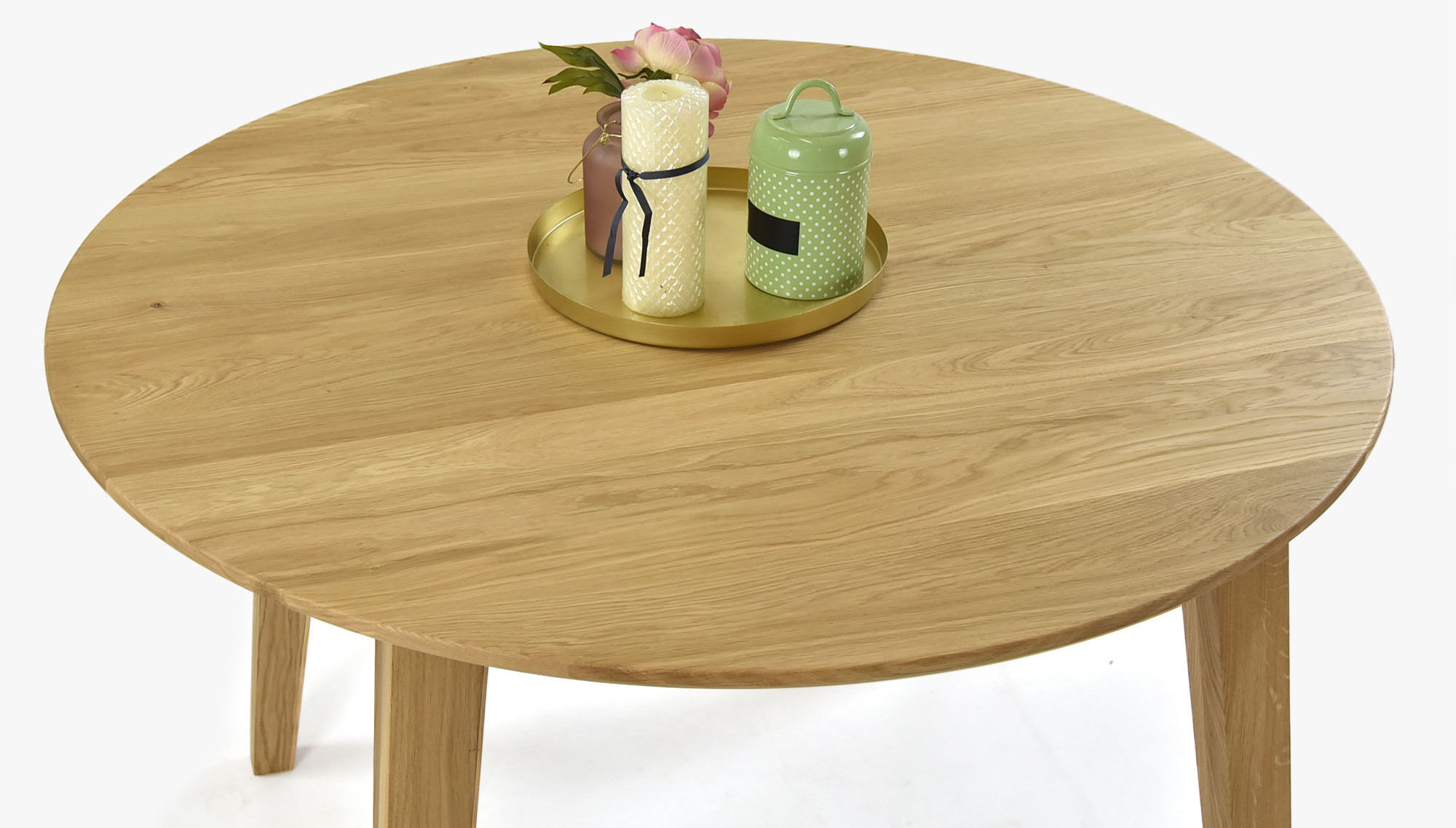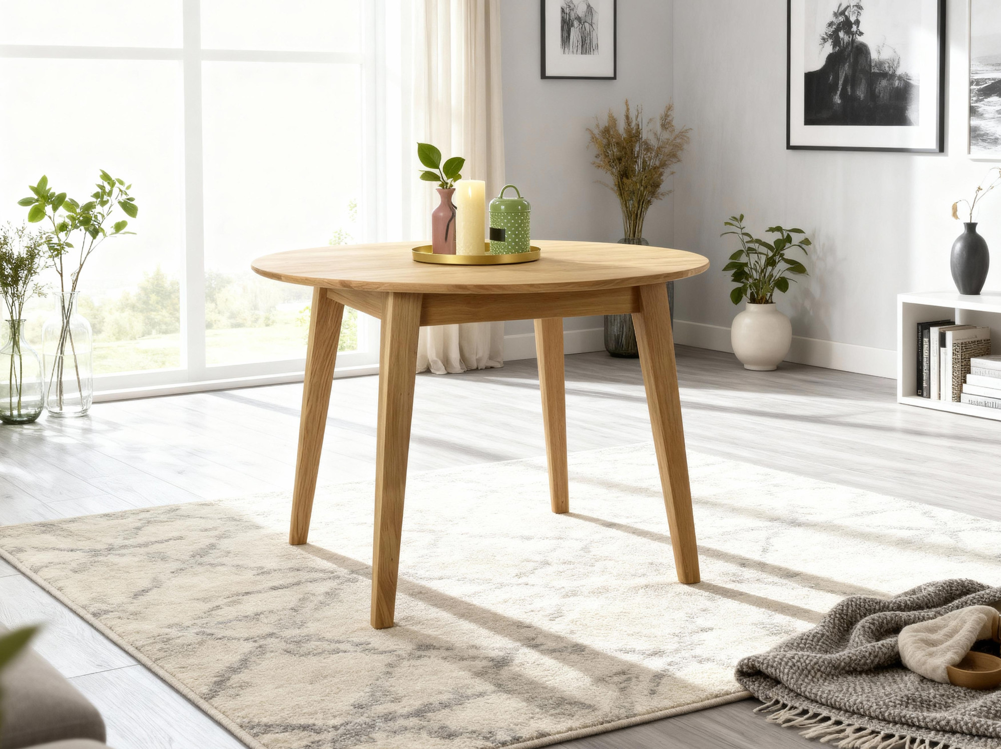 - Masszív tölgyfa asztal 90 cm átmérővel – ideális 4 személy számára