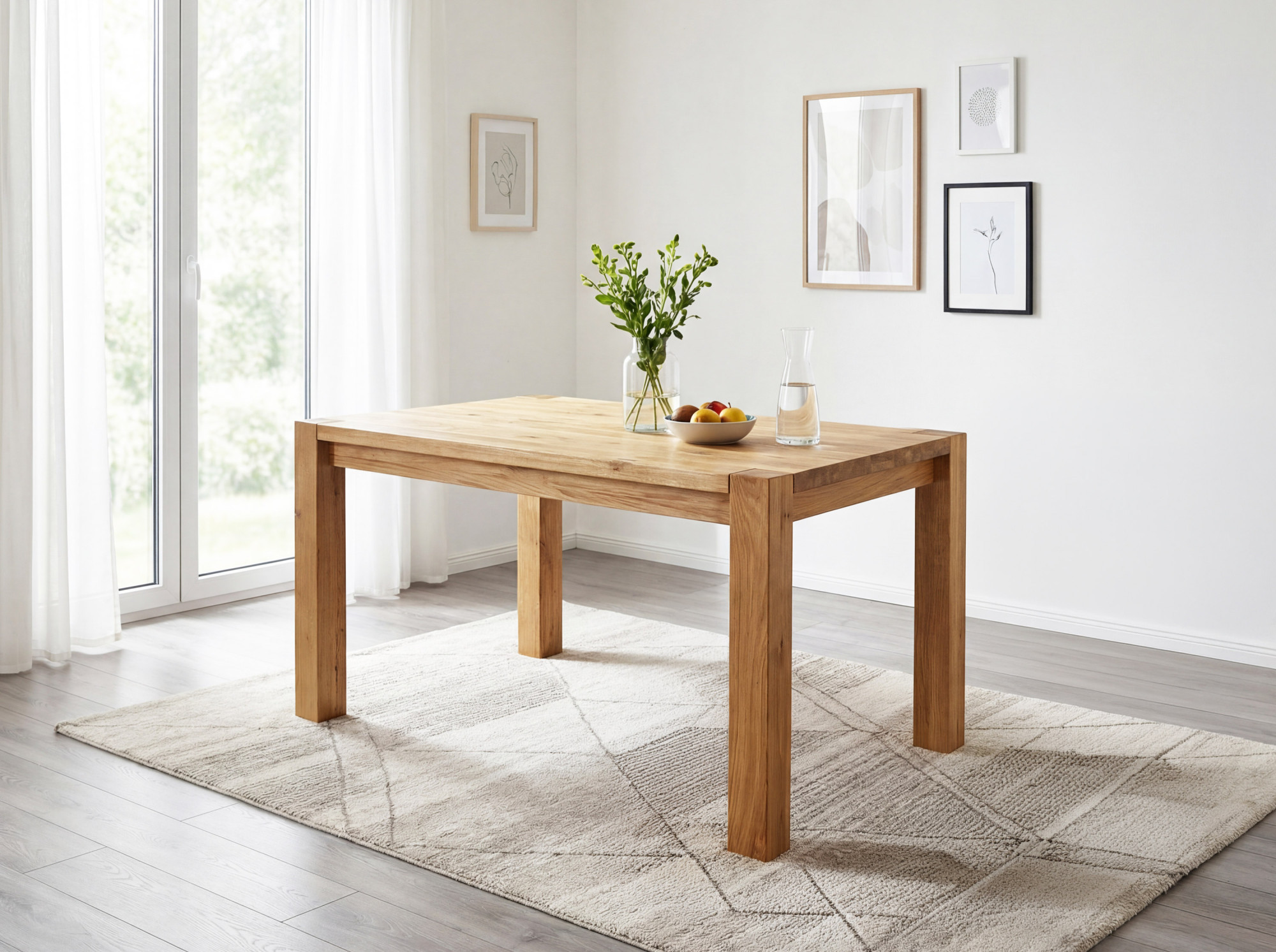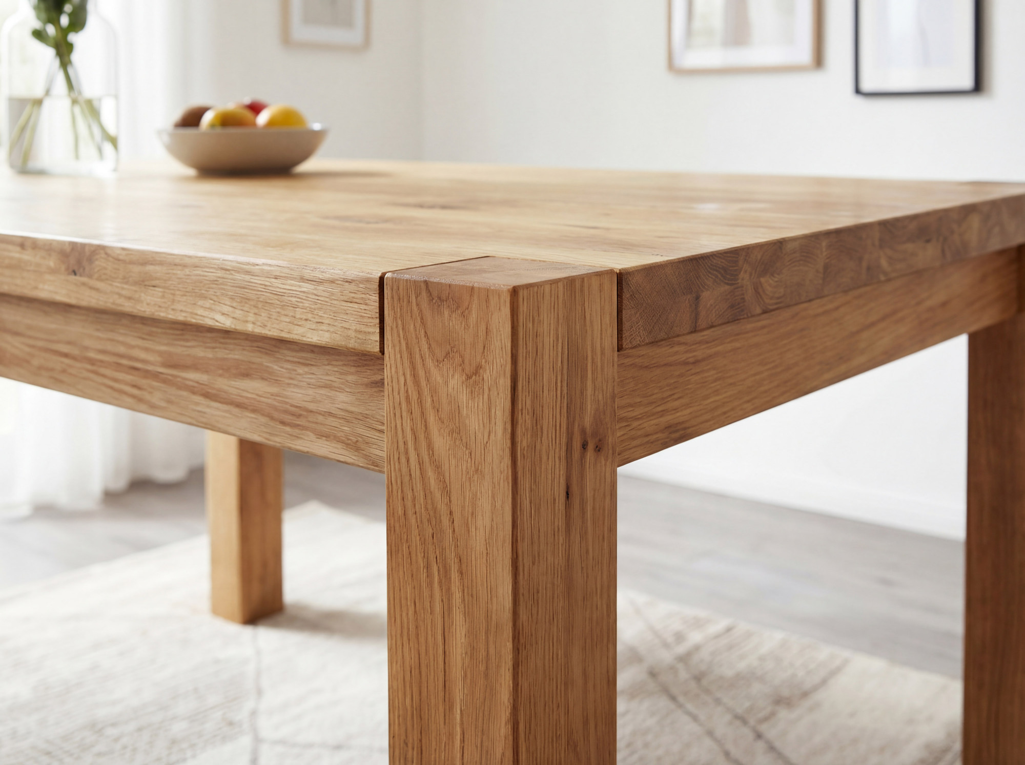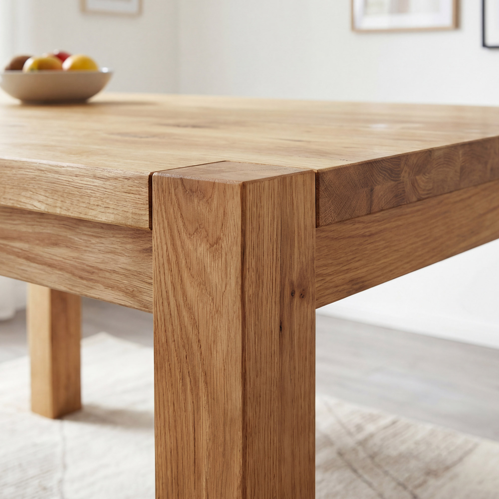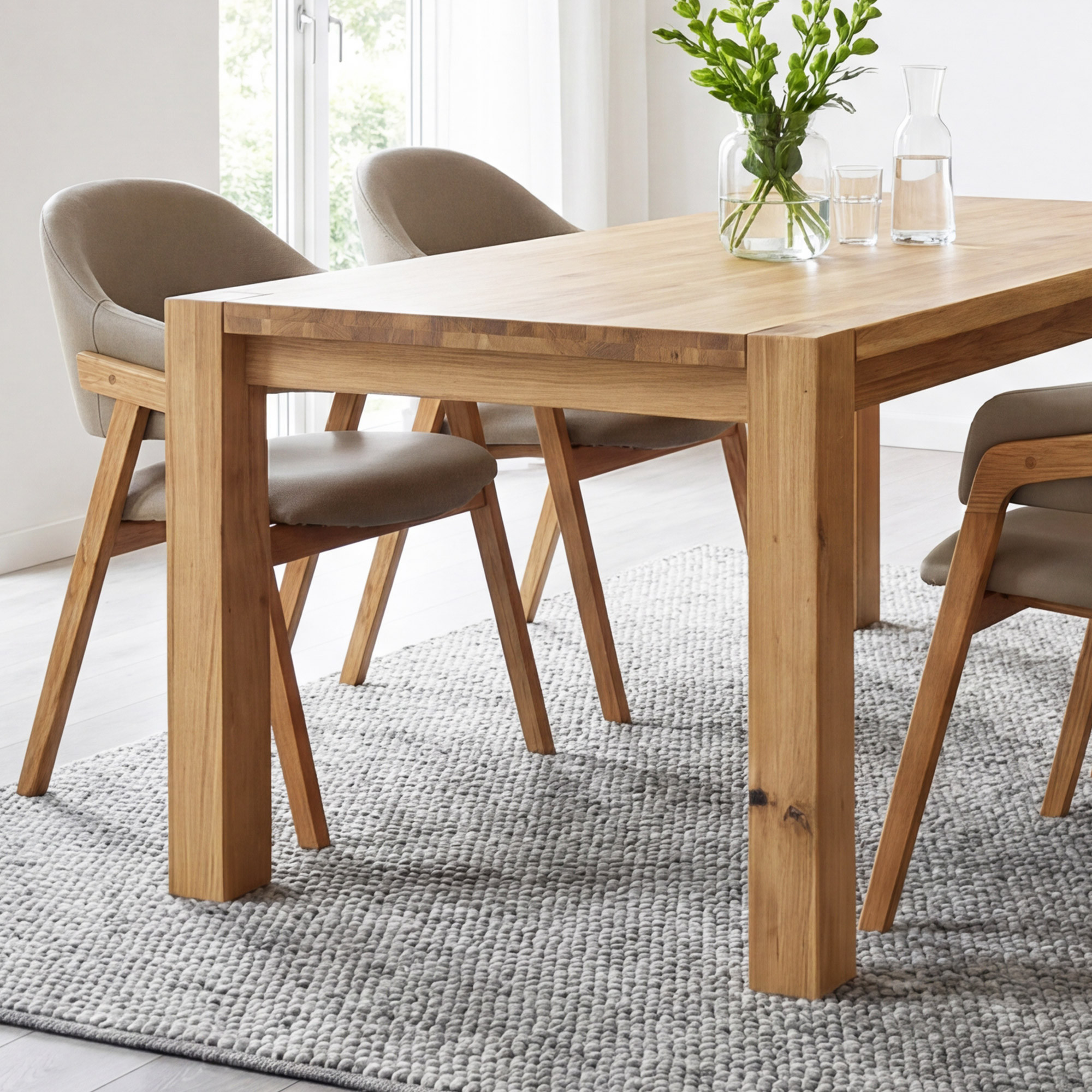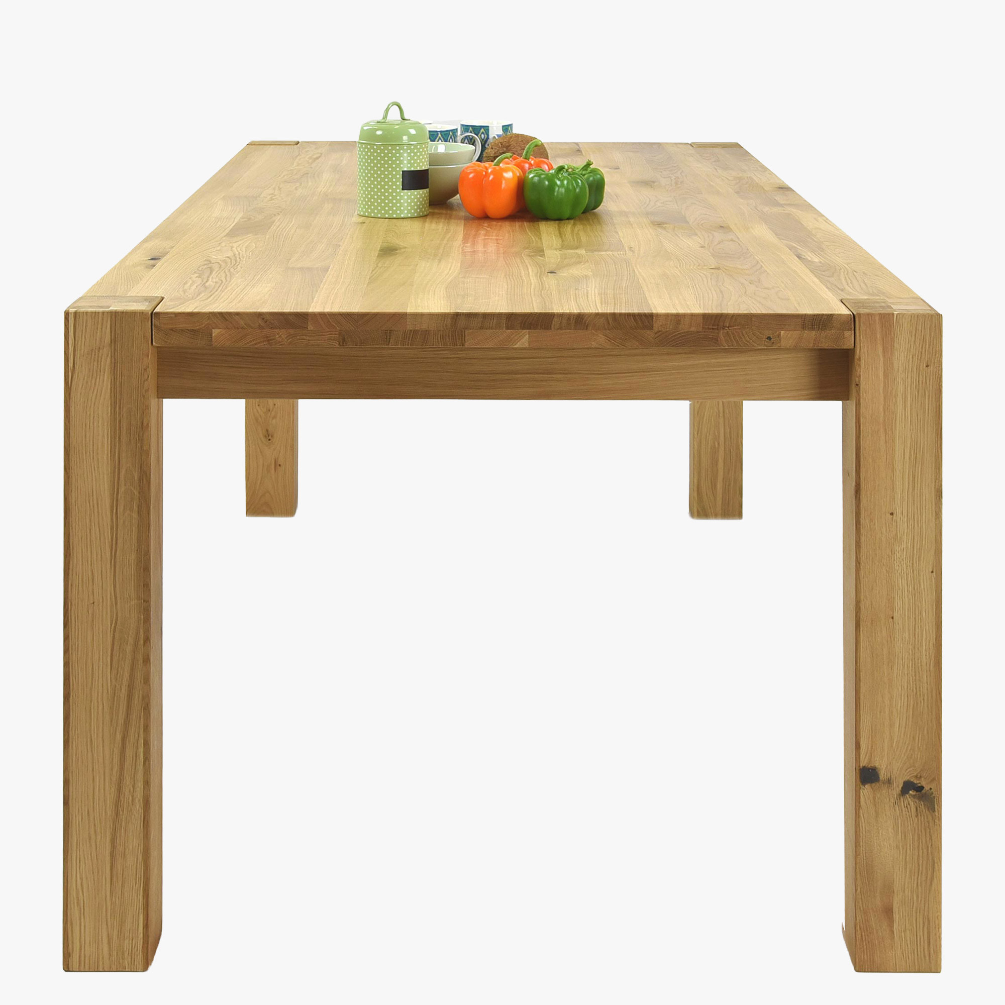 Az asztal szerkezete rendkívül robusztus – masszív lábak 8 x 8 cm keresztmetszettel maximális stabilitást biztosítanak még teljes kihasználtság esetén is. Az asztallap vastagsága 2 cm, a széleknél akár 4 cm, ami masszív és reprezentatív megjelenést kölcsönöz az asztalnak. Az asztal magassága 76 cm (a padlótól az alsó peremig 64 cm) ideális a kényelmes étkezéshez. A tömör tölgy kemény faanyag, amely ellenáll a vágásoknak és karcoknak, ezért ez az asztal generációkon át tartó minőséget garantál. Az asztal szétszerelve érkezik, egyszerű szerelési útmutatóval – az összeszerelés gyorsan elvégezhető, speciális szerszám nélkül.