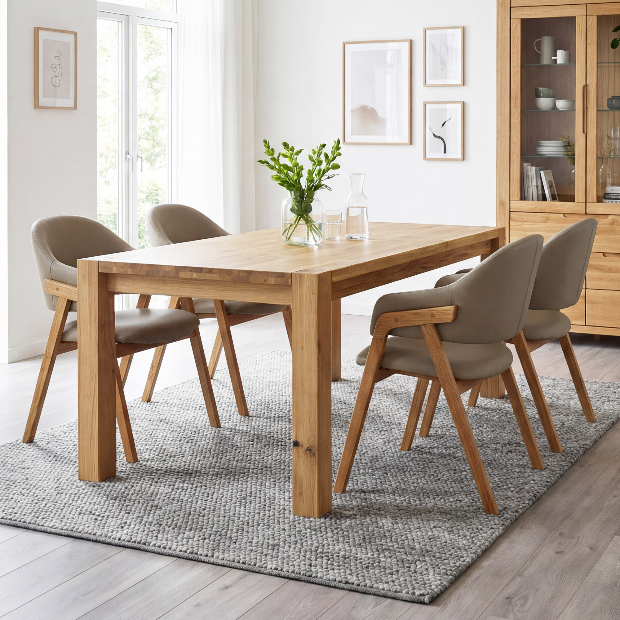 A Košice étkezőasztal tömör tölgyfából készült, és ideális választás mindazoknak, akik tartós, minőségi bútort keresnek. A 120 x 80 cm-es kompakt méret ideális kisebb étkezőkbe és konyhákba, és kényelmesen 4 személynek ad helyet. Az asztal nagyobb méretekben is elérhető: 140 x 90 cm és 180 x 90 cm. Az előállításhoz kizárólag vad tölgyet használtunk – a fát nem fehérezték, nem pácolták, így megőrzi természetes erezetét és az előforduló csomókat, amelyeket szándékosan hagyunk az autentikus, természetes megjelenésért. Az asztallap felületét egy ismert márka természetes olajával és viaszával kezeltük, ami kiemeli a fa szerkezetét és hatékony védelmet nyújt kisebb karcok és kopások ellen.