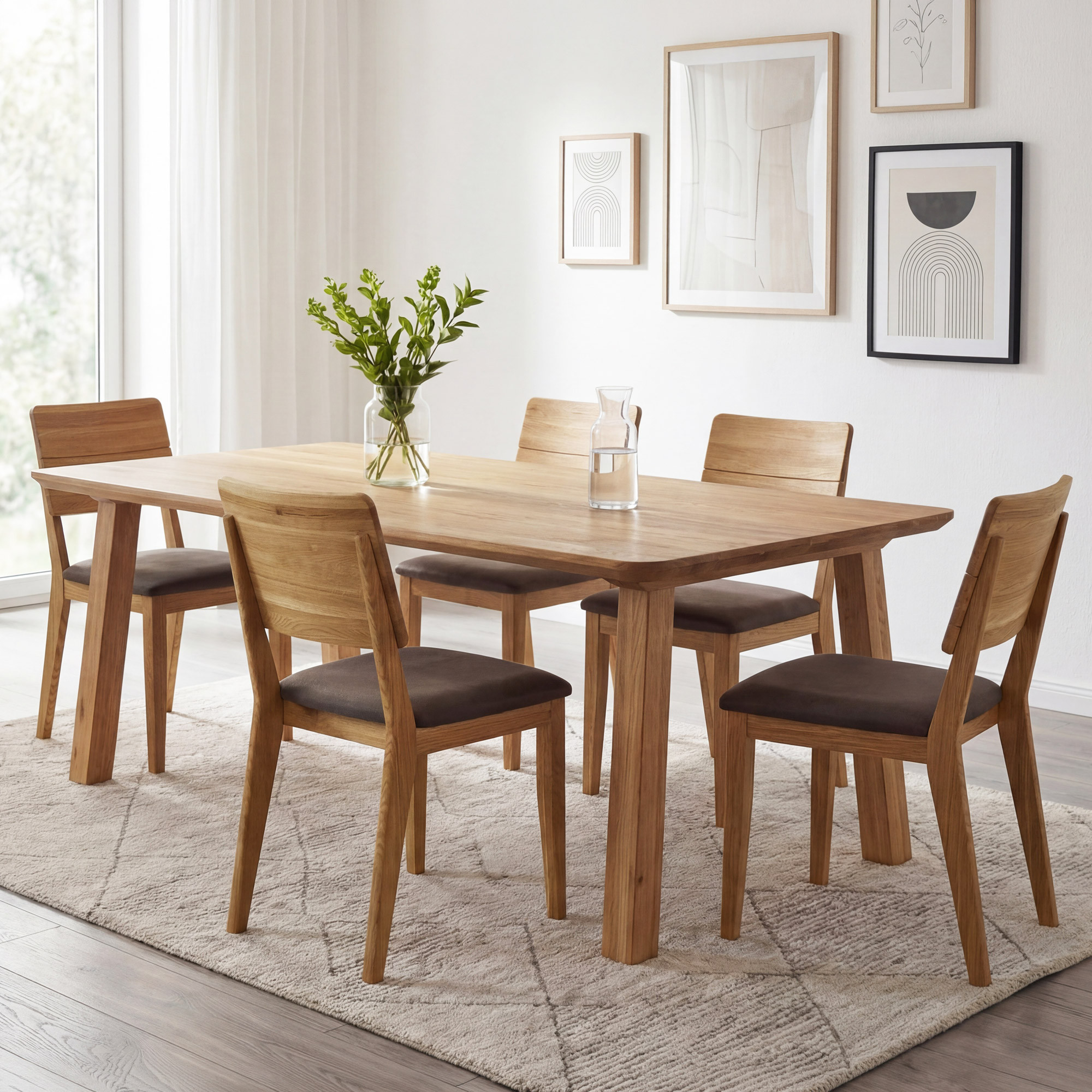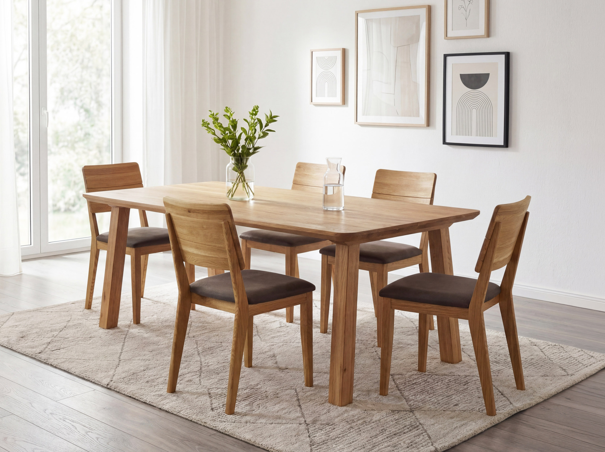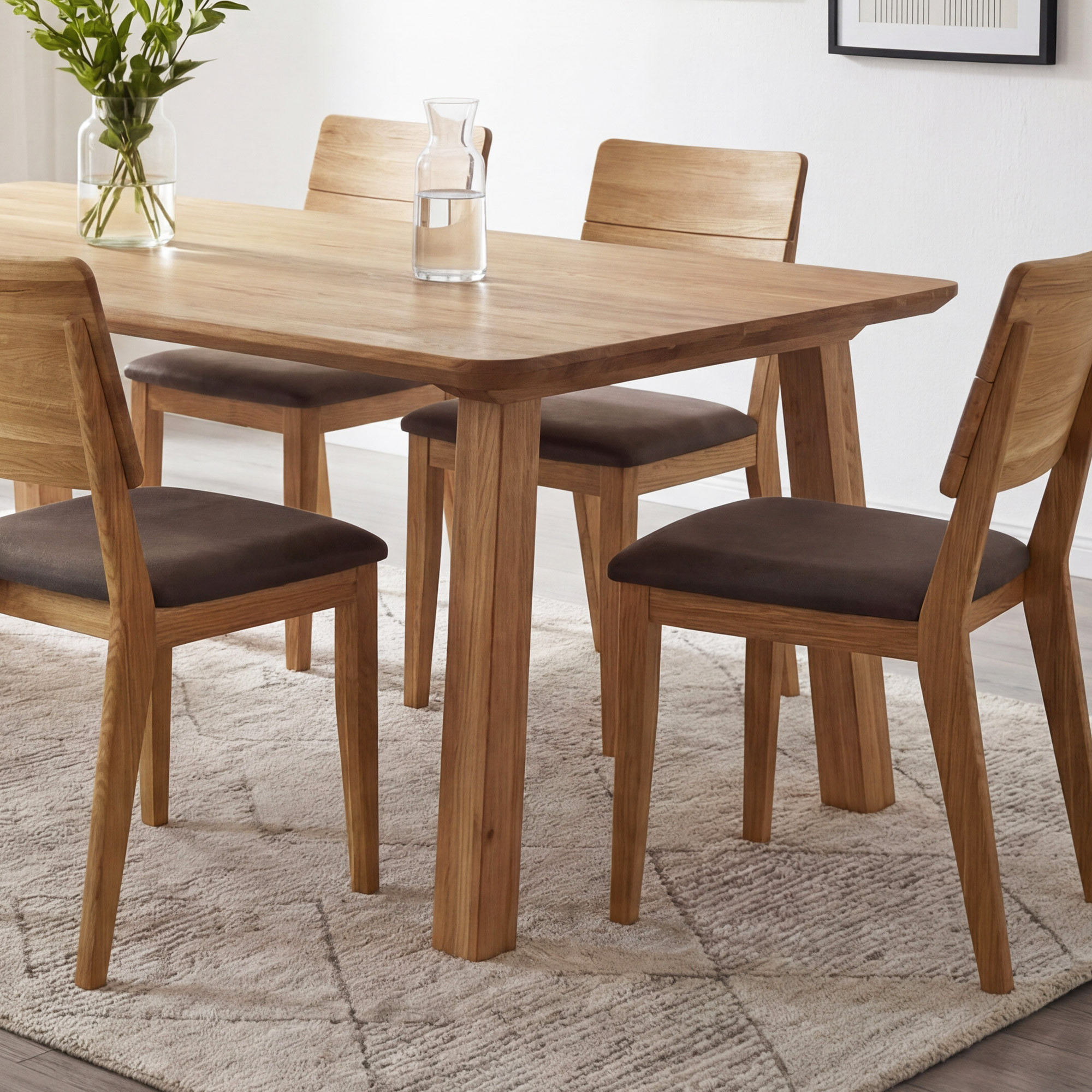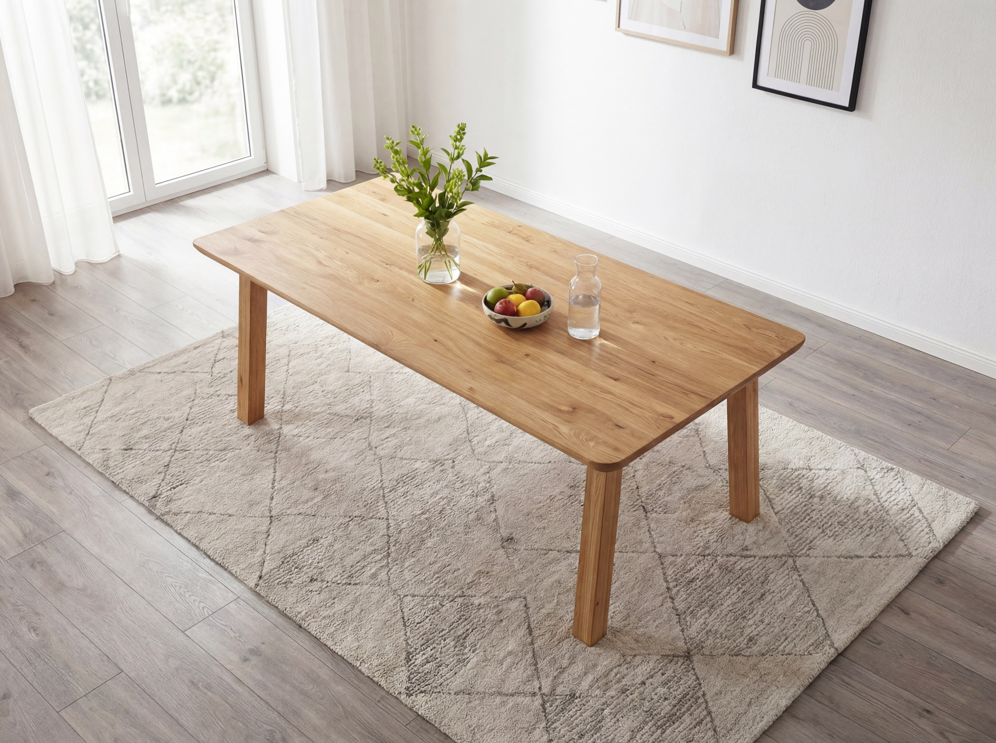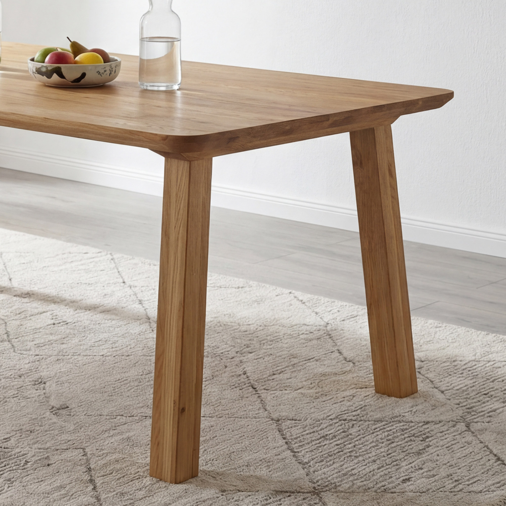 Az asztal felépítése átgondolt dizájnú – a lábak szinte a lap szélénél helyezkednek el, így az asztal teljes hosszában maximális helyet kapnak az étkezőszékek. A ferde lábkialakításnak köszönhetően az asztal végeinél is elegendő a hely. A 2 + 2 cm vastagságú lap kivételes szilárdságot és stabilitást biztosít az egész asztalnak. A tölgyfa kemény fafajta, amelybe nehéz karcolásokat vagy horzsolásokat ejteni, ezért ez az asztal hosszú évekig a minőség garanciája. Az asztal lapra szerelten kerül szállításra, egyszerű útmutatóval – az összeszerelés gyorsan és speciális szerszámok nélkül is elvégezhető.