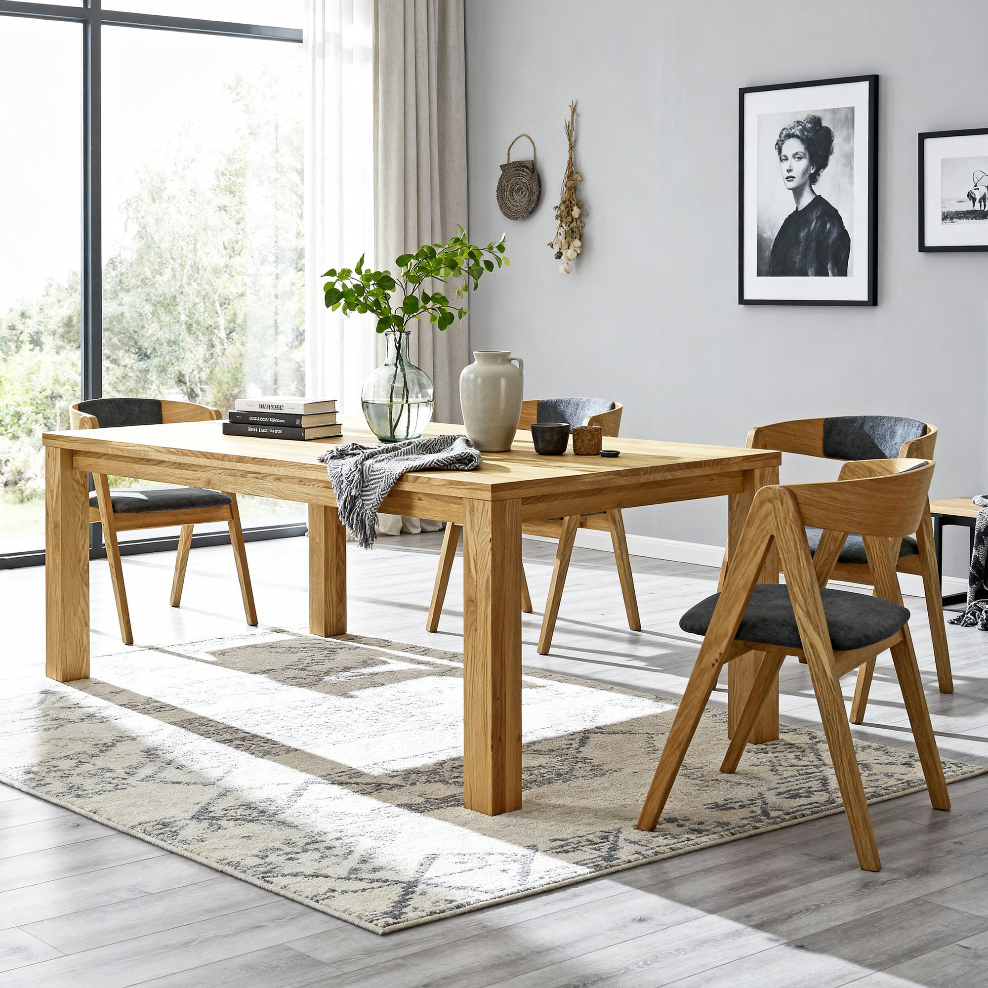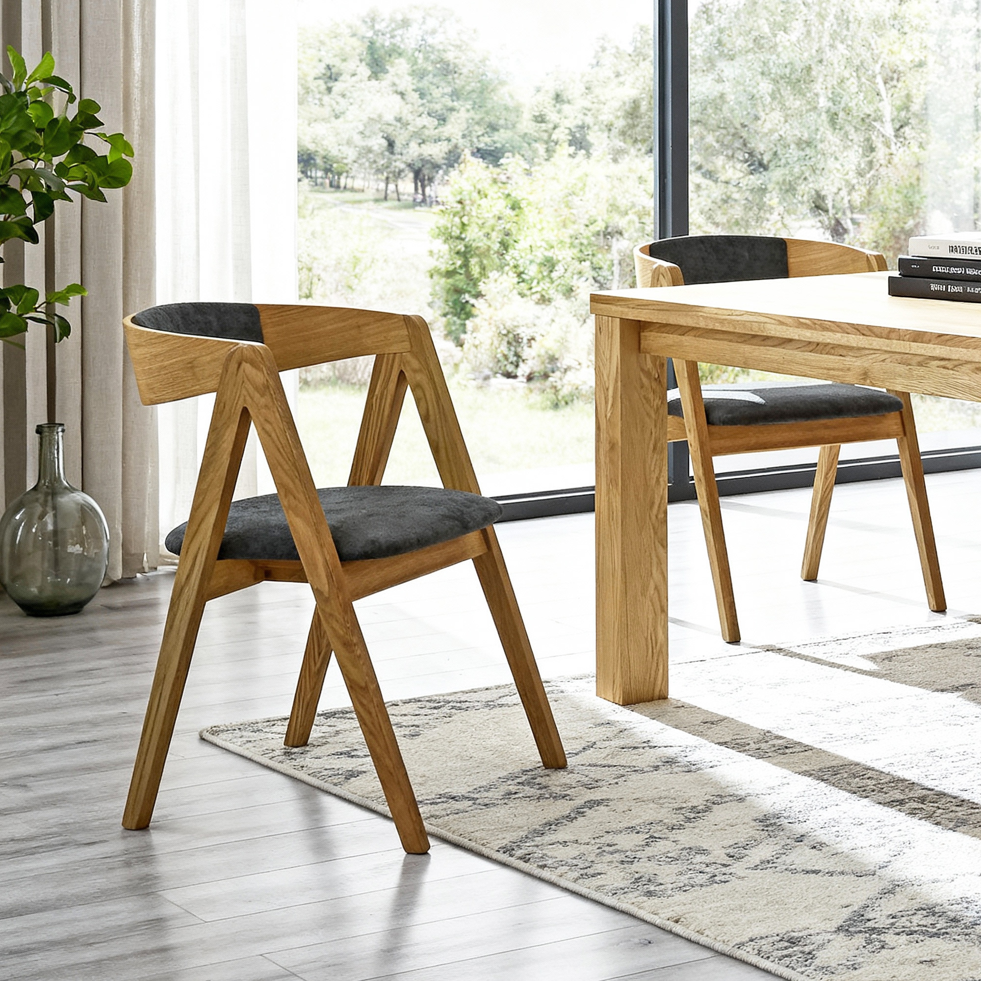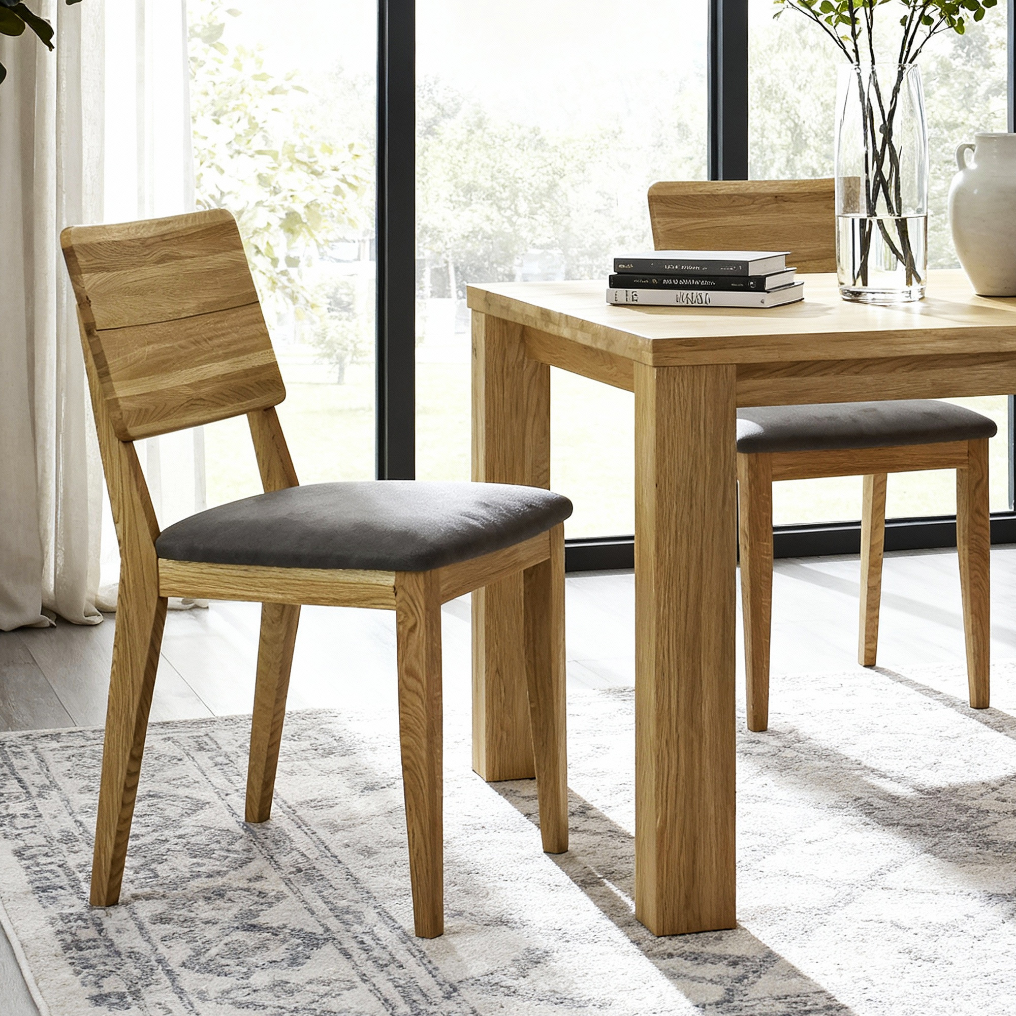* A képen a Bratislava tölgyasztal és az étkező Arosa szék sötétszürke kárpittal