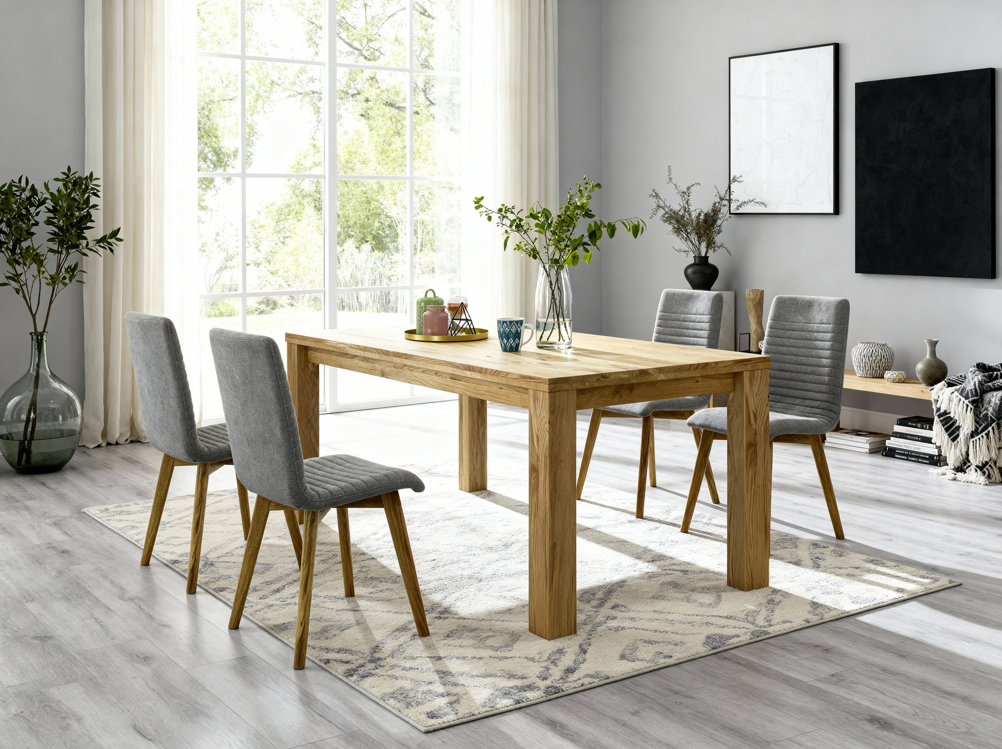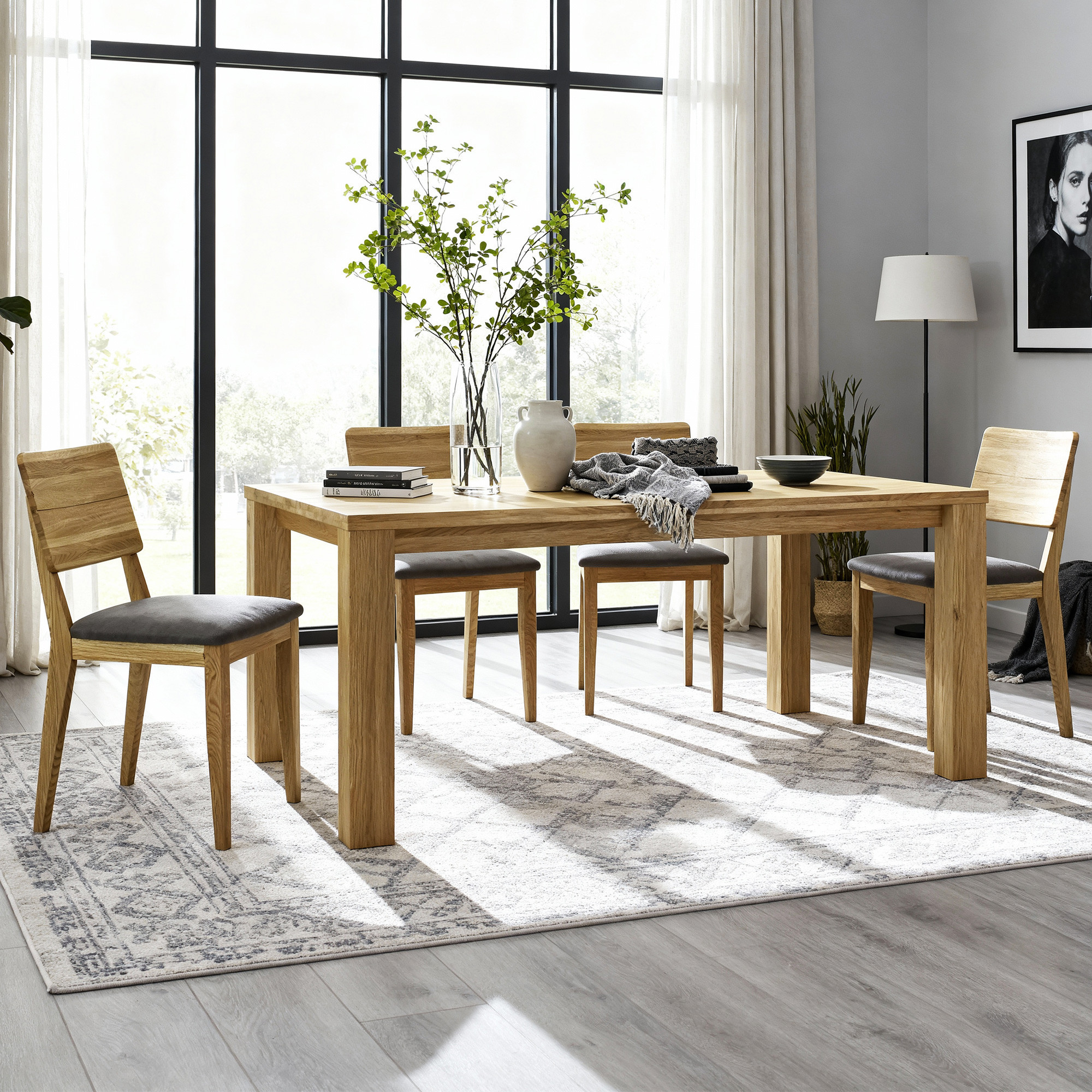 * A képen a Bratislava tölgyasztal és az étkező Arosa szék világosszürke kárpittal
