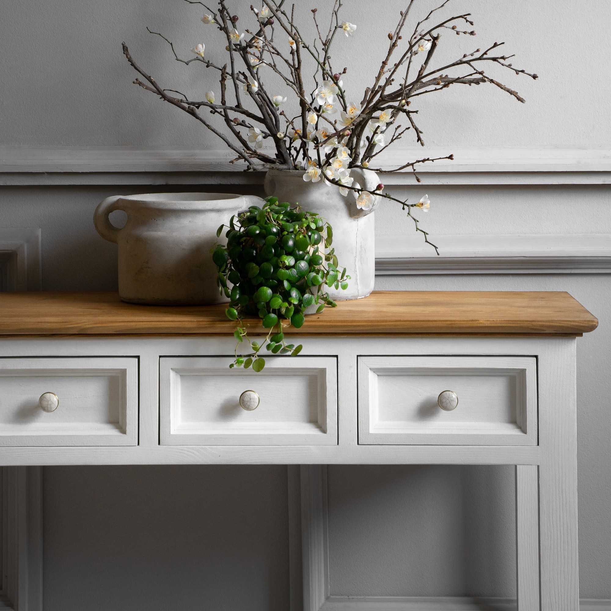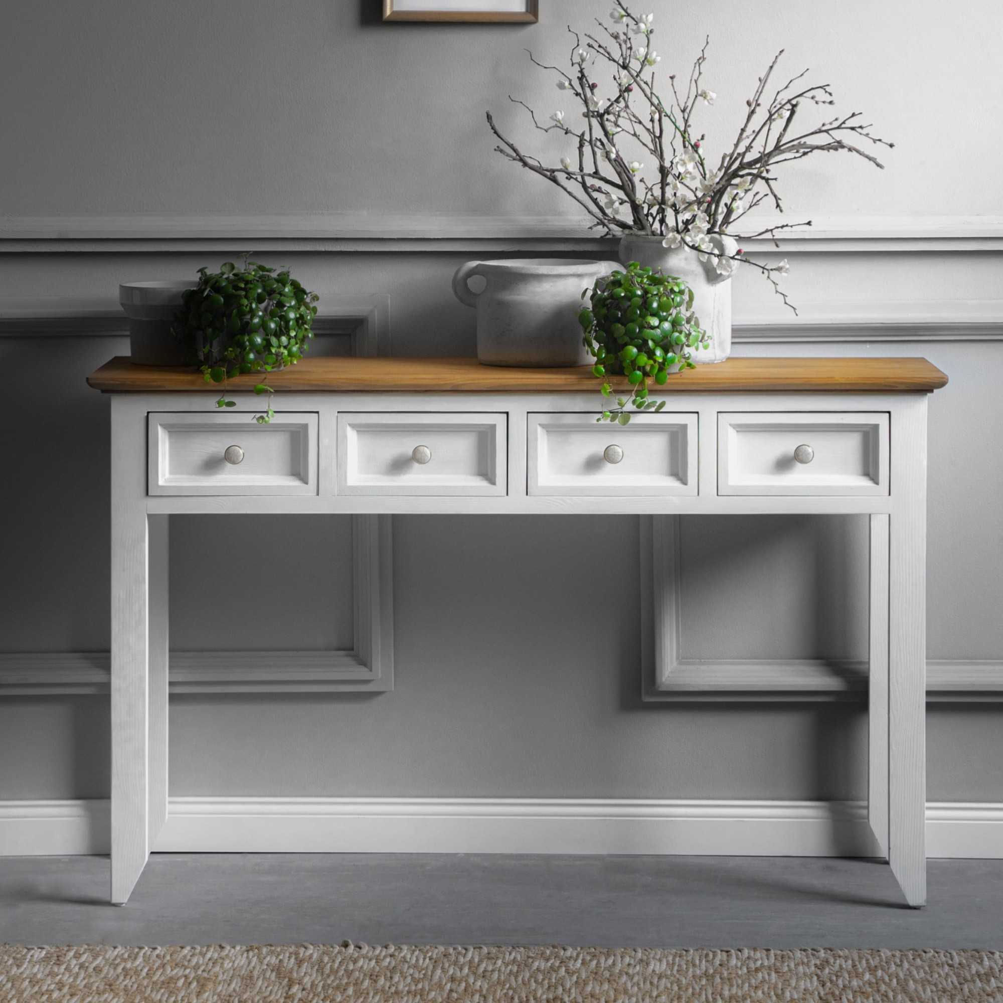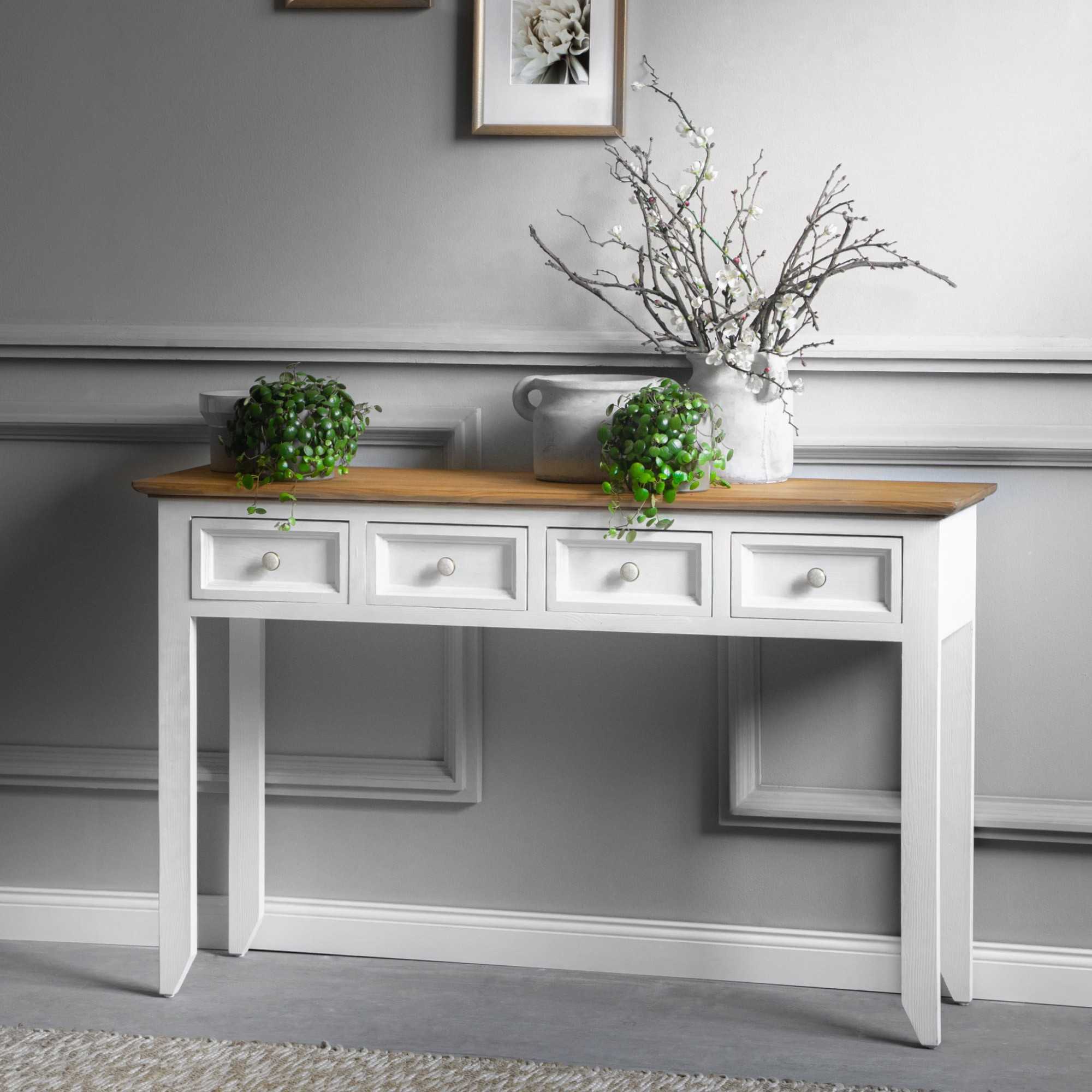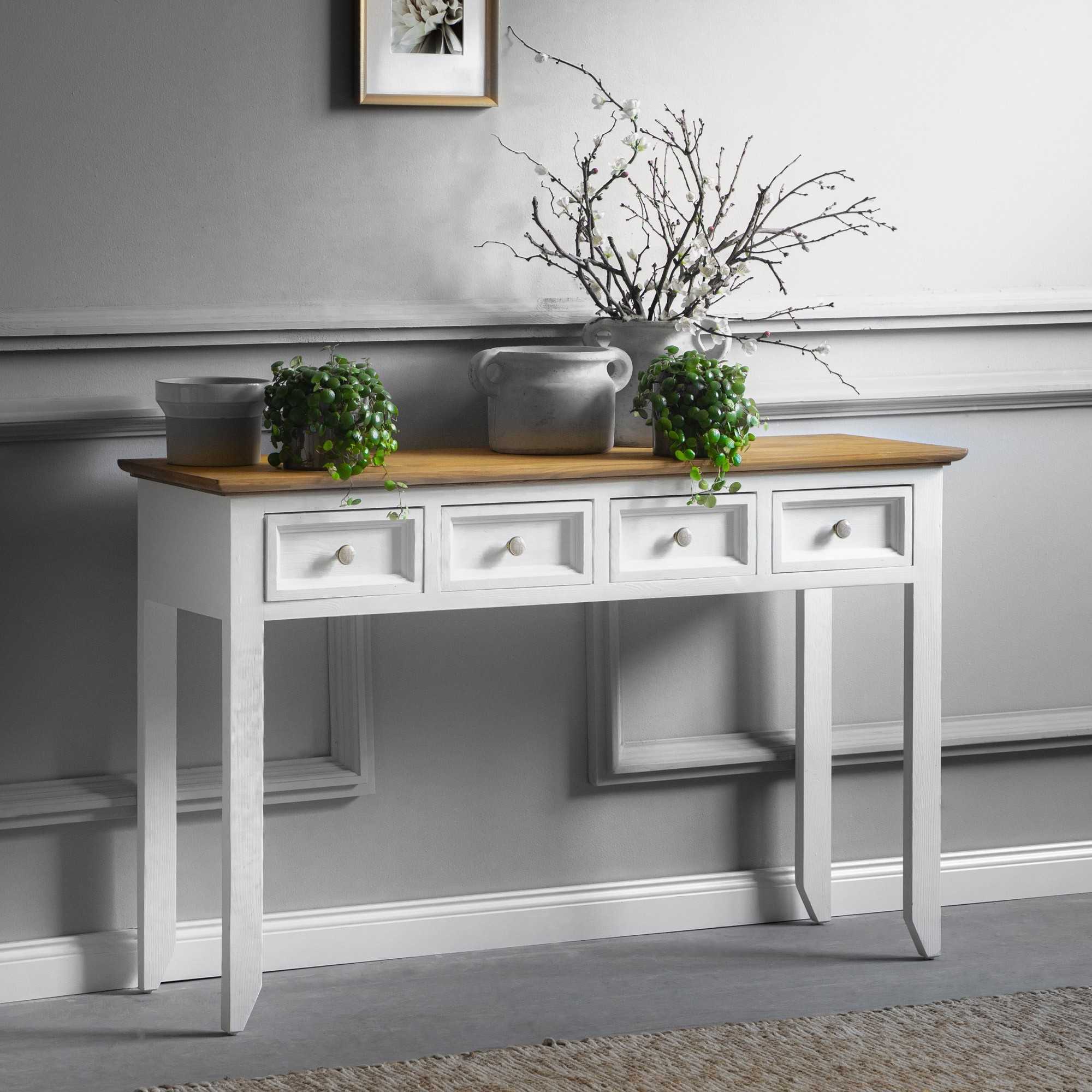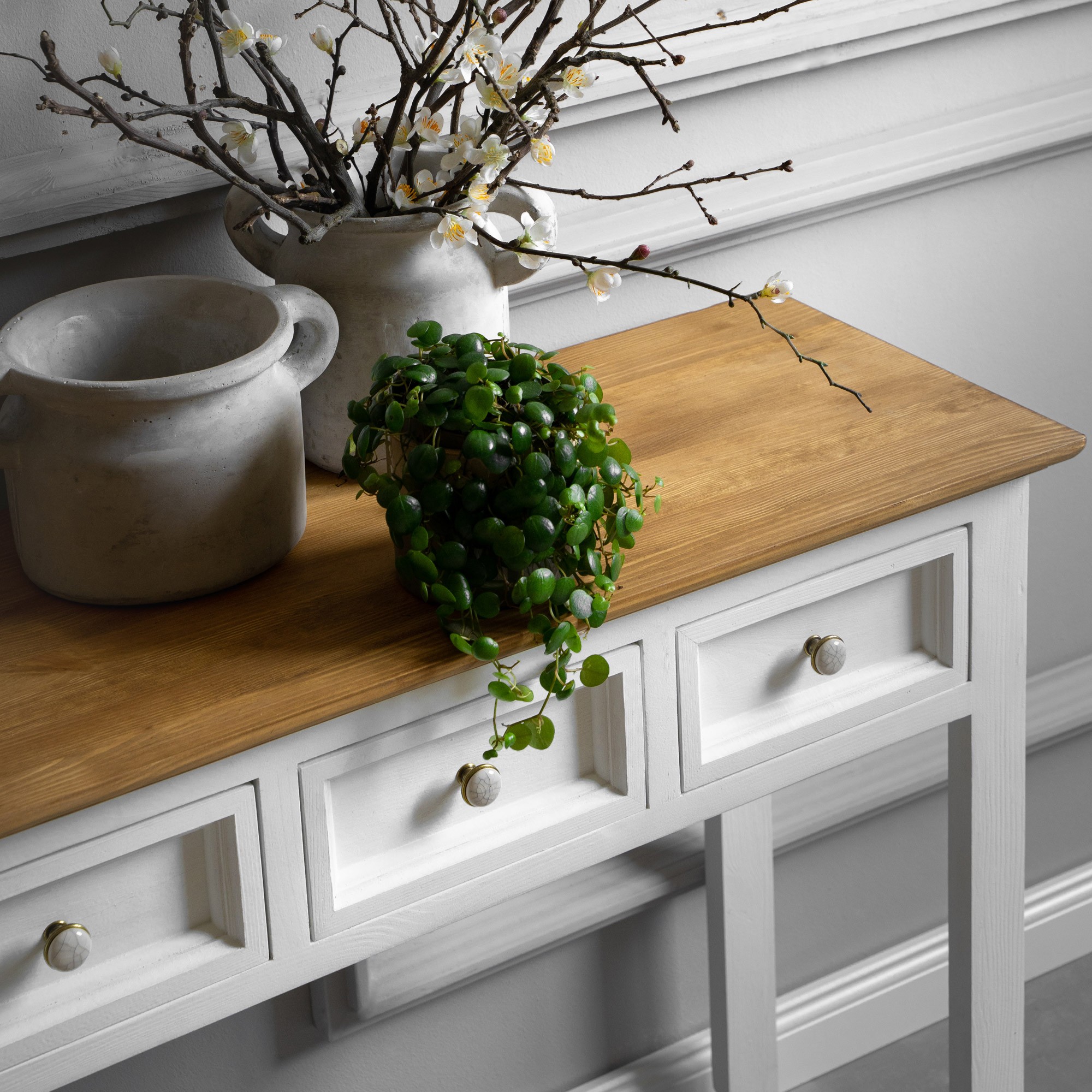Étkezőbe való kisasztal a LILLE legújabb bútorkollekciójából, francia vidéki stílusban készült. Természetes fa asztal fenyőfából, fehér‑barna színkombinációban. A kisasztal 4 fiókkal rendelkezik, amelyek lazán illeszkednek. Az asztallap barna színű, természetes viasszal kezelt. Egészítse ki étkezőjét a kollekció további darabjaival, és nap mint nap élvezze a francia vidéki stílus hangulatát. Bővítse belső terét ezzel a vonzó darabbal, és naponta érezze a természetes bútor erejét. A természetes termékek környezettudatossága és a gyönyörű dizájn harmóniája azok a tulajdonságok, amelyeket a LILLE asztal készítésekor egyesítettünk.