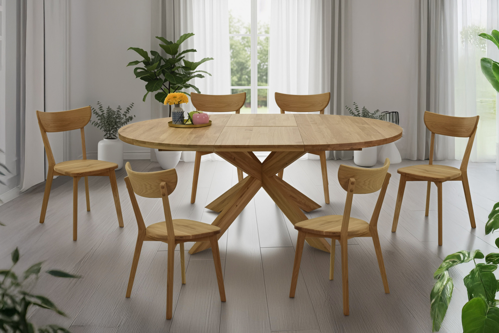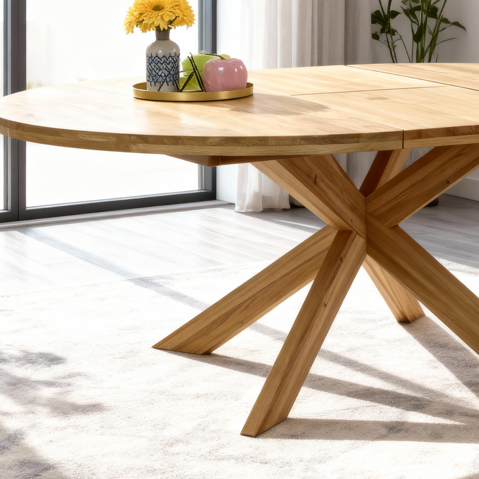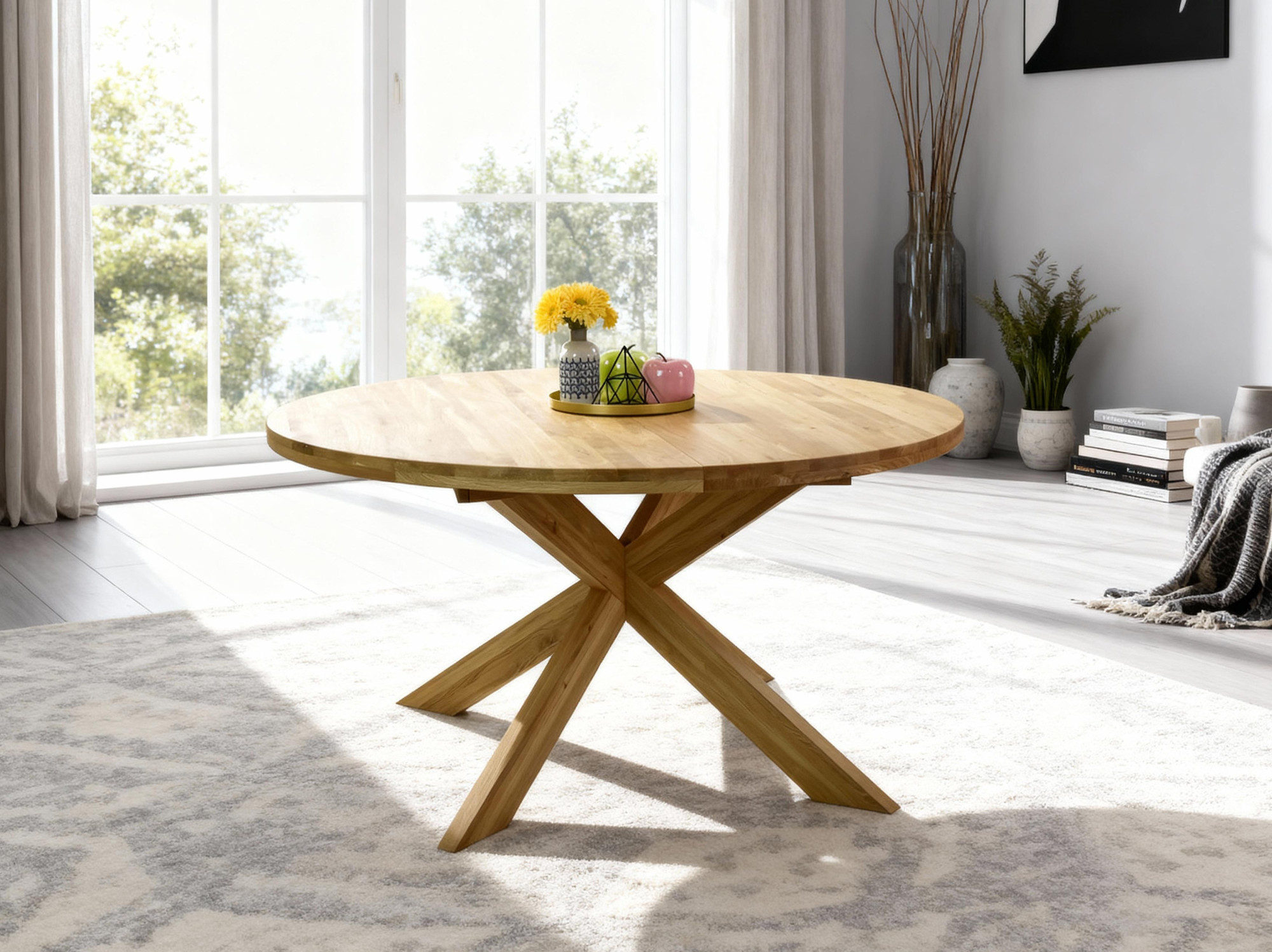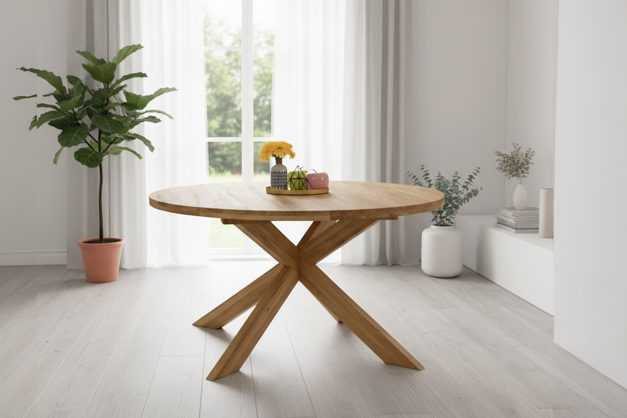 Kinyitható kerek tömör tölgyfa asztal, Holger 140 cm