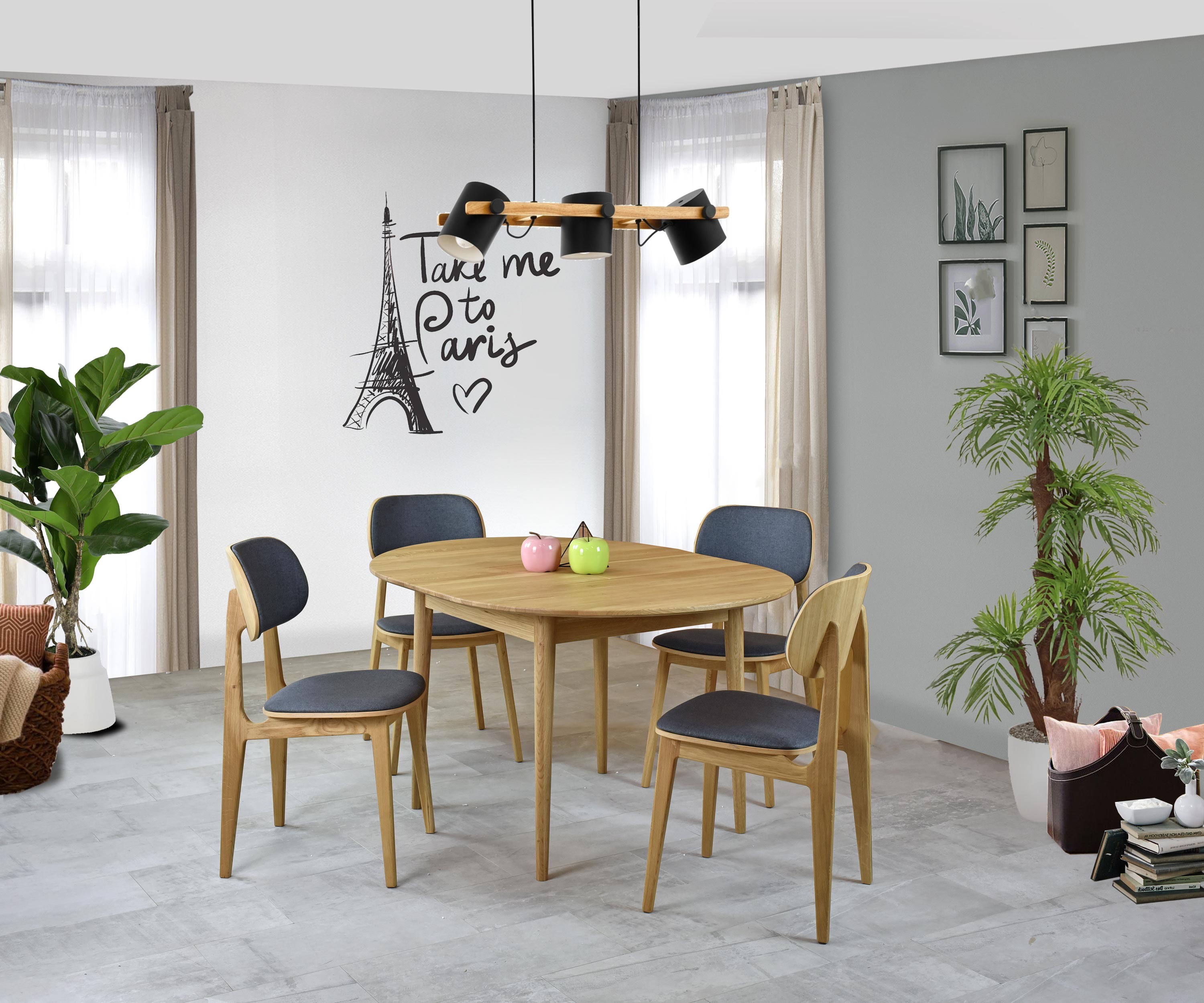 Egyszerű és célszerű dizájnú kerek étkezőasztal biztos választás az étkezőbe vagy a konyhába. Az asztal kihúzható változatban is elérhető. A kihúzható rész az asztal belsejében található. Kihúzás után az asztal ovális formát kap, 135 x 100 cm felülettel. Mindkét méret 4 személy számára alkalmas. A kerek étkezőasztalt lapraszerelt állapotban szállítjuk, egyszerű összeszereléssel. Az olajos felületkezelés különösen kellemes a tölgyfának, tapintáskor érezhető a fa struktúrája. A védelemhez használjon olajozott bútorokhoz való ápolószereket. Nedves tárgyak alá szintén ajánlott alátétek használata. Masszív, stabil lábak megfelelő mérettel garantálják az asztal nagy stabilitását. A lap vastagsága 2 cm, ami tölgyfánál teljesen elegendő. Az asztal magassága 76 cm.