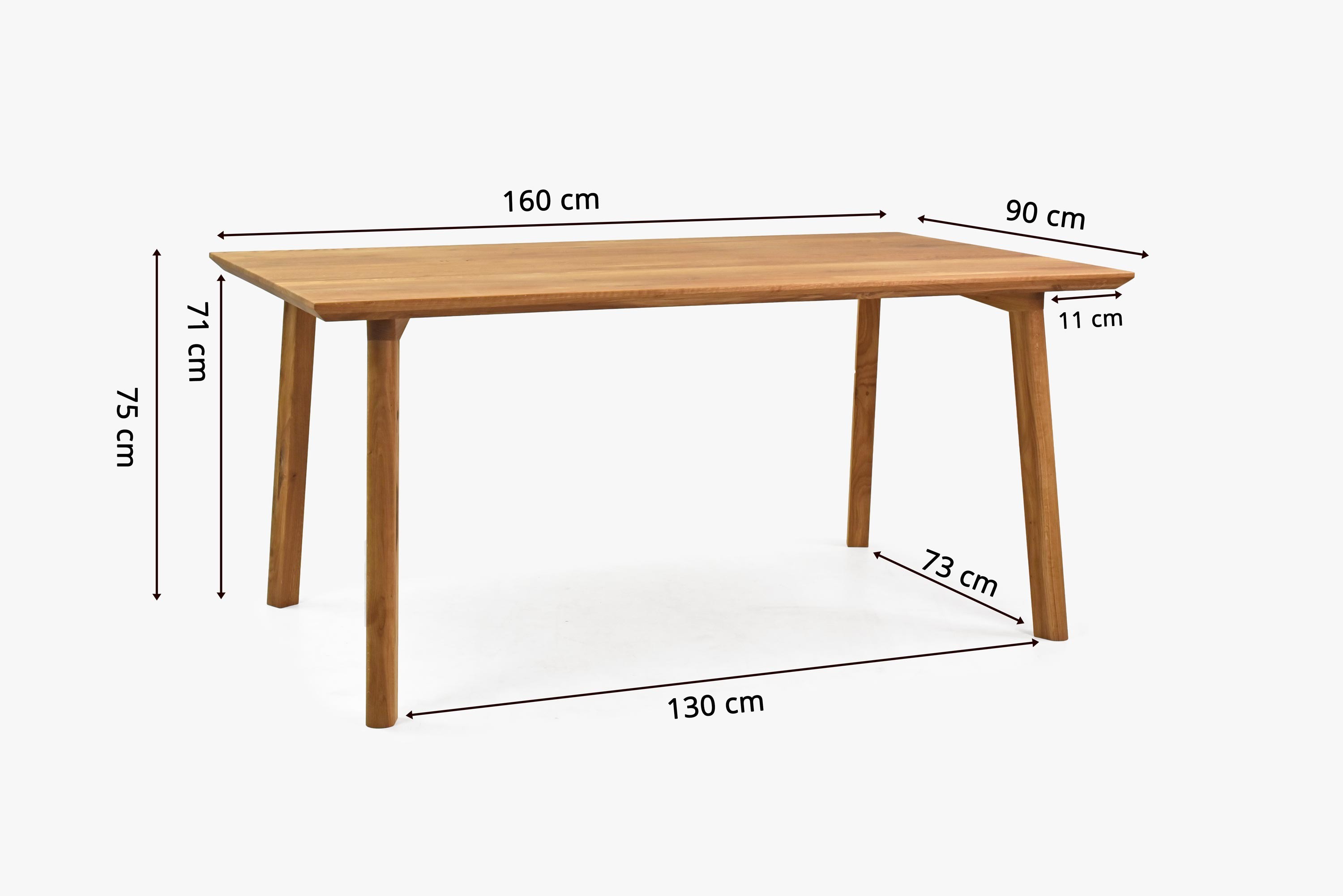 Tömör tölgyfa étkezőasztal 160x90 cm, natúr olajozott felület