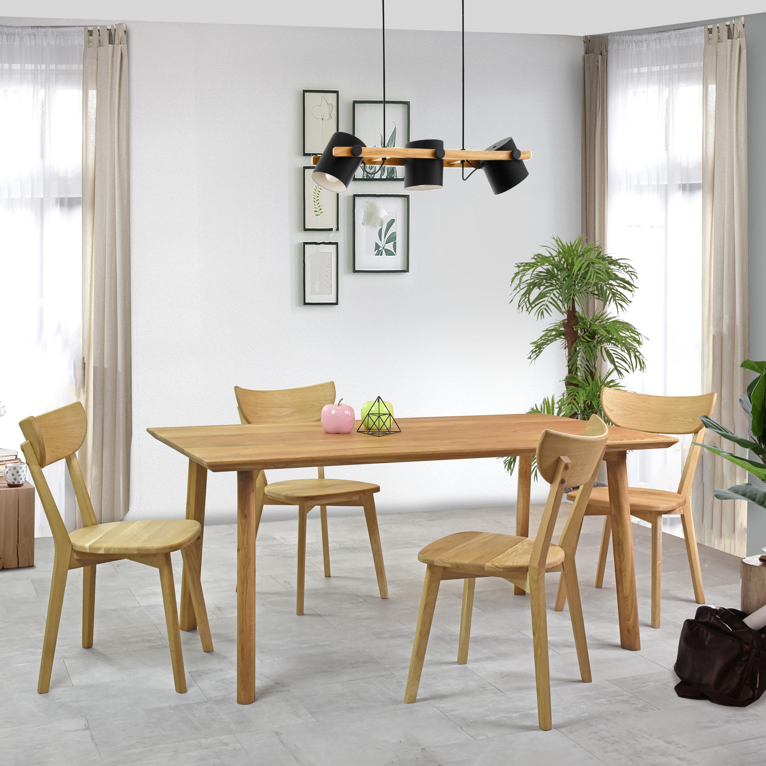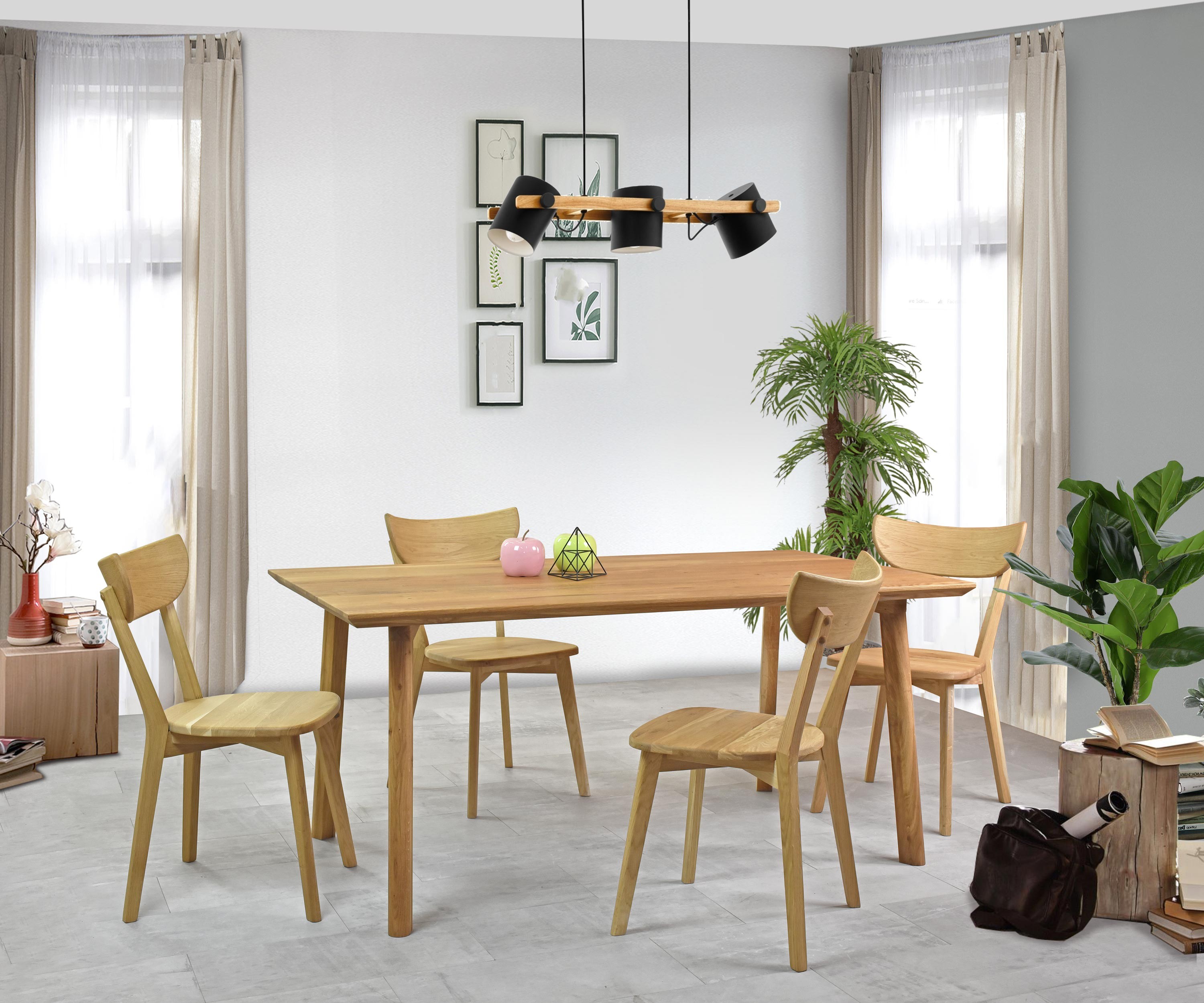 Az étkezőasztal tiszta tömör faanyagból, gyönyörű természetes erezettel készült. A munkalap 100% tölgyfából készült, teljes akár 4 cm vastagsággal, így a lap valóban tömör, és garantáltan ellenáll minden megterhelésnek. Az asztal rendkívül masszív, lapra szerelten szállítjuk nagyon egyszerű összeszereléssel. Az asztallap természetes olajjal kezelt, amely tökéletesen védi a bútort, valamint környezetbarát és egészségre ártalmatlan. Az olajos felületkezelés kiemeli a tölgyfa gyönyörű erezetét, és matt felületet ad az asztalnak. Mindennapi használat során javasoljuk, hogy nedves tárgyak alá tegyen alátétet; léteznek olyan készítmények is, amelyek vékony filmet képeznek az asztalon, így a felület vízálló lesz (példa Opti Mléko). A tölgyfa az egészséges, természetes bútor garanciája, és természetesen rendelkezik FSC tanúsítvánnyal.