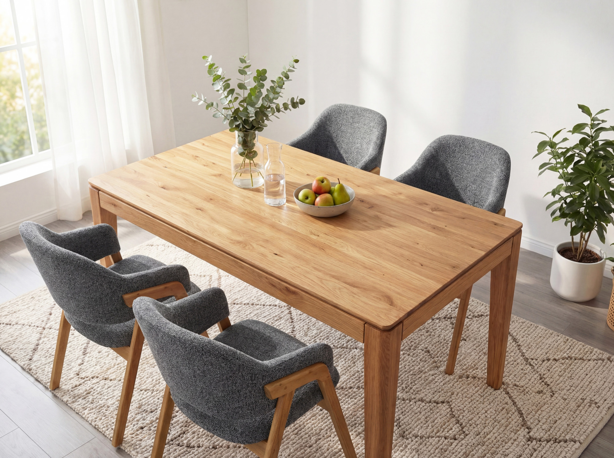 Az asztal legfőbb előnye a teljes egészében tömör tölgyfából készült masszív szerkezet, mely garantálja a szilárdságot, stabilitást és hosszú élettartamot. A tölgyfa nemcsak esztétikus, de környezetbarát is, mivel FSC tanúsítvánnyal rendelkező fából készül, ami felelős és fenntartható erdőgazdálkodást biztosít. A természetes olajos felületkezelés kiemeli a fa szépségét, és védelmet nyújt a karcolásokkal és nedvességgel szemben. Az asztal lapra szerelve érkezik, így könnyen szállítható és mozgatható bármely helyiségbe. Összeszerelése rendkívül egyszerű, és nem igényel speciális szerszámokat. A természetes anyagok, mint amilyen a tölgyfa is, melegséget és otthonosságot varázsolnak az otthonába, a tölgy natúr árnyalatú további termékeinkkel kombinálva harmonikus és stílusos enteriőrt hozhat létre.