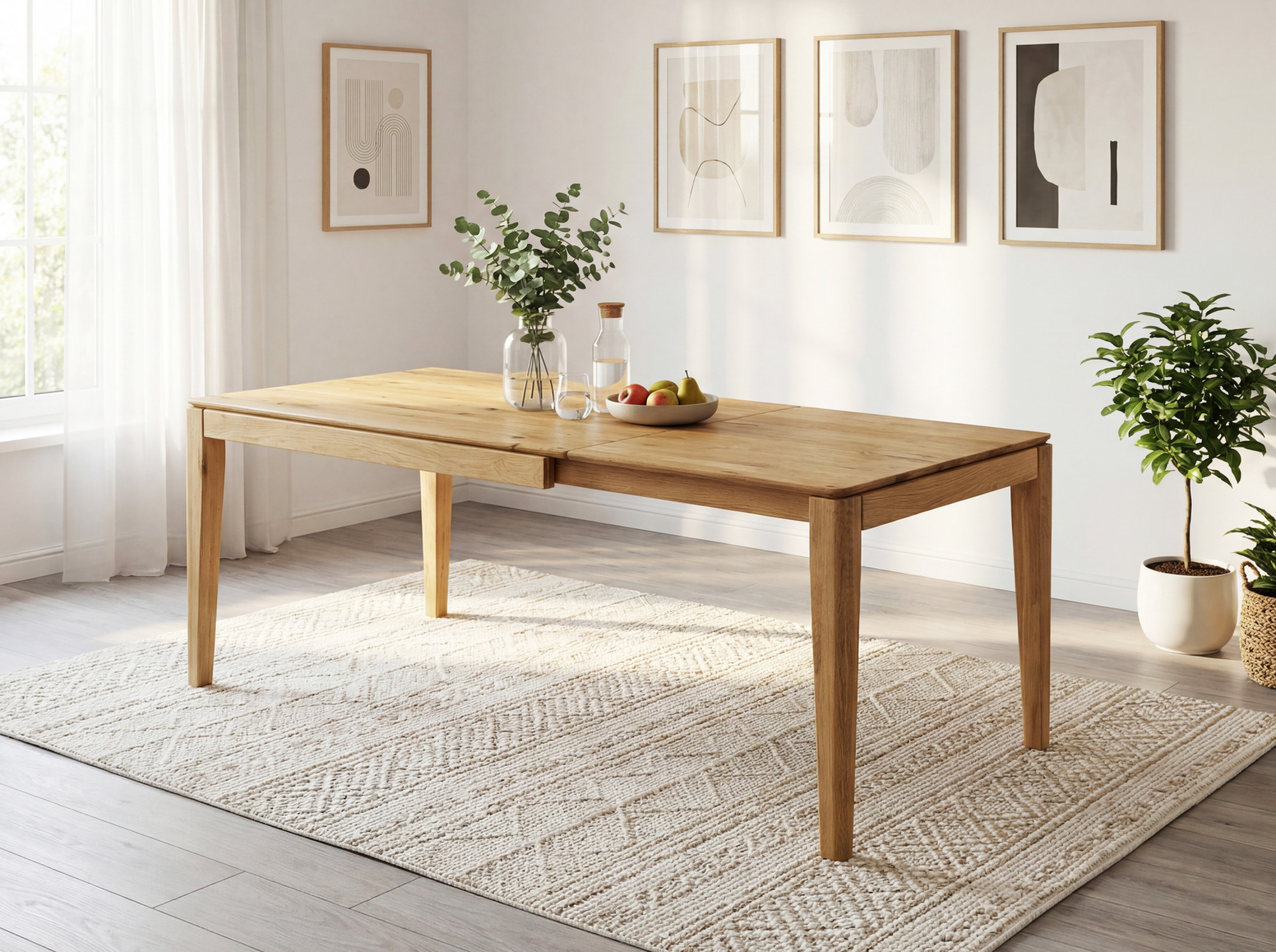 Kihúzható tömör tölgyfa asztal, Adam 160 x 90 cm ( 245 x 90 cm )