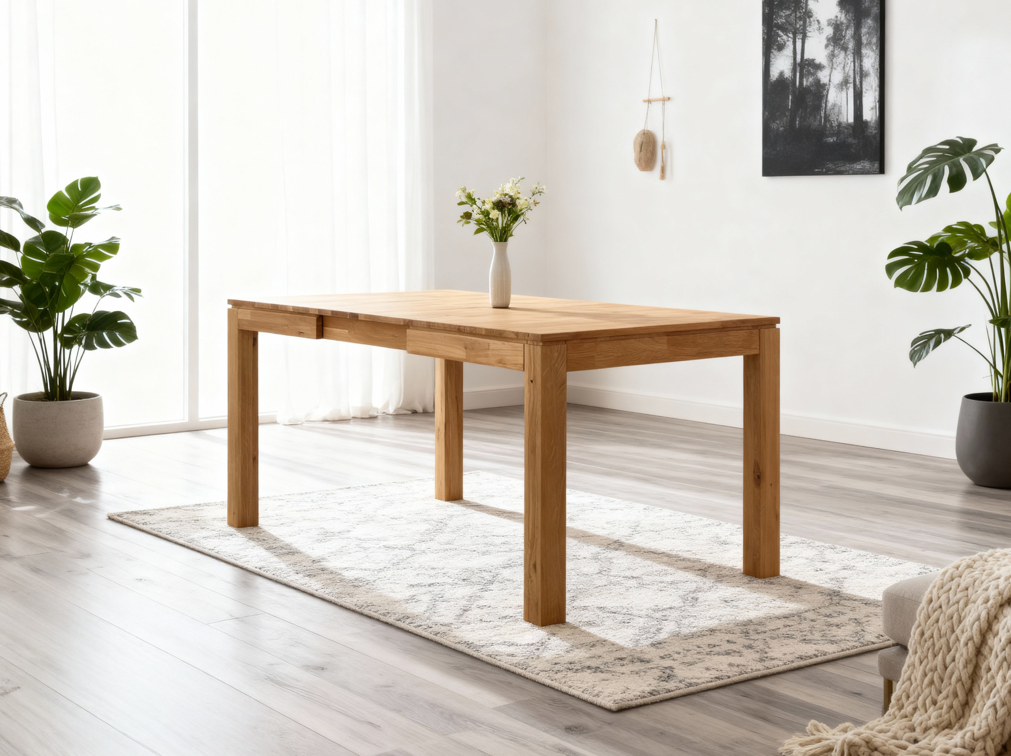 Tömör, tölgyből készült kihúzható asztal 120 x 80 cm, kihúzva 170 x 80 cm