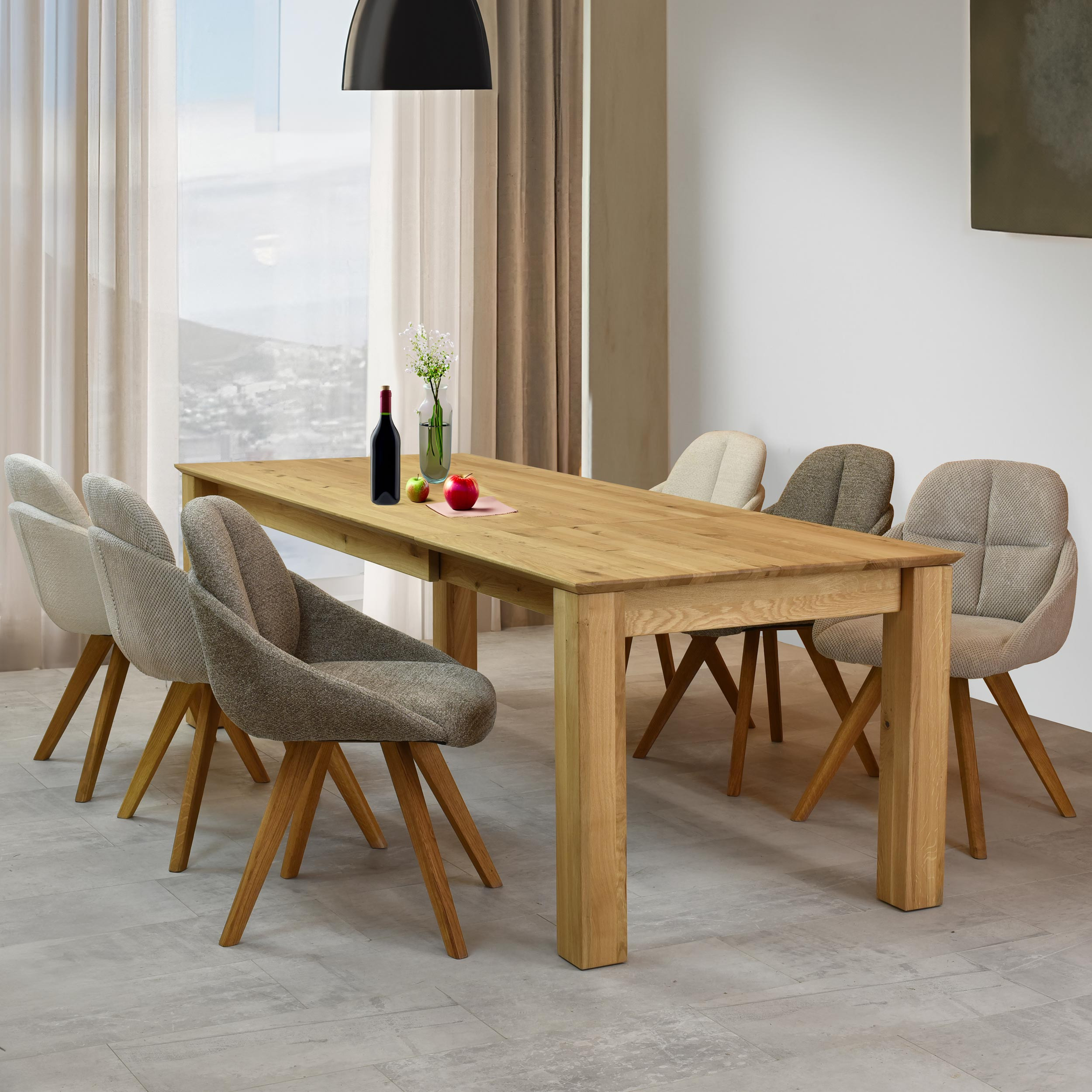 Ez az asztal rendkívüli stabilitást kínál masszív tölgyfa szerkezetének köszönhetően, ugyanakkor nagyon rugalmas a gondosan kialakított kihúzható mechanizmusnak köszönhetően. A természetes felületkezelés és az FSC tanúsítvánnyal rendelkező fa biztosítja, hogy új asztala ne csak szép, hanem környezetbarát is legyen.