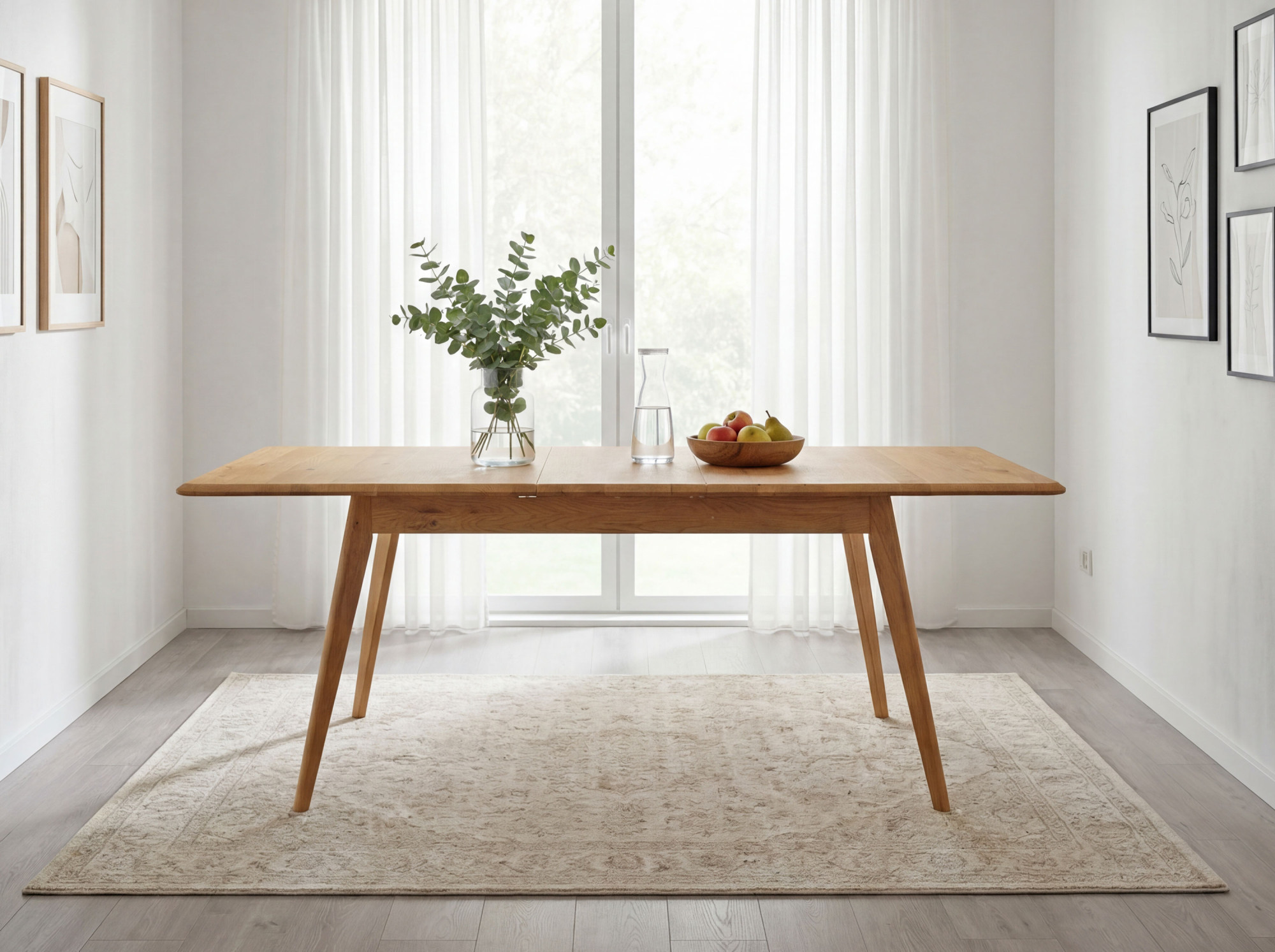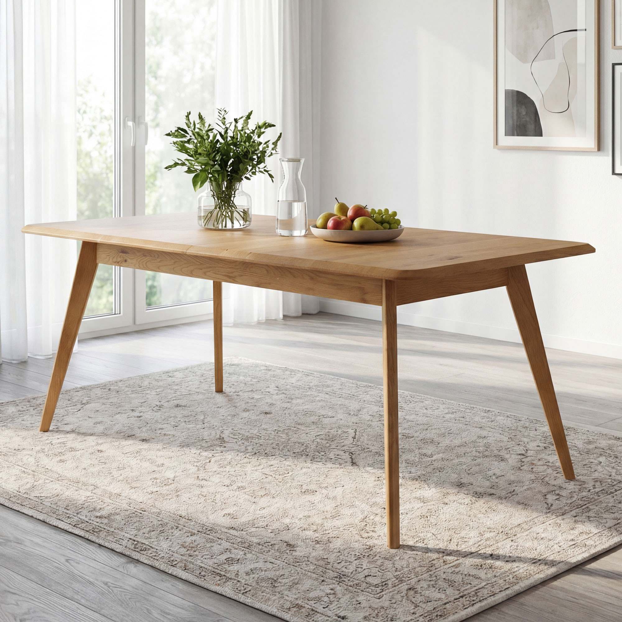 Tömör tölgyfa kihúzható asztal 160-200 cm, natúr színű