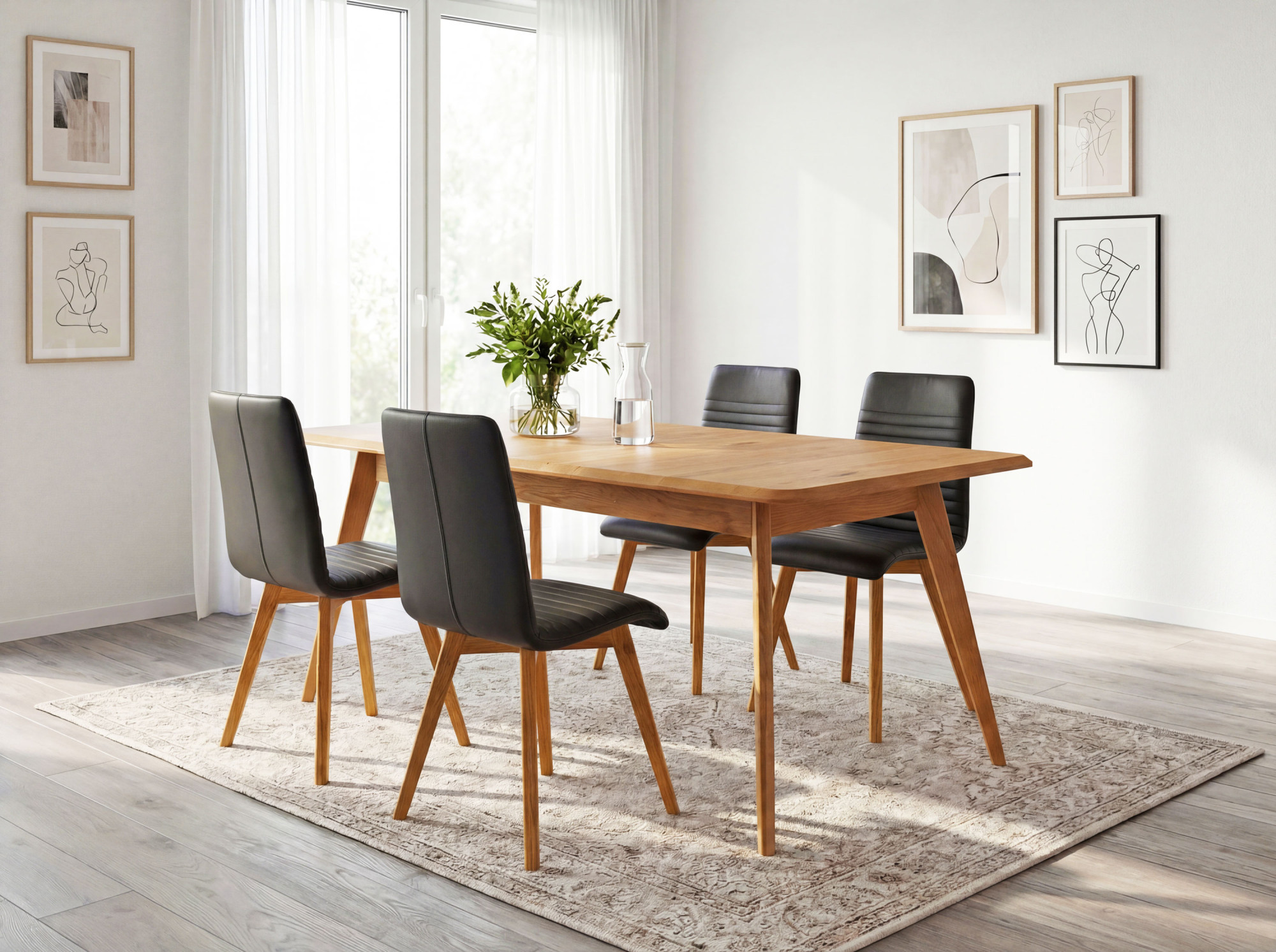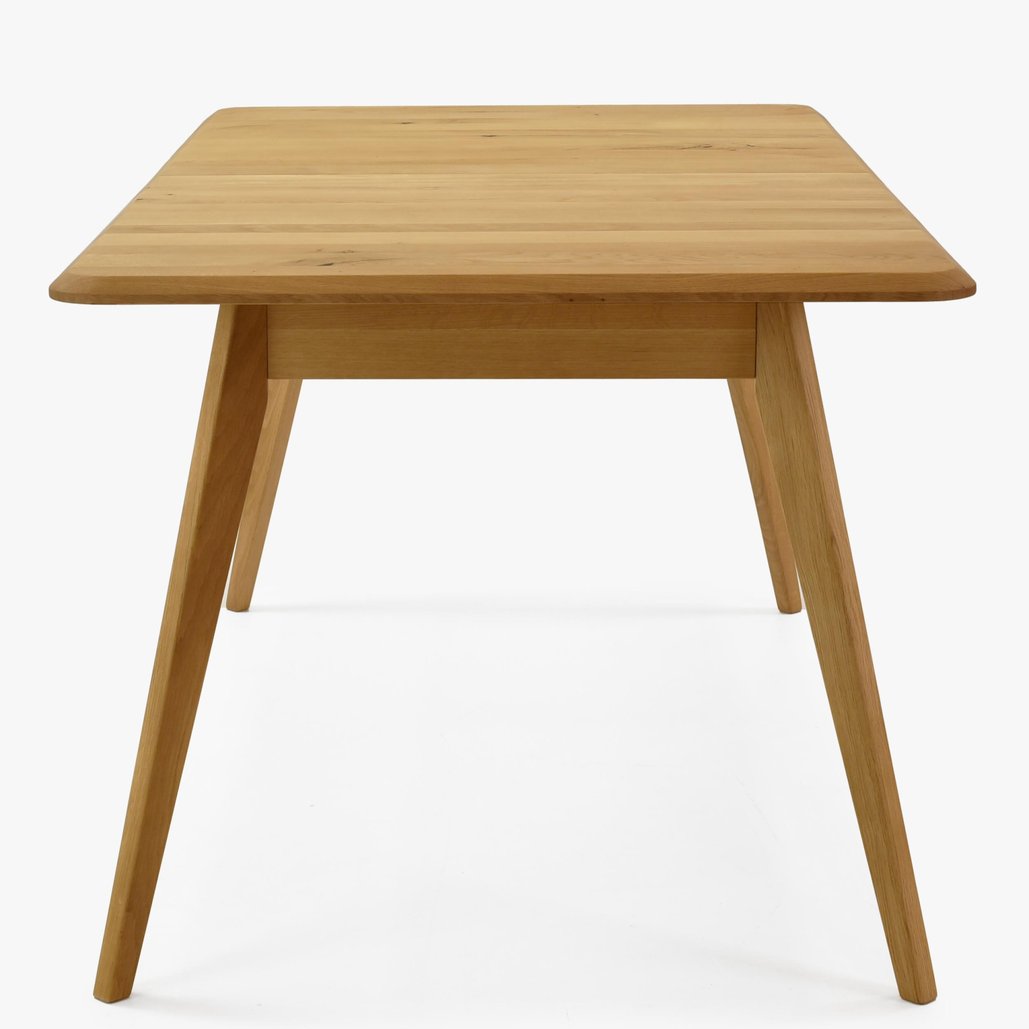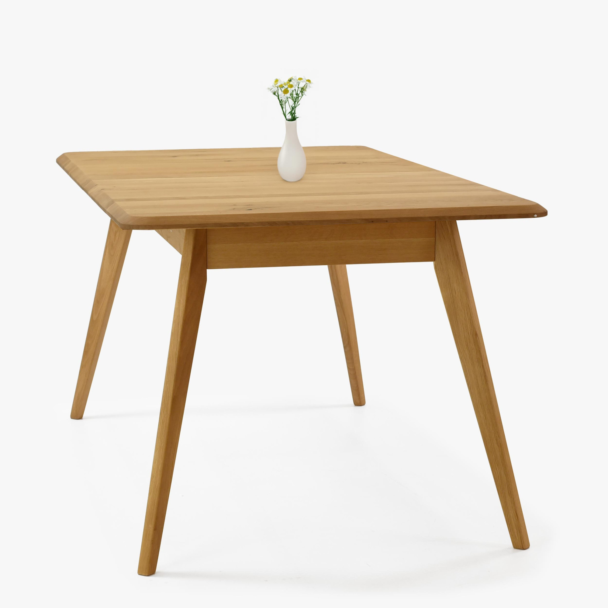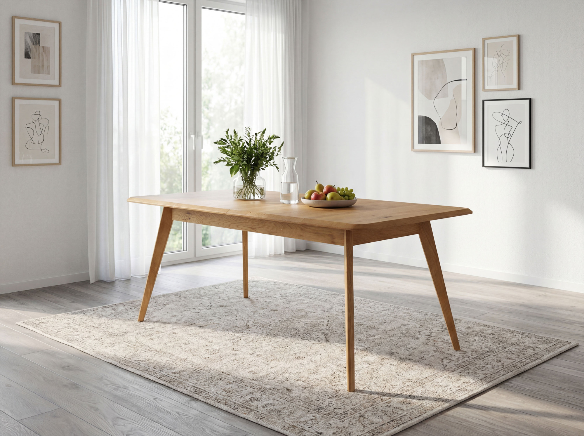 Tölgyfa kihúzható asztal Bratislava ideális választás azoknak a háztartásoknak, amelyek természetes anyagból készült, kiváló minőségű bútorokat keresnek. Természetes tölgyfából készült, FSC tanúsítvánnyal, az asztal garantálja az ökológiai eredetet és a hosszú élettartamot. Tölgy natural árnyalata és a felületkezelés Woca dán olajjal kihangsúlyozzák a fa természetes szépségét. A modern dizájnt enyhén lecsapott élek és enyhén döntött lábak jellemzik, amelyek könnyedséget és légies hatást adnak. Ennek az asztalnak az egyedi stílusa könnyen kombinálható más tölgyfa bútorokkal, harmonikus enteriőrt teremtve.
