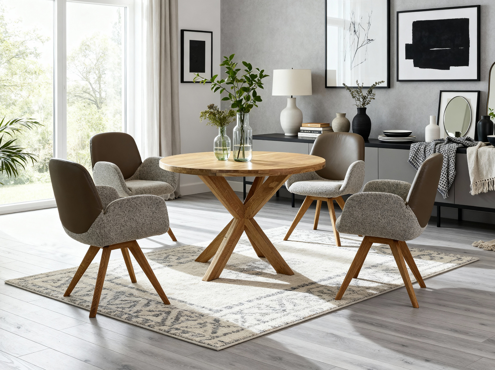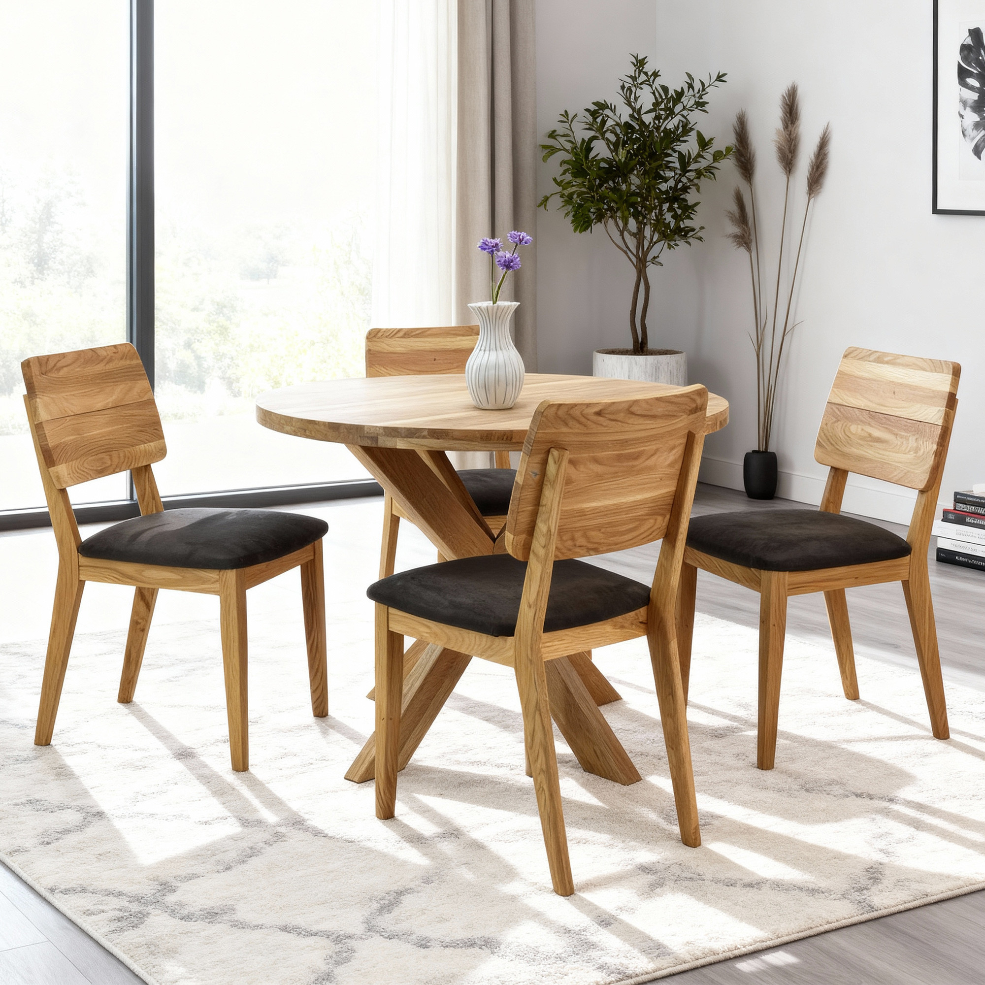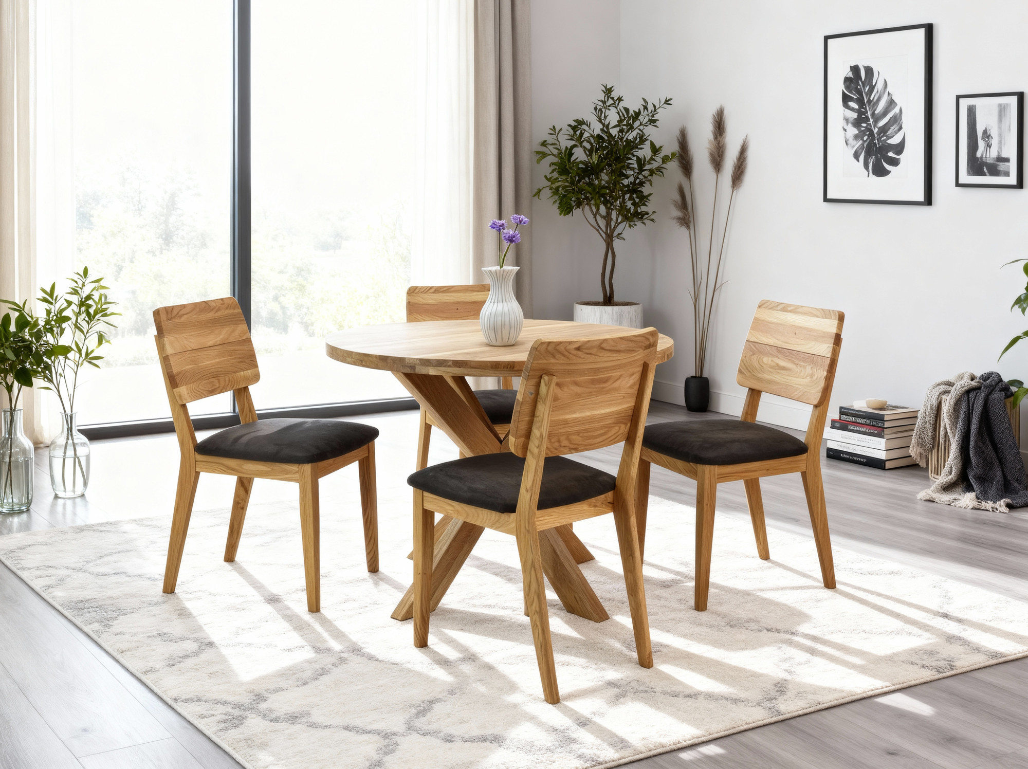 * A képen tölgy kerek asztal 100 cm átmérővel és tölgyfa étkezőszék Rain