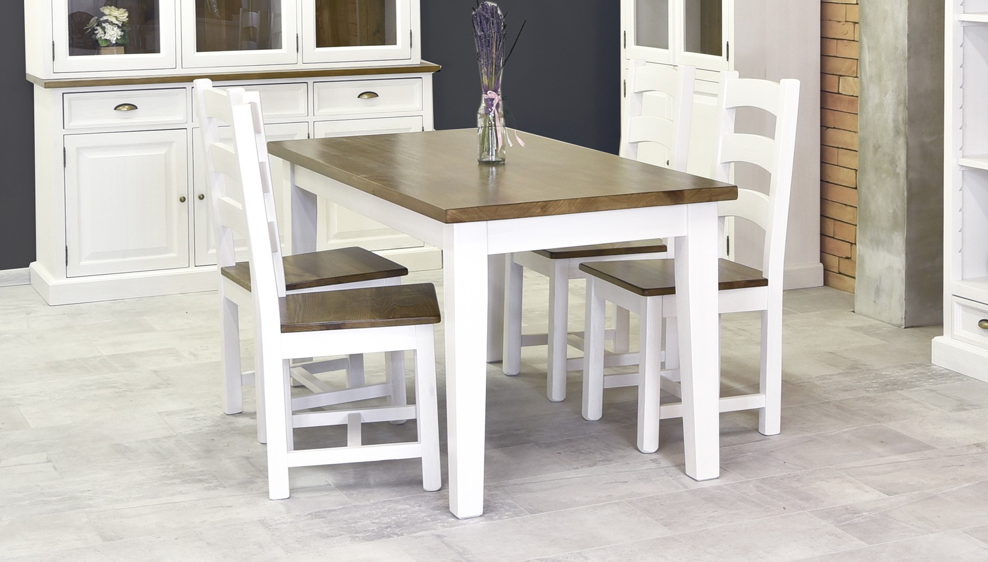 A Provence kollekcióhoz tartozó bútorokat a hagyományos francia vidék ihlette. A fehér és barna színek kombinációja elegáns, rusztikus dizájnt teremt, amely jól illik modern és klasszikus belső terekbe. A barna felületek környezetbarát lakkal vannak védve és a fehér részeket viasszal és finom lakkal kezelik, ami kiemeli a fenyő szerkezetét és biztosítja a hosszú élettartamot. Az asztal könnyen kombinálható a kollekció többi bútordarabjával, így harmonikus enteriőrt hozhat létre. Természetes, hogy rendelkezik FSC tanúsítvánnyal, amely igazolja a felhasznált anyag felelős eredetét.