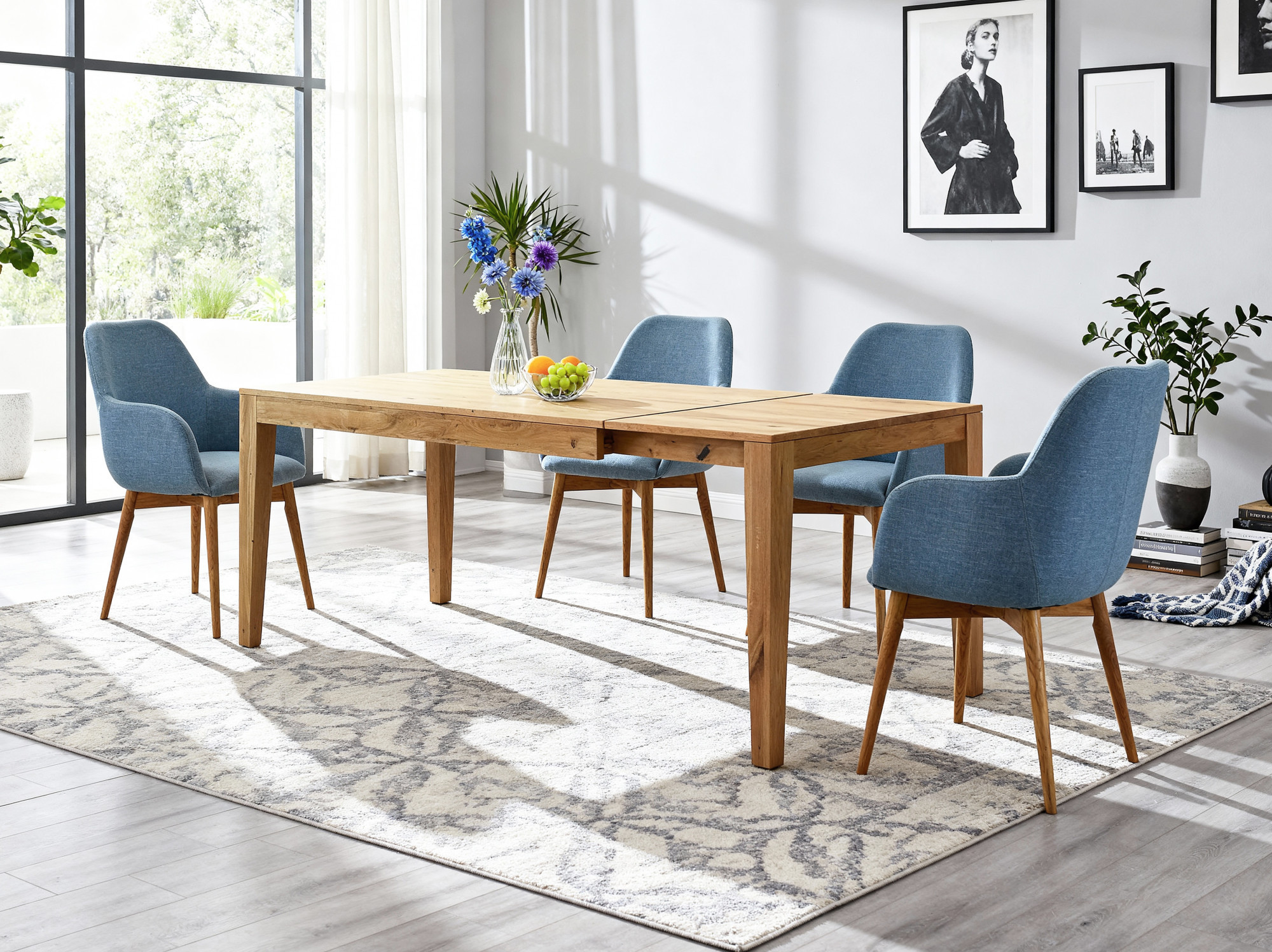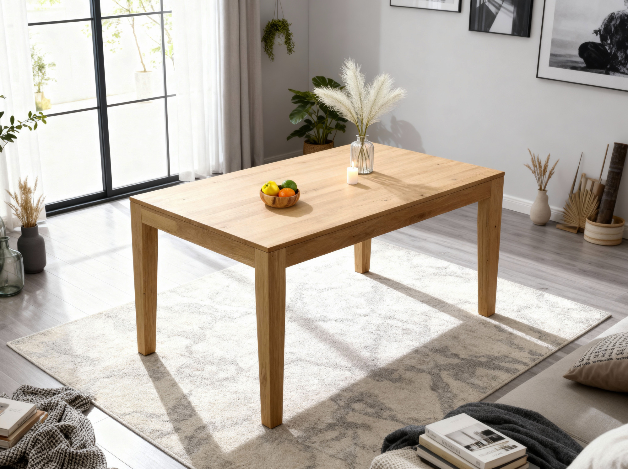 A Zeus tömörfa étkezőasztal a tölgyfa valódi szépségét hozza el az Ön étkezőjébe. Az alapméret 160 × 90 cm, amely kényelmes helyet biztosít családnak és vendégeknek egyaránt, és az okos kihúzható rendszerrel a lap egyetlen könnyed mozdulattal további 50 cm-rel bővíthető. A tömbfa, bővíthető étkezőasztal kihúzott állapotban is erős és stabil marad; a lábakba rejtett kerekek megkönnyítik a mozgatást, a lap alá rejtett toldás pedig nem zavarja az asztal letisztult megjelenését. A felületet természetes tölgy árnyalatú olajjal kezelték, amely kiemeli a fa rajzolatát és megóvja a mindennapi használattól.