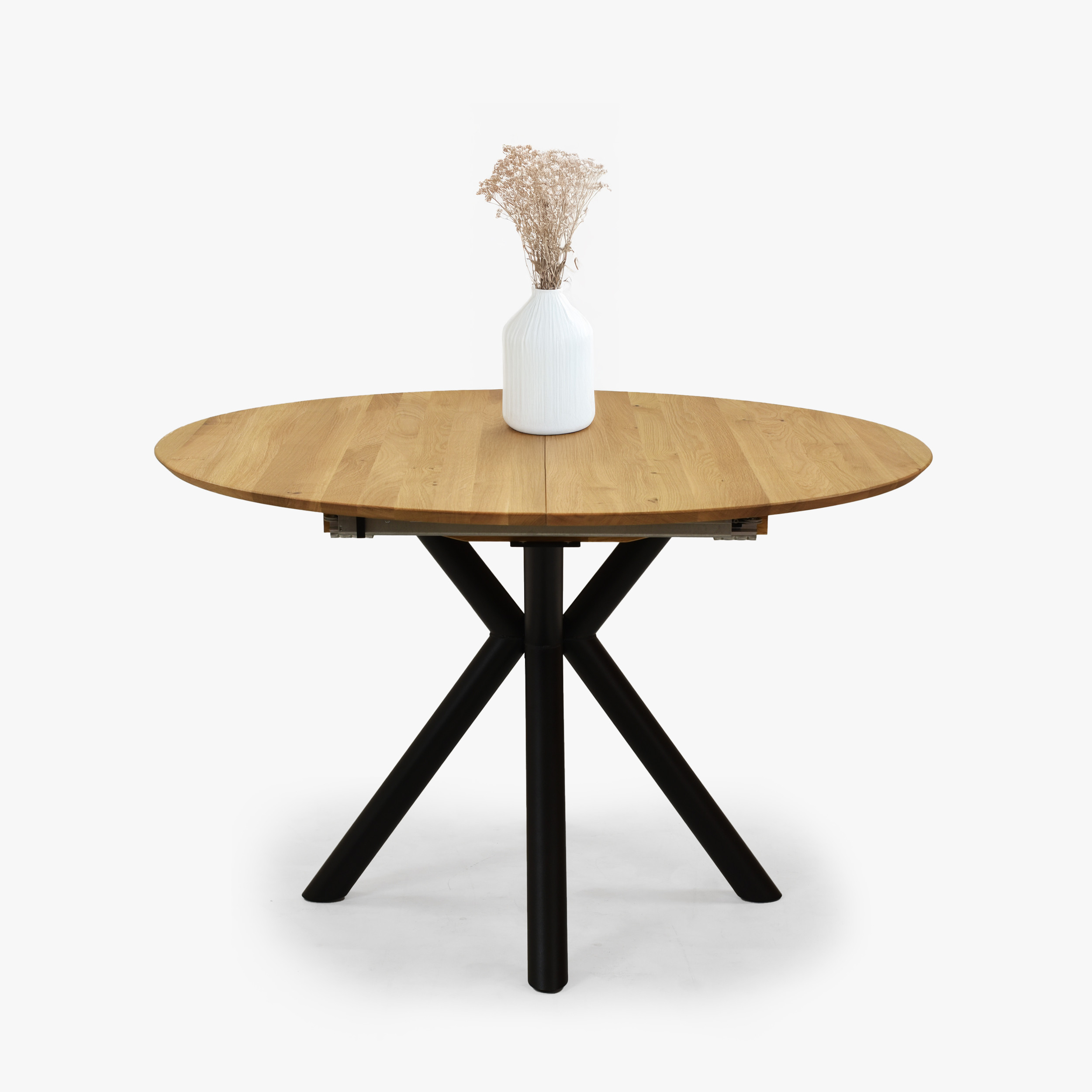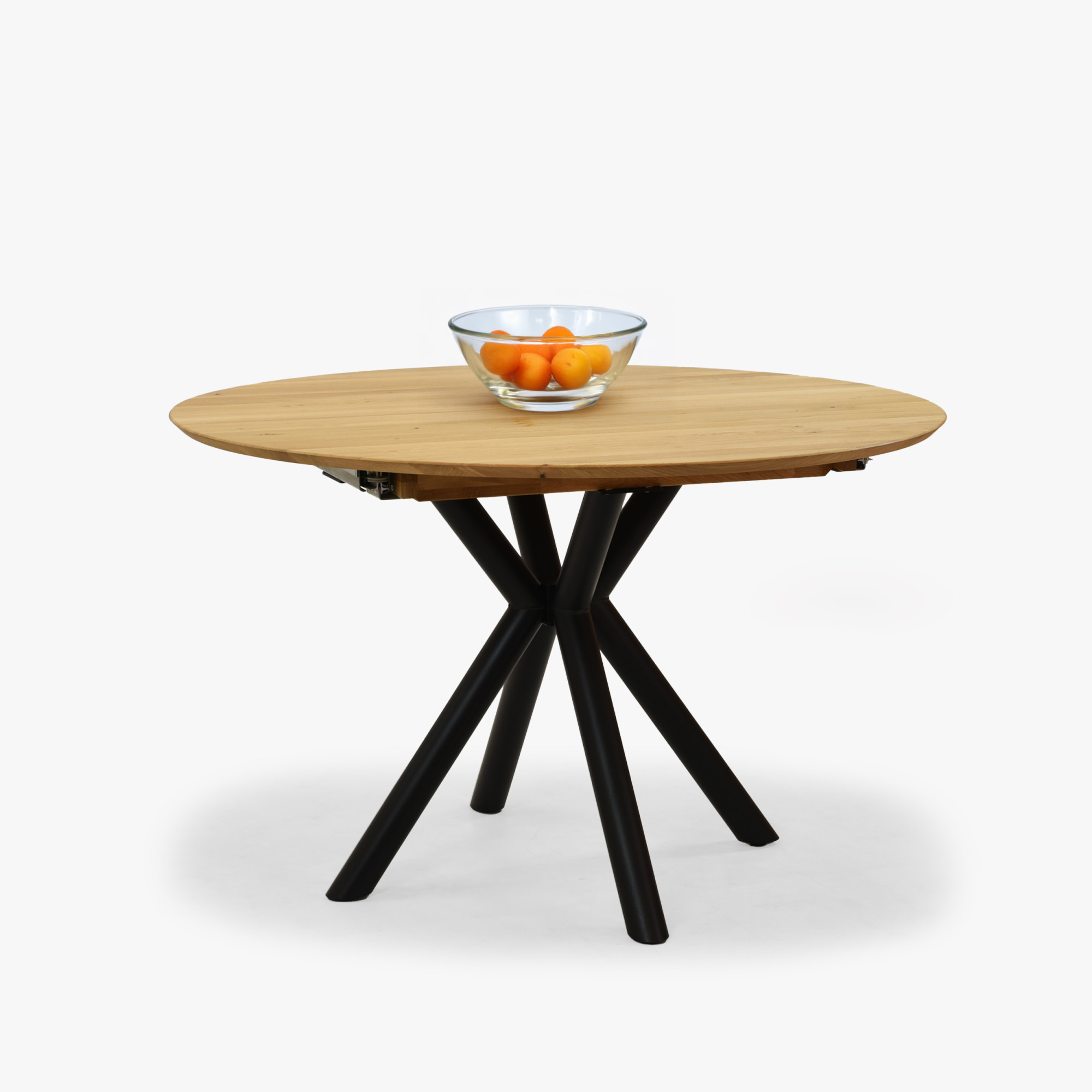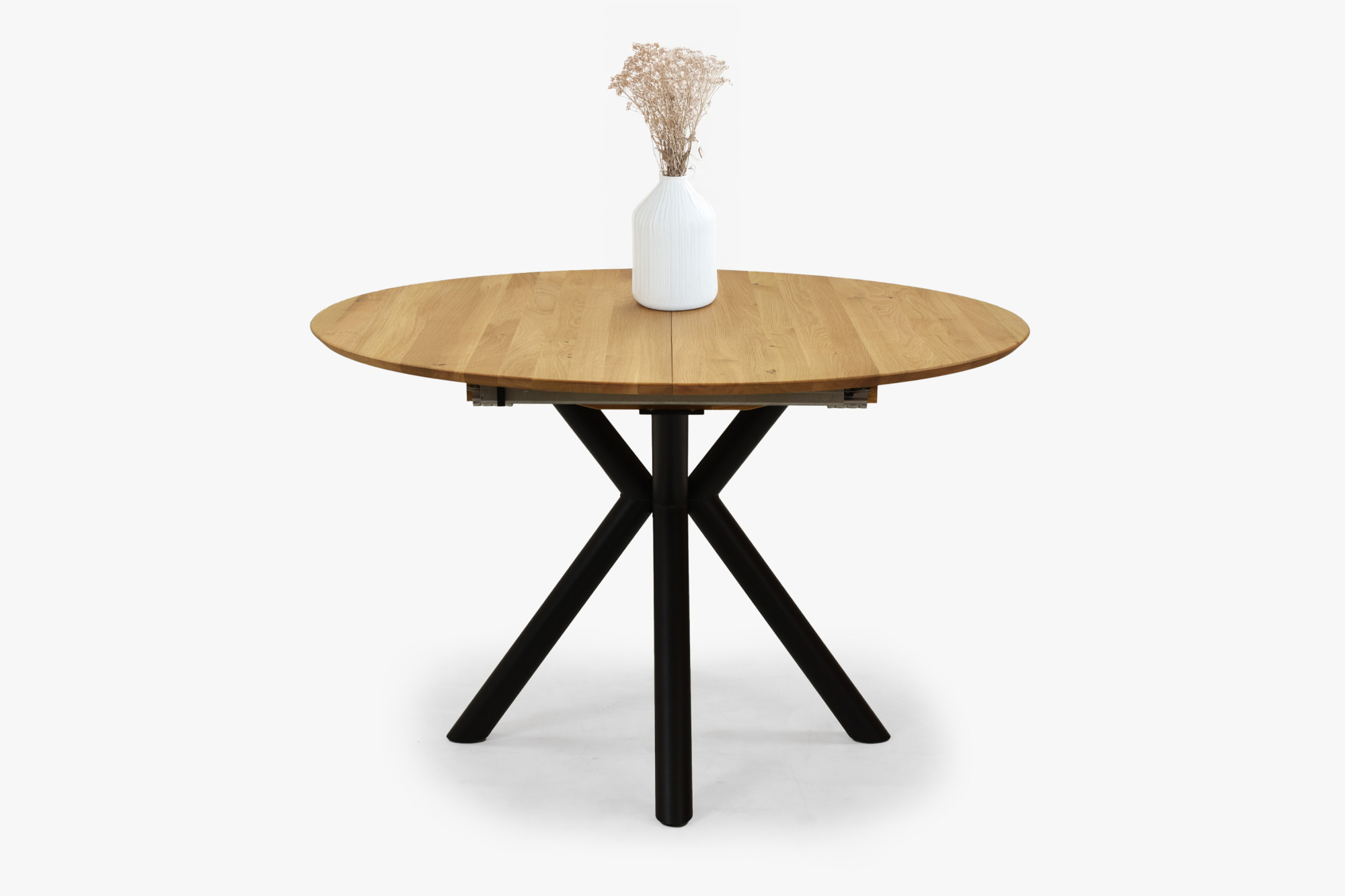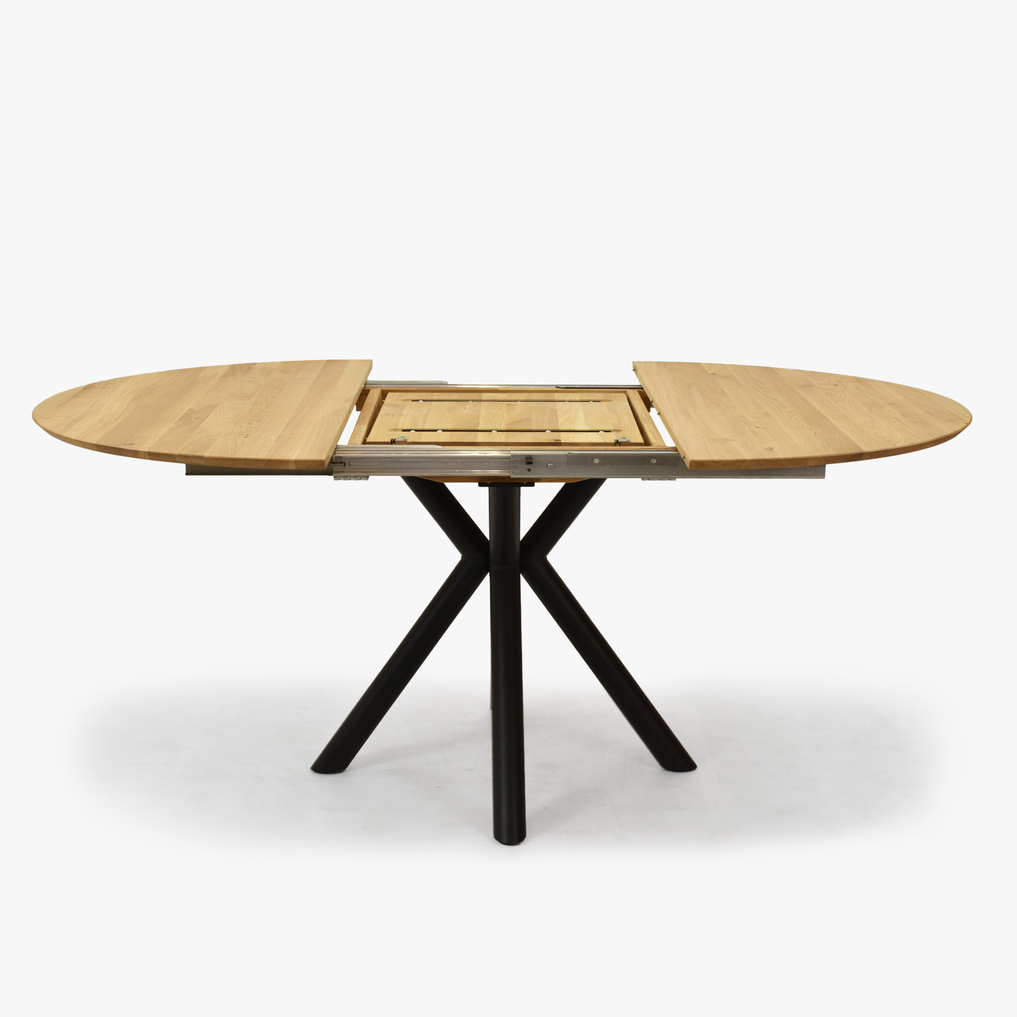 Kerek, kihúzható tölgy asztal fém lábakkal ø120 cm