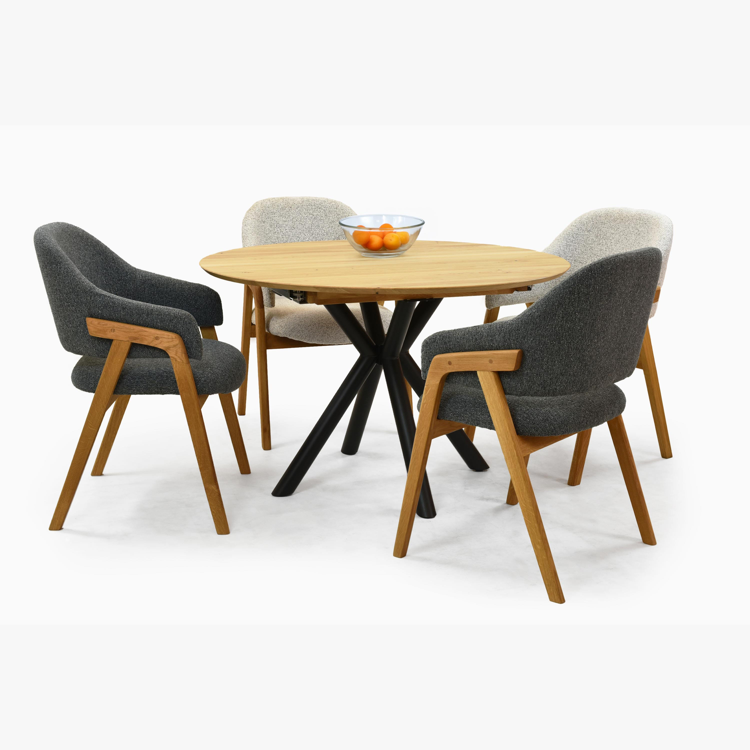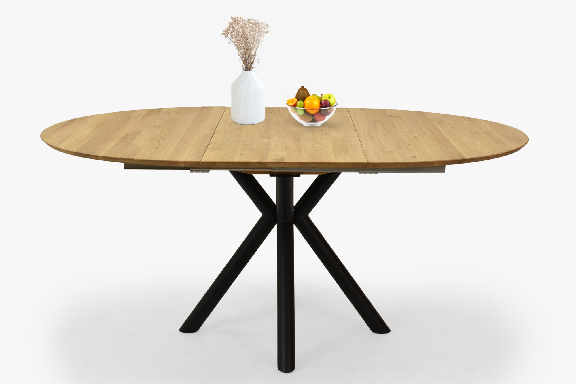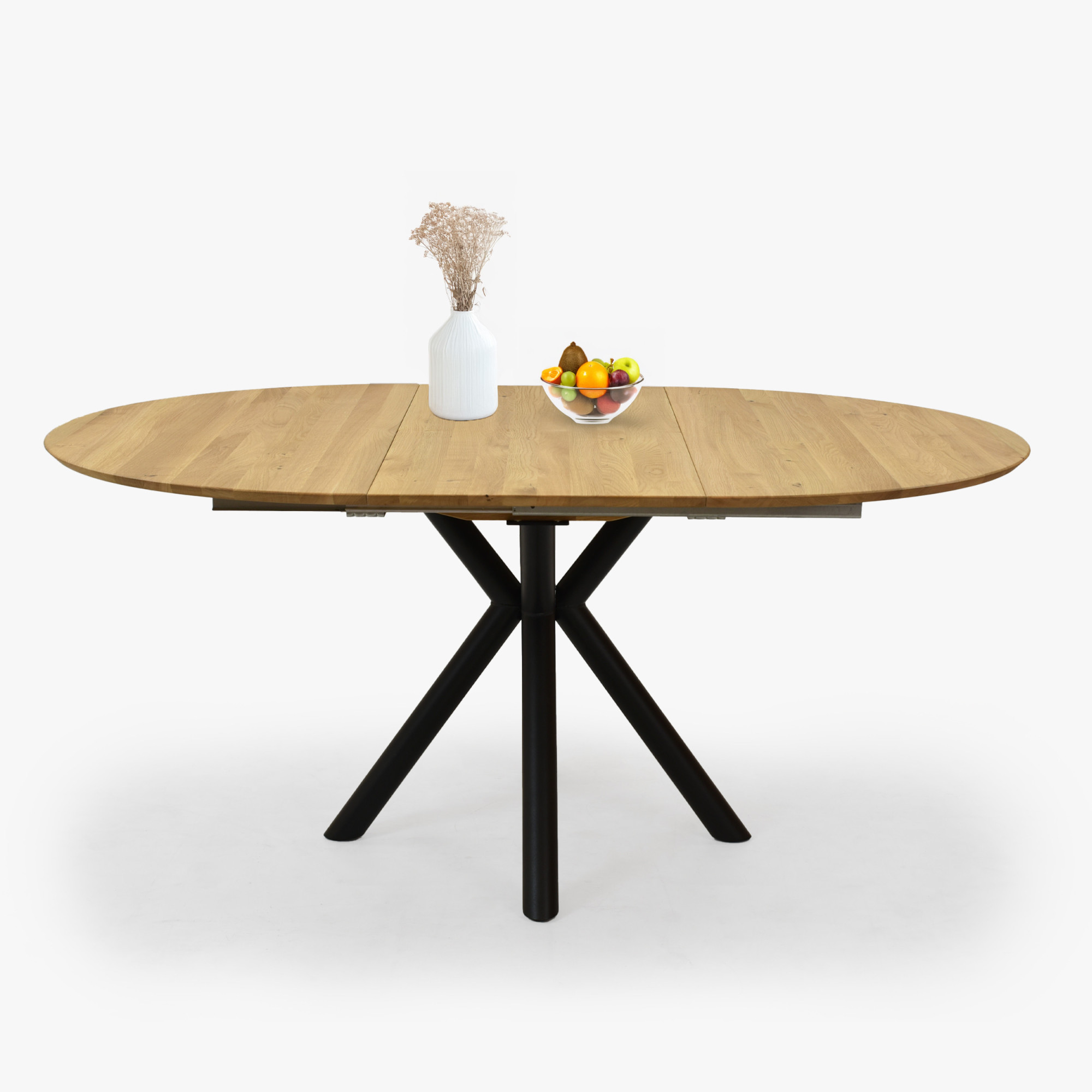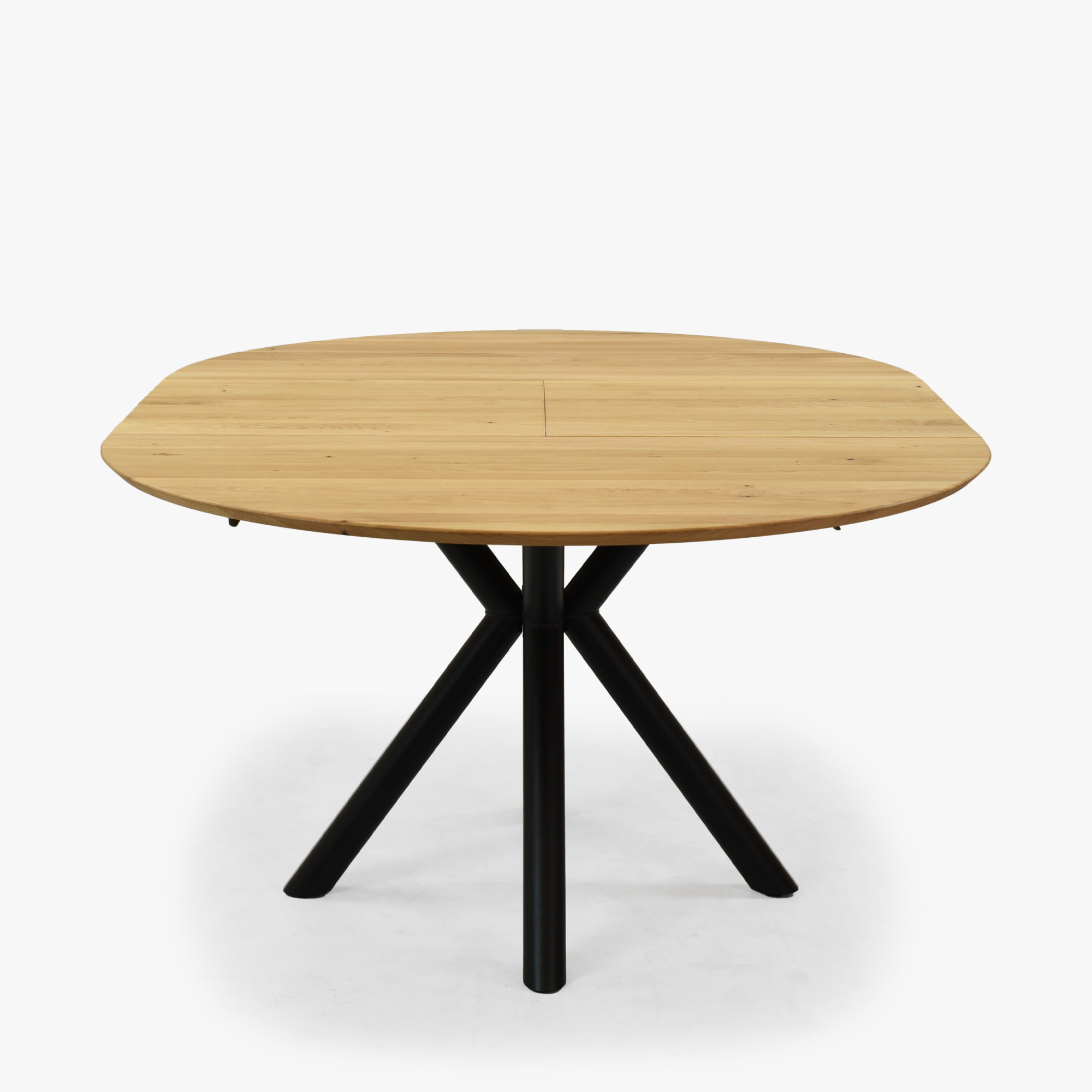 Kerek, kihúzható tölgy asztal fém lábakkal ø120 cm