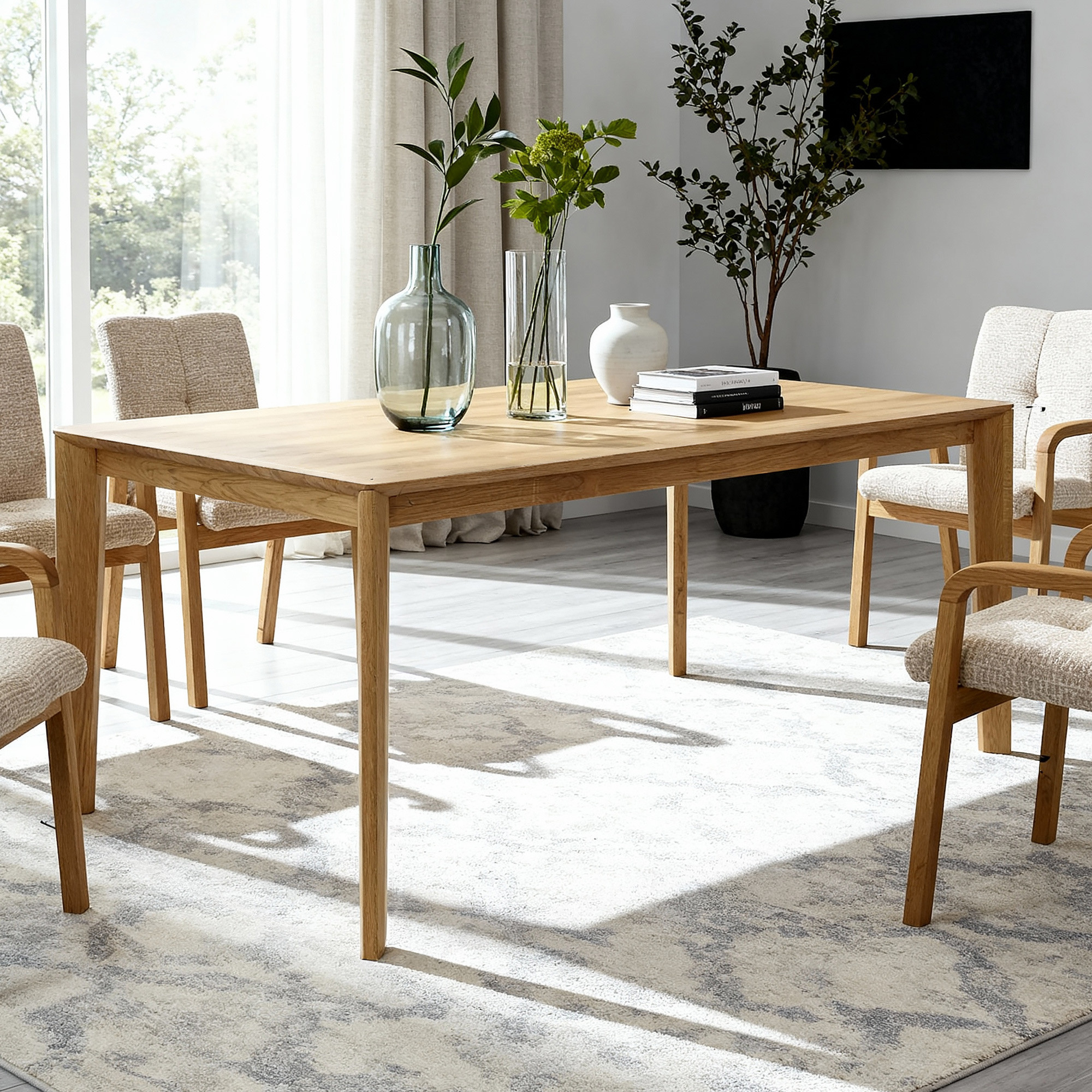 Tölgyfa étkezőasztal 180x90 cm, olajkezelt, masszív design