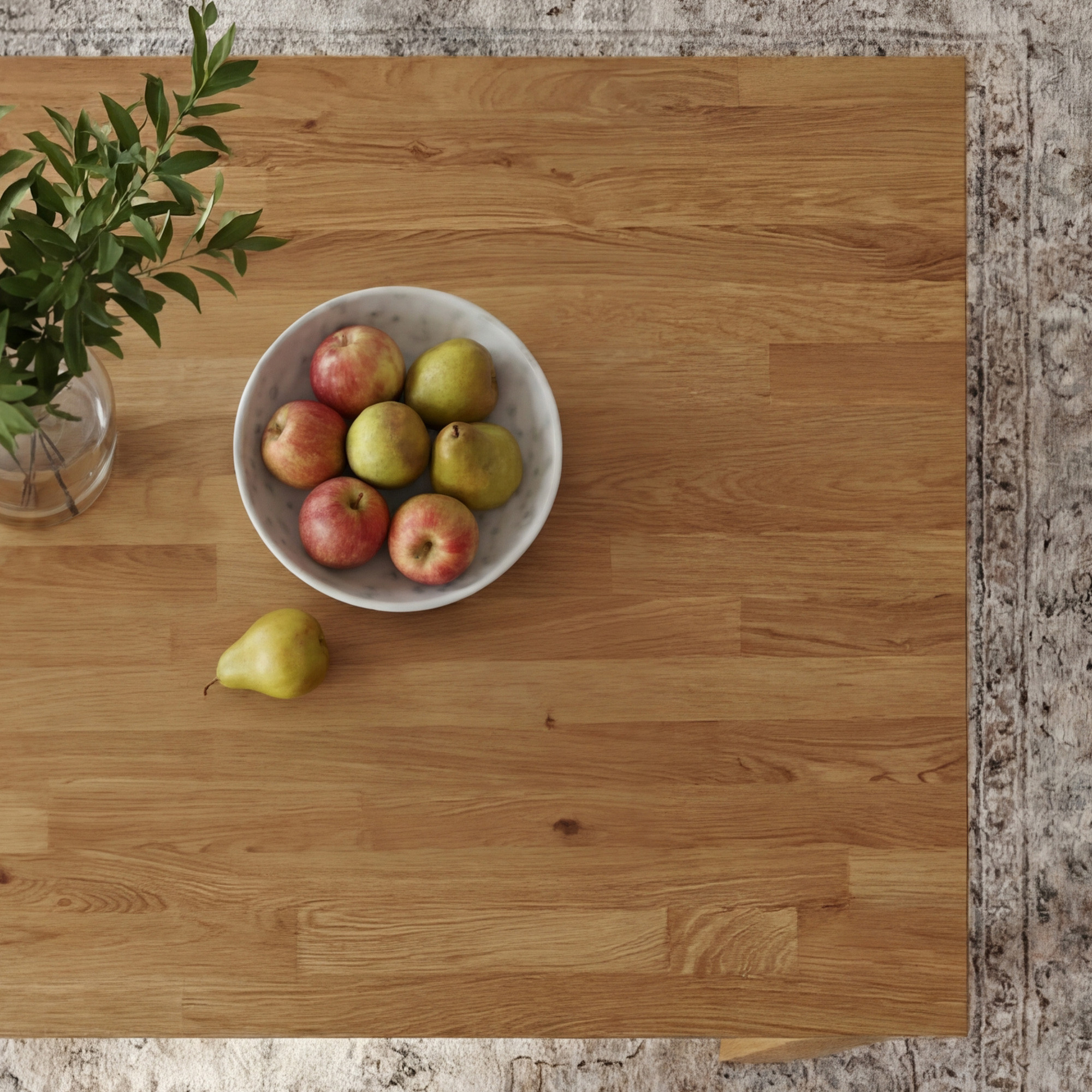 4. Hogyan van kezelve a tölgyfa? A felület természetes olajjal kezelt, amely kiemeli a fa mintázatát és megóvja az anyagot.