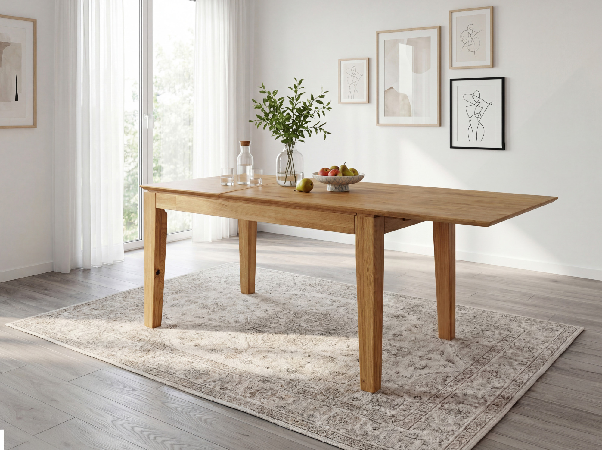 Erik tölgyfa bővíthető asztal 120 x 80 cm, szétnyitva 180 x 80 cm