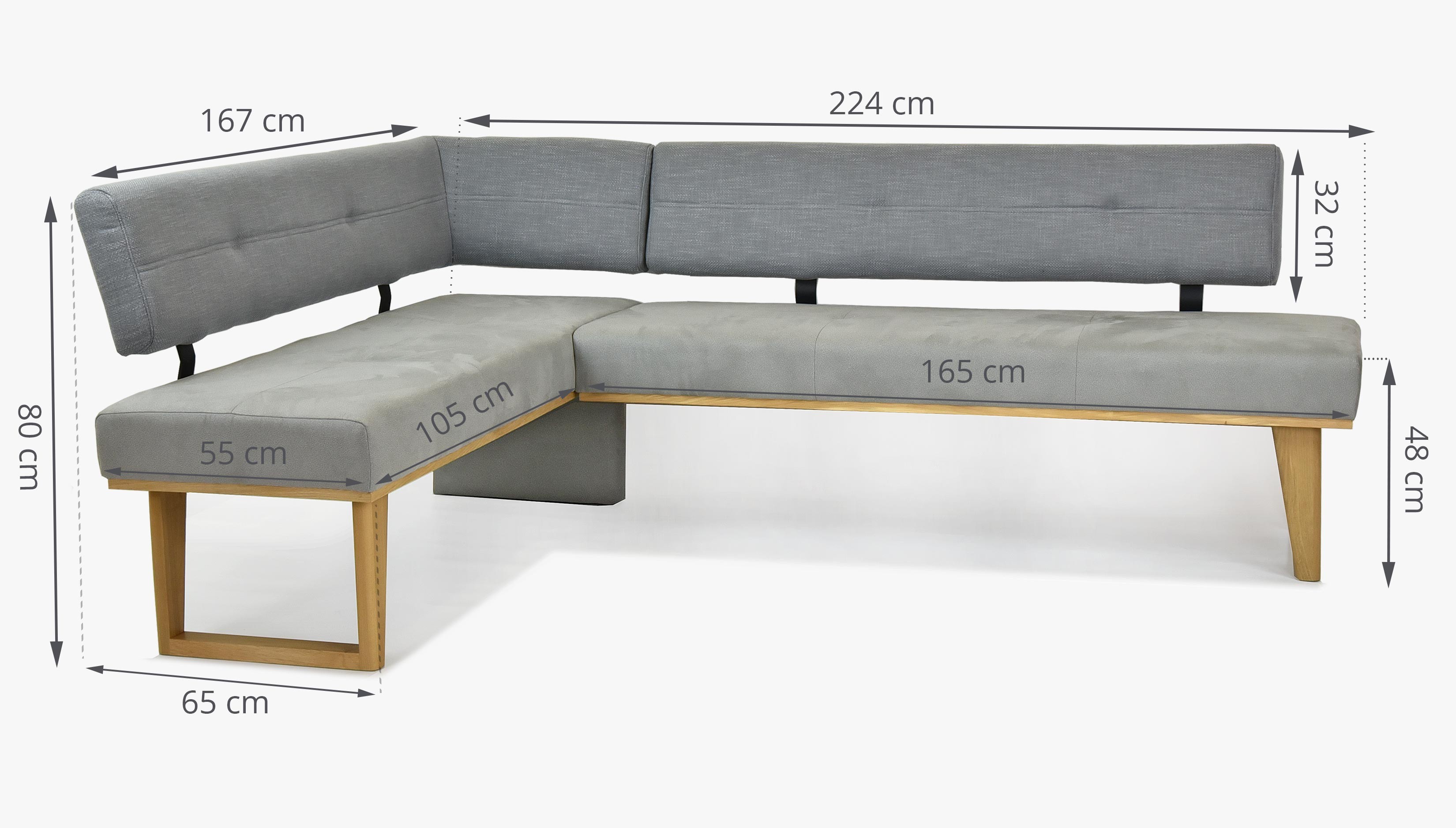 Kárpitozott sarokpad - szürke - tölgy lábak Colmar , balos