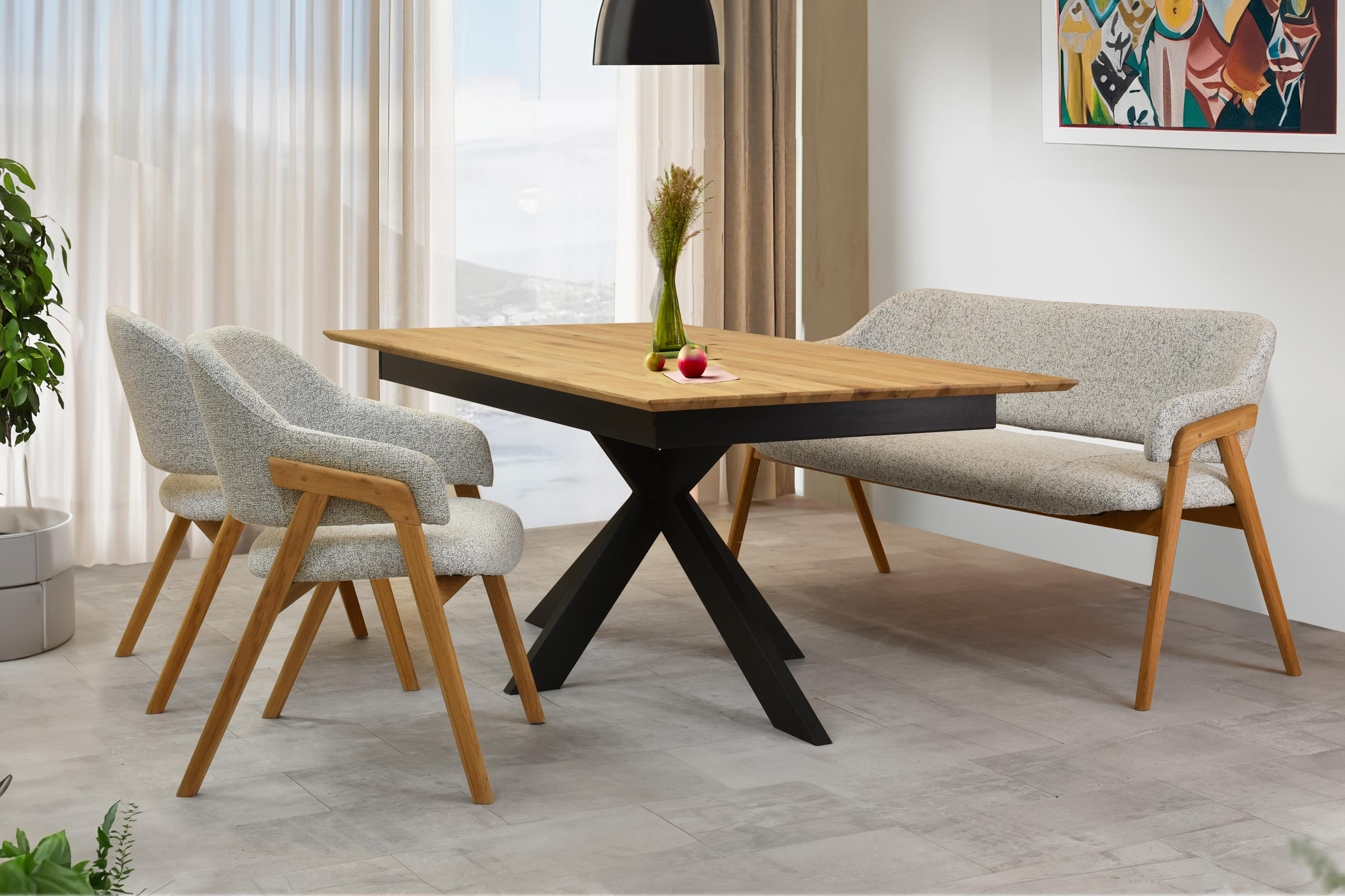 *a fényképen a Clara modell szék és pad látható Samuel XL asztallal Samuel XL
