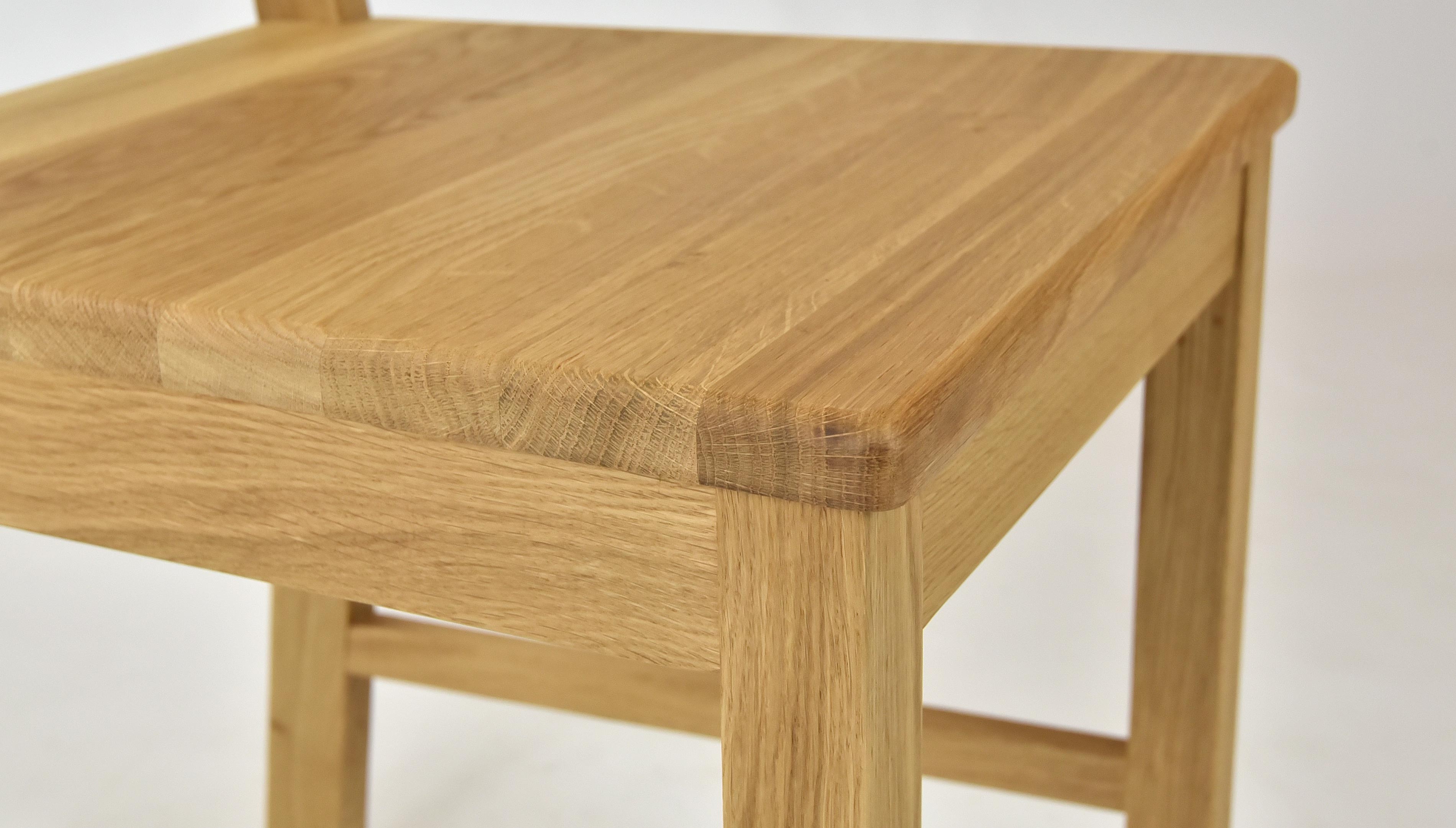 A tömör tölgy szerkezet nagy stabilitást biztosít, a javasolt terhelhetőség 120 kg. Az étkezőszék teljes mértékben fából készült; az ülés kényelméhez kiegészítő párnákat vásárolhat szaküzletekben. A széket természetes olajjal kezelték, így bármelyik nálunk kínált étkezőasztallal kombinálható.