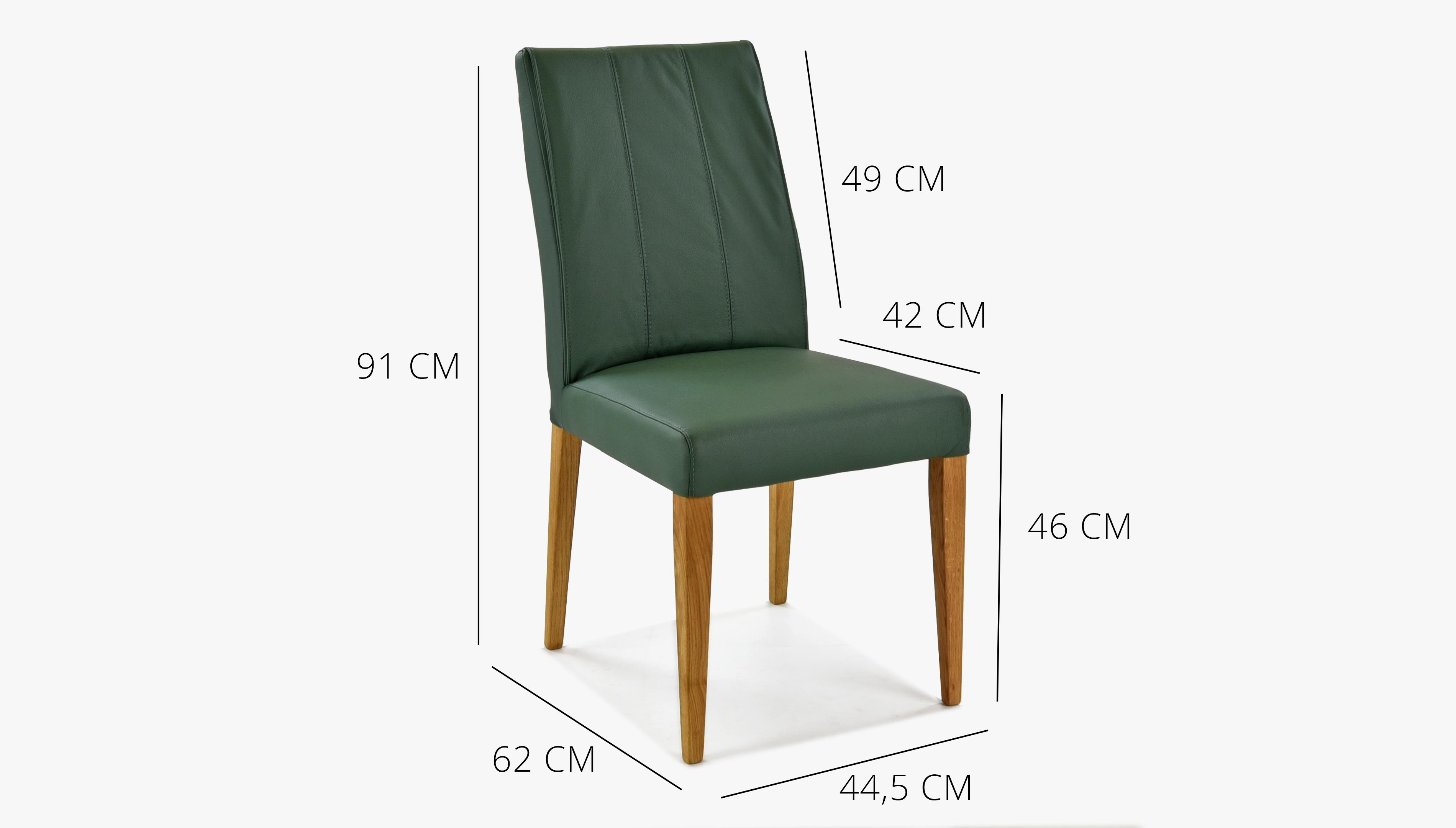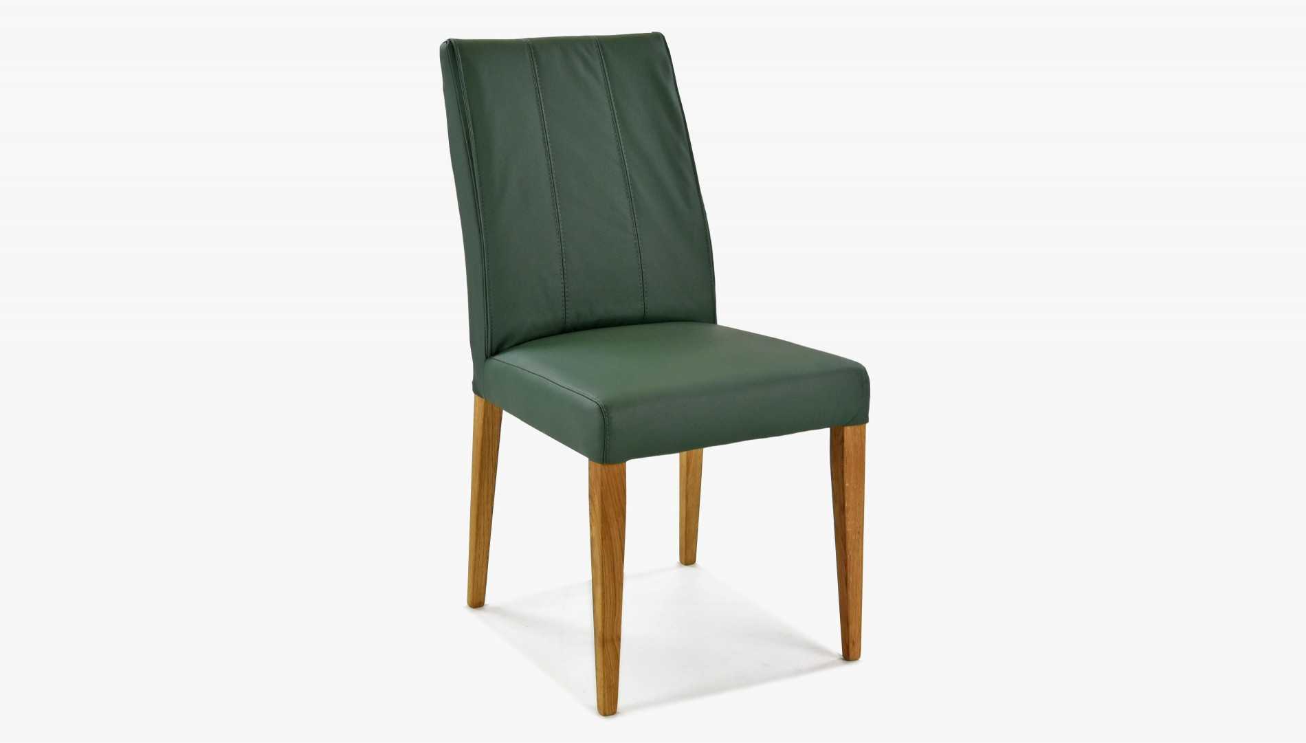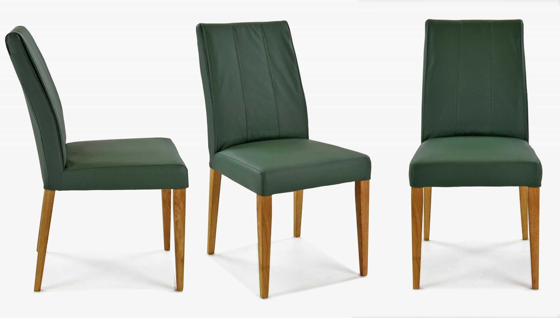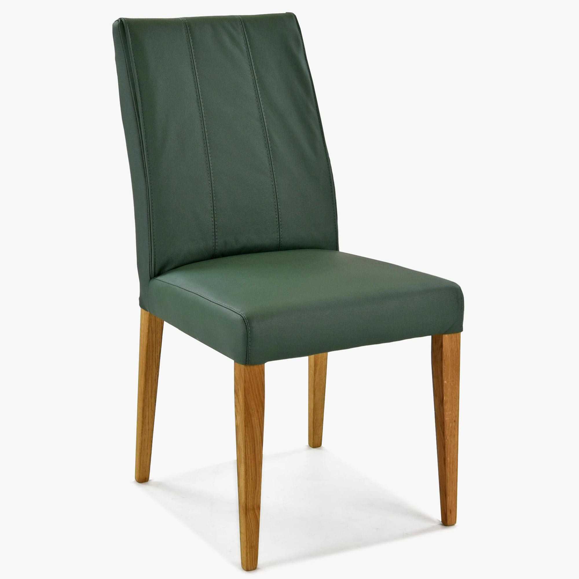 Szék valódi bőrrel - zöld szín Klaudia, tölgyfa lábakkal