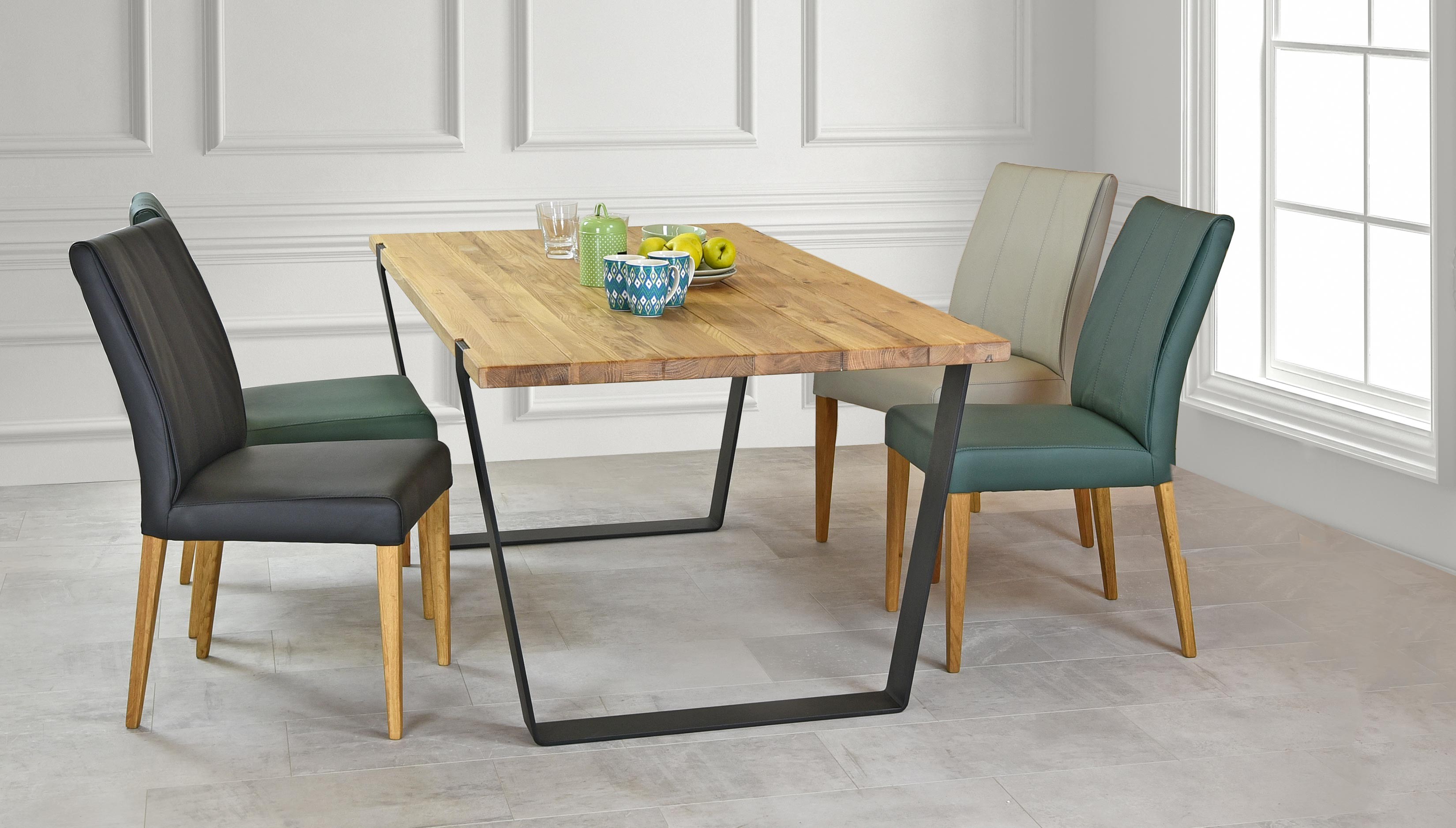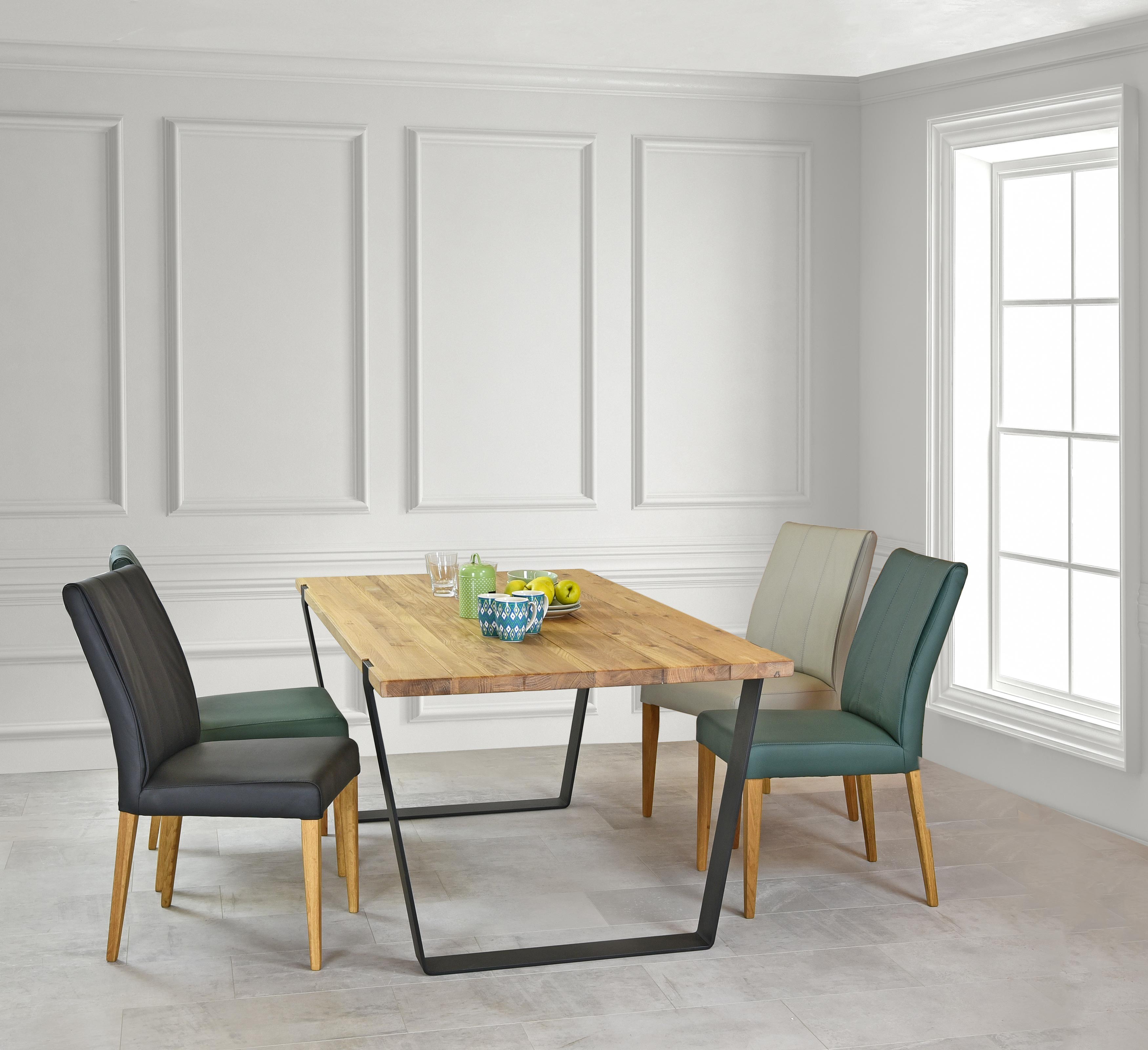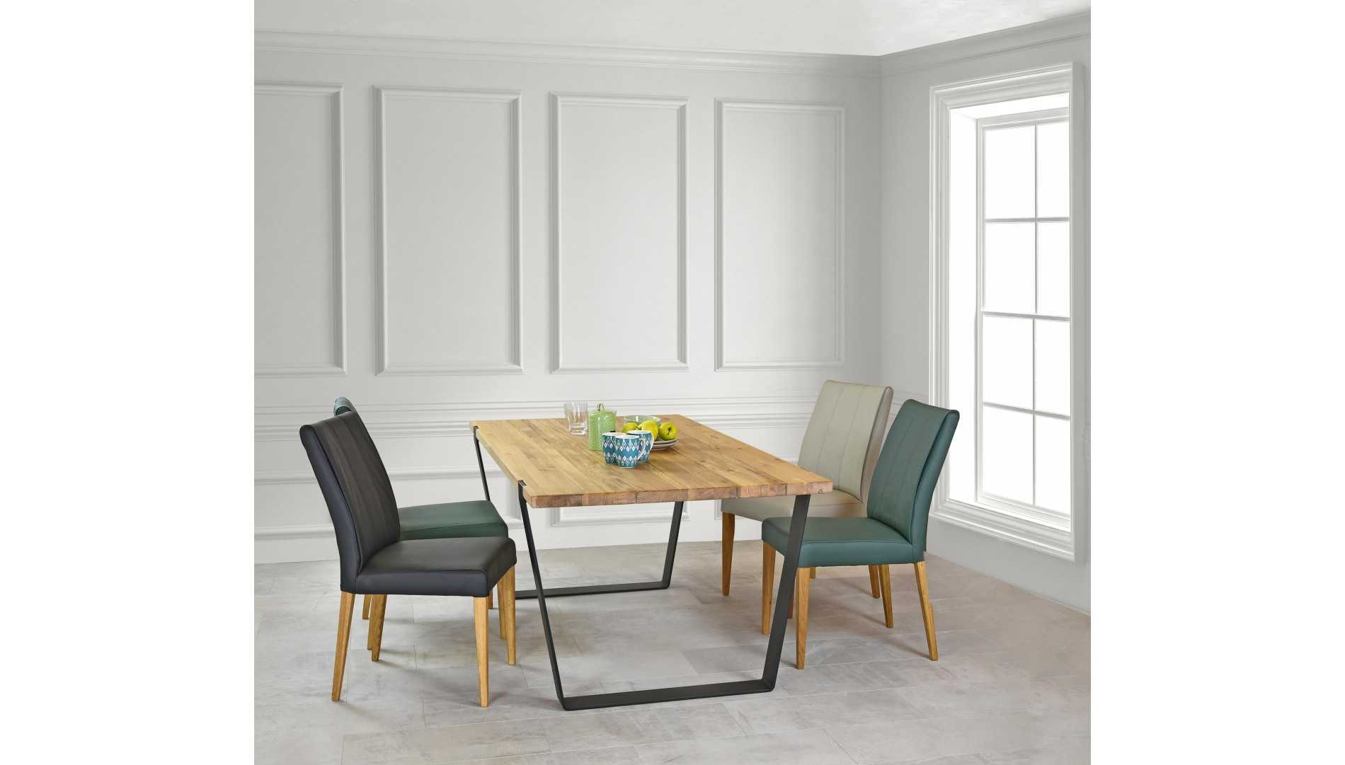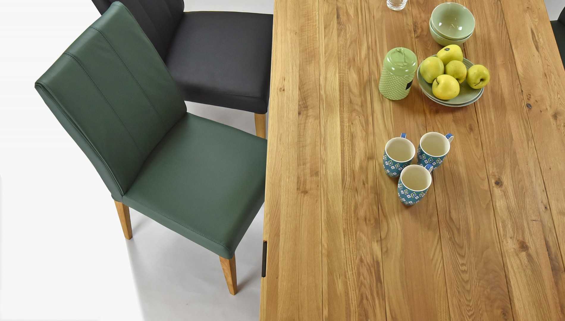 Szék valódi bőrrel - zöld szín Klaudia, tölgyfa lábakkal