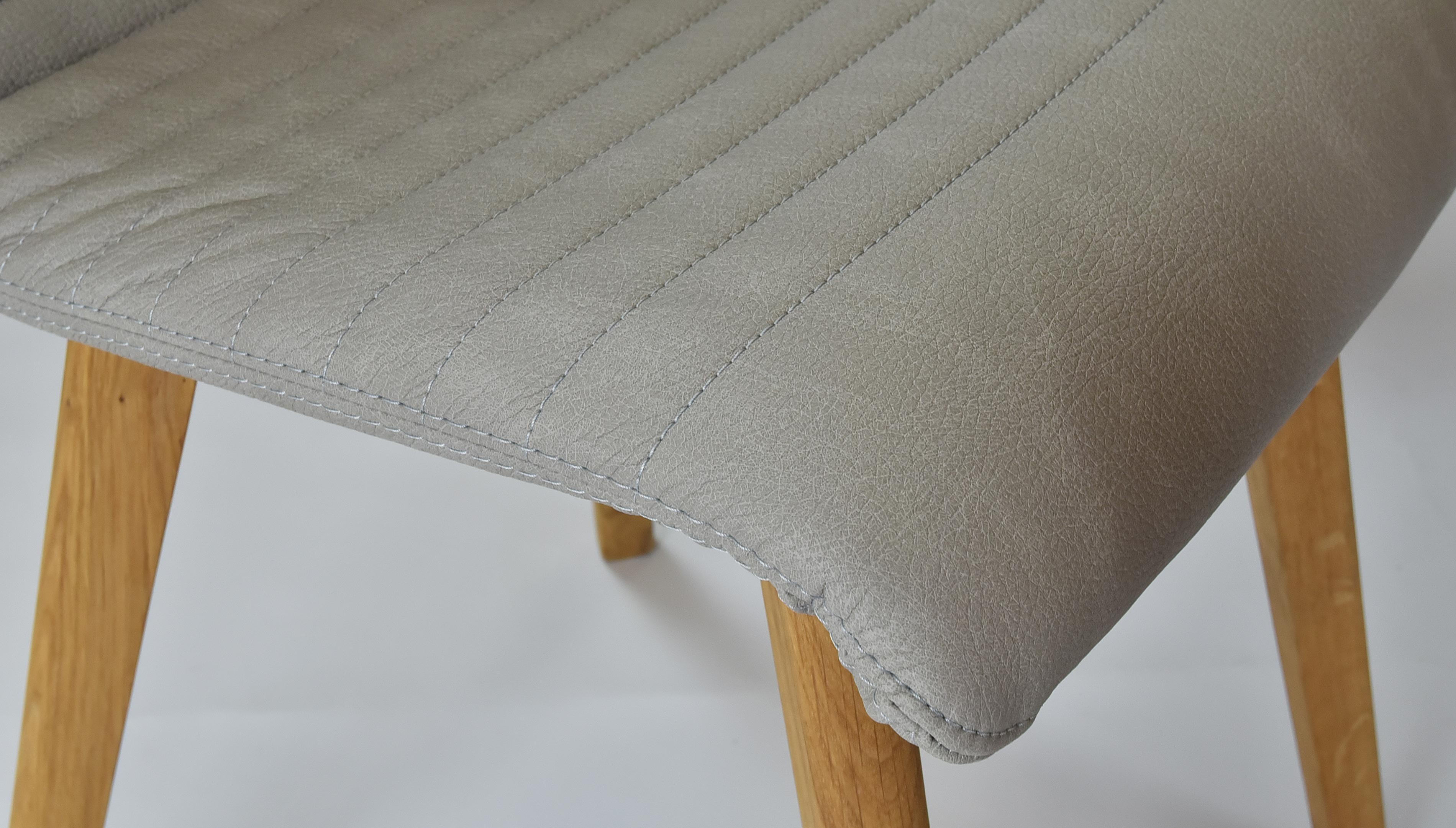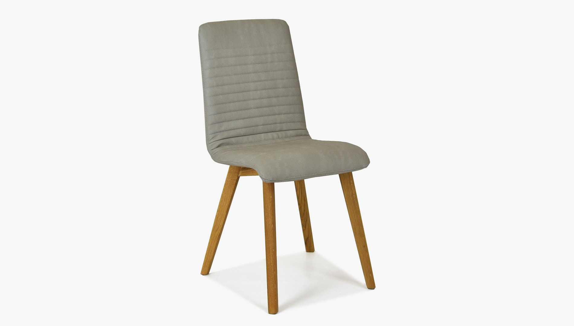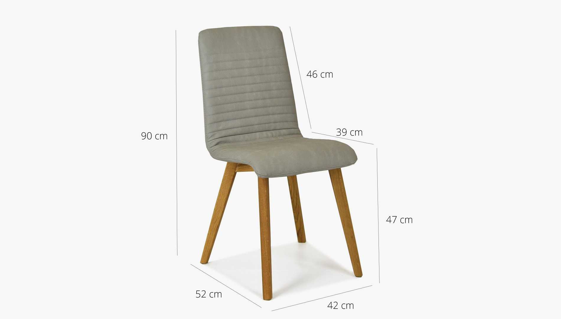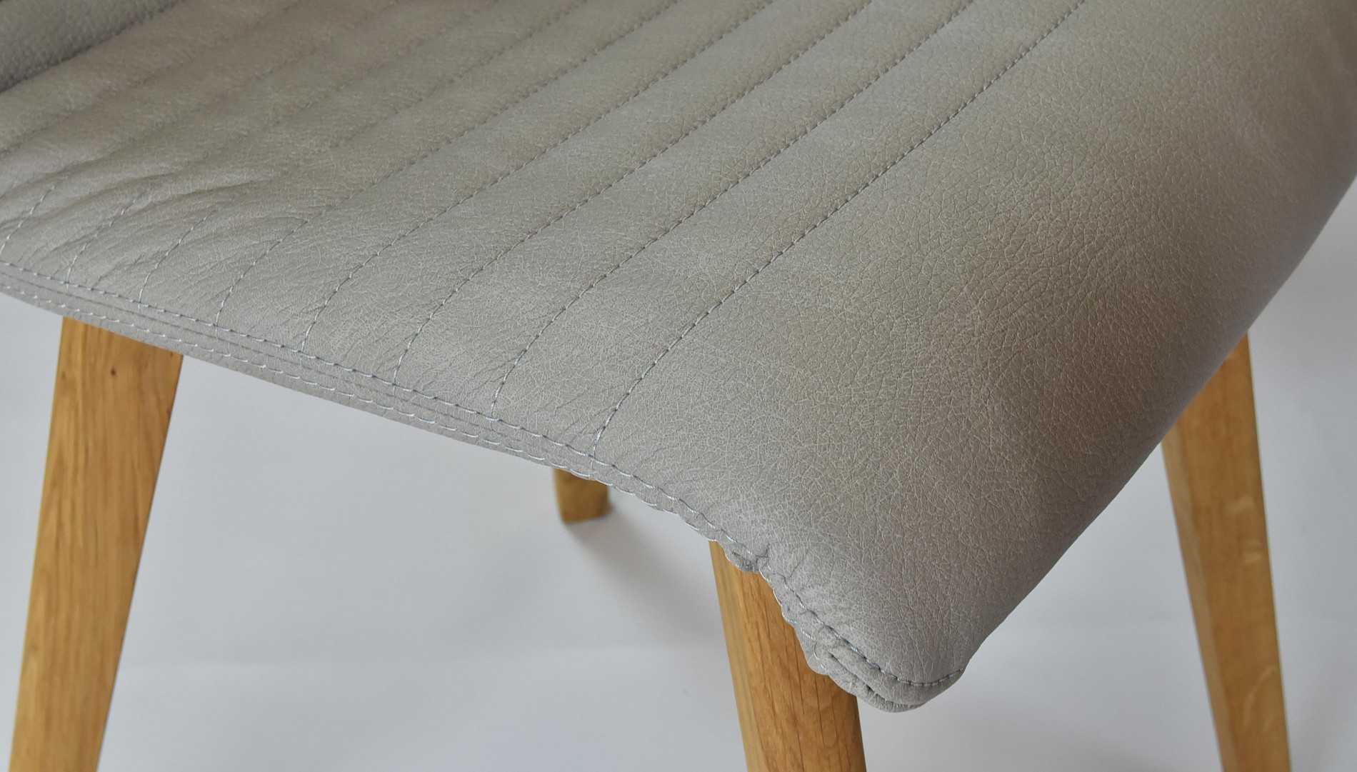 Világosszürke bőrhatású étkezőszék tölgyfa lábakkal, könnyen