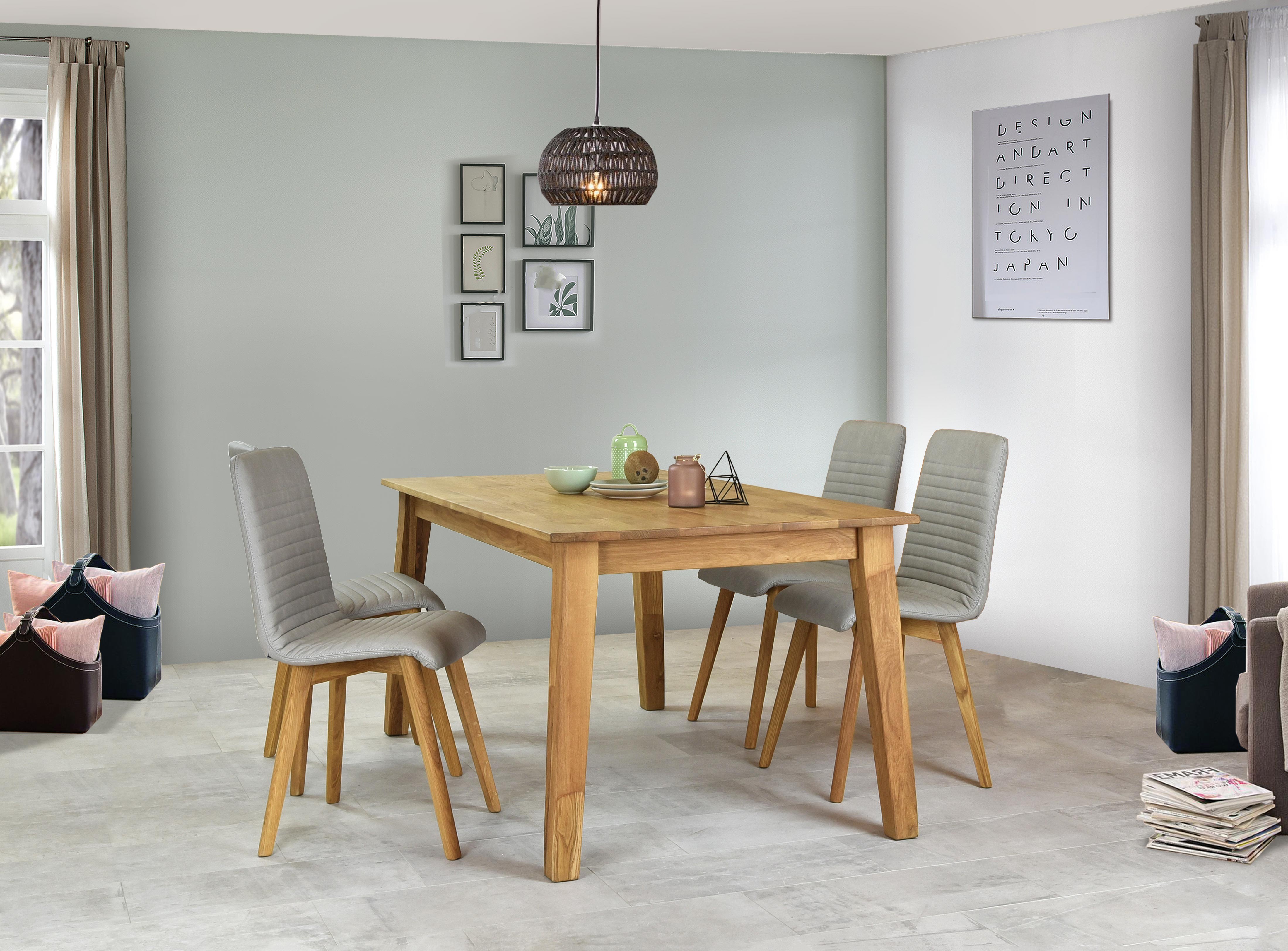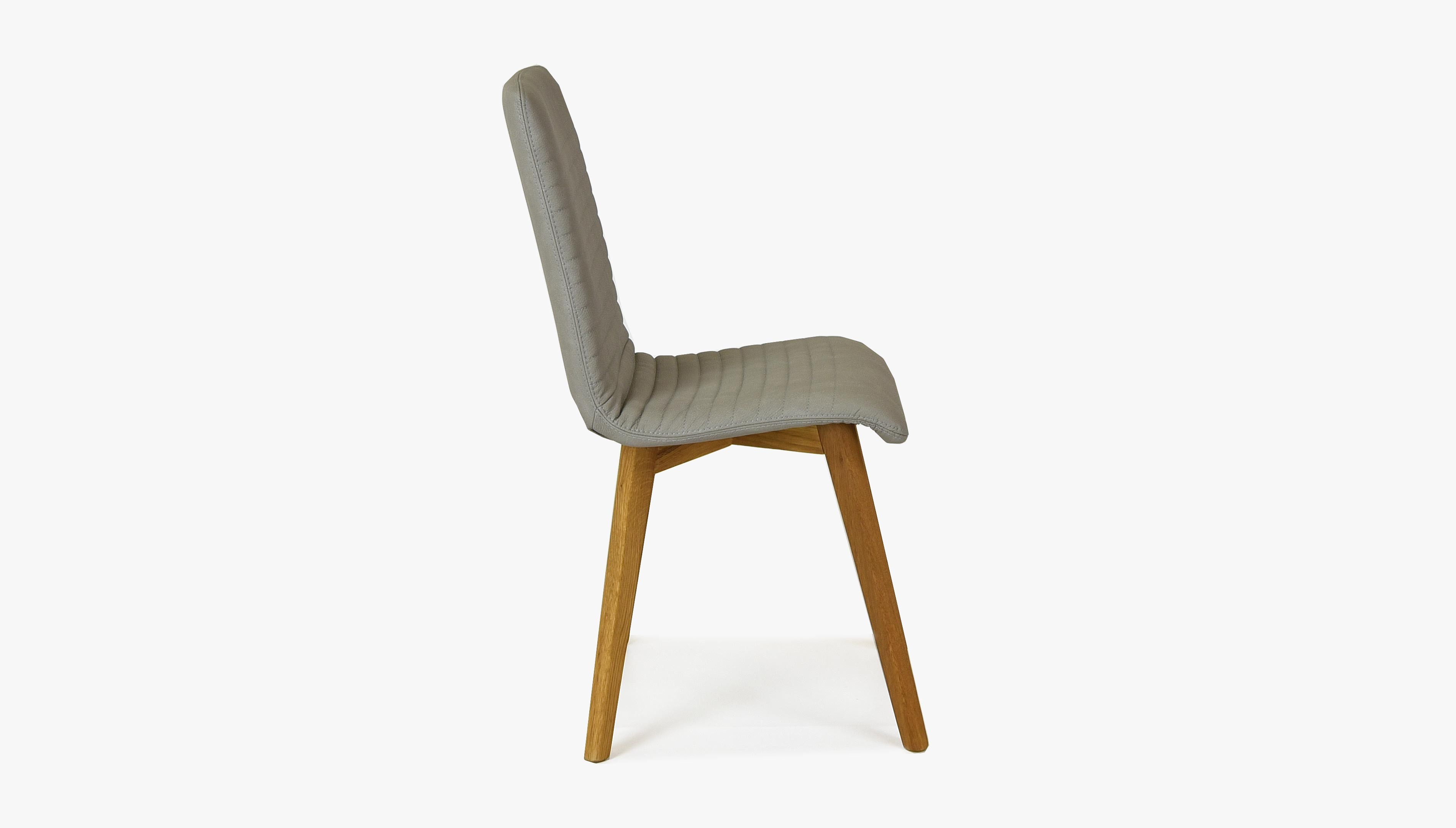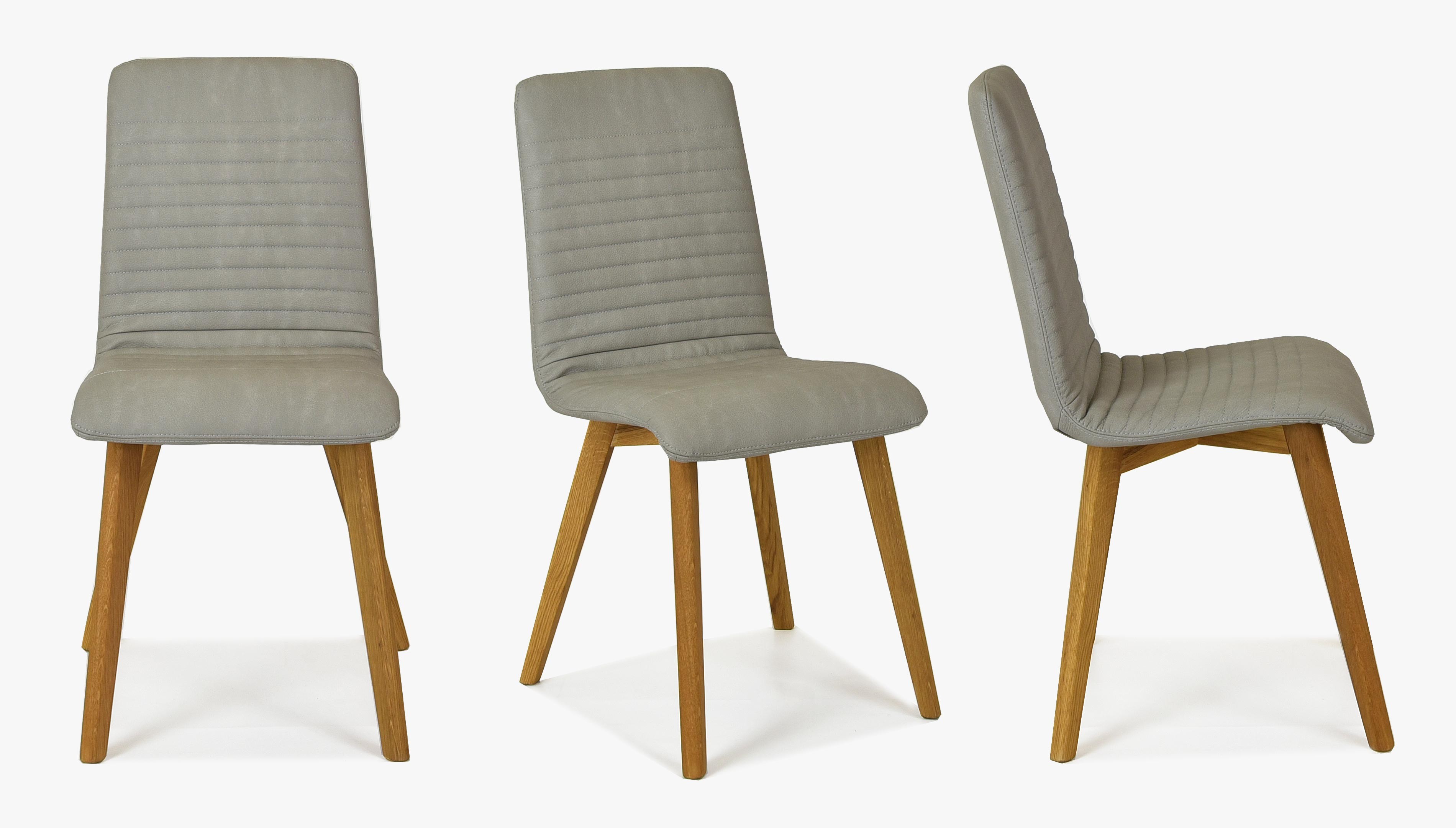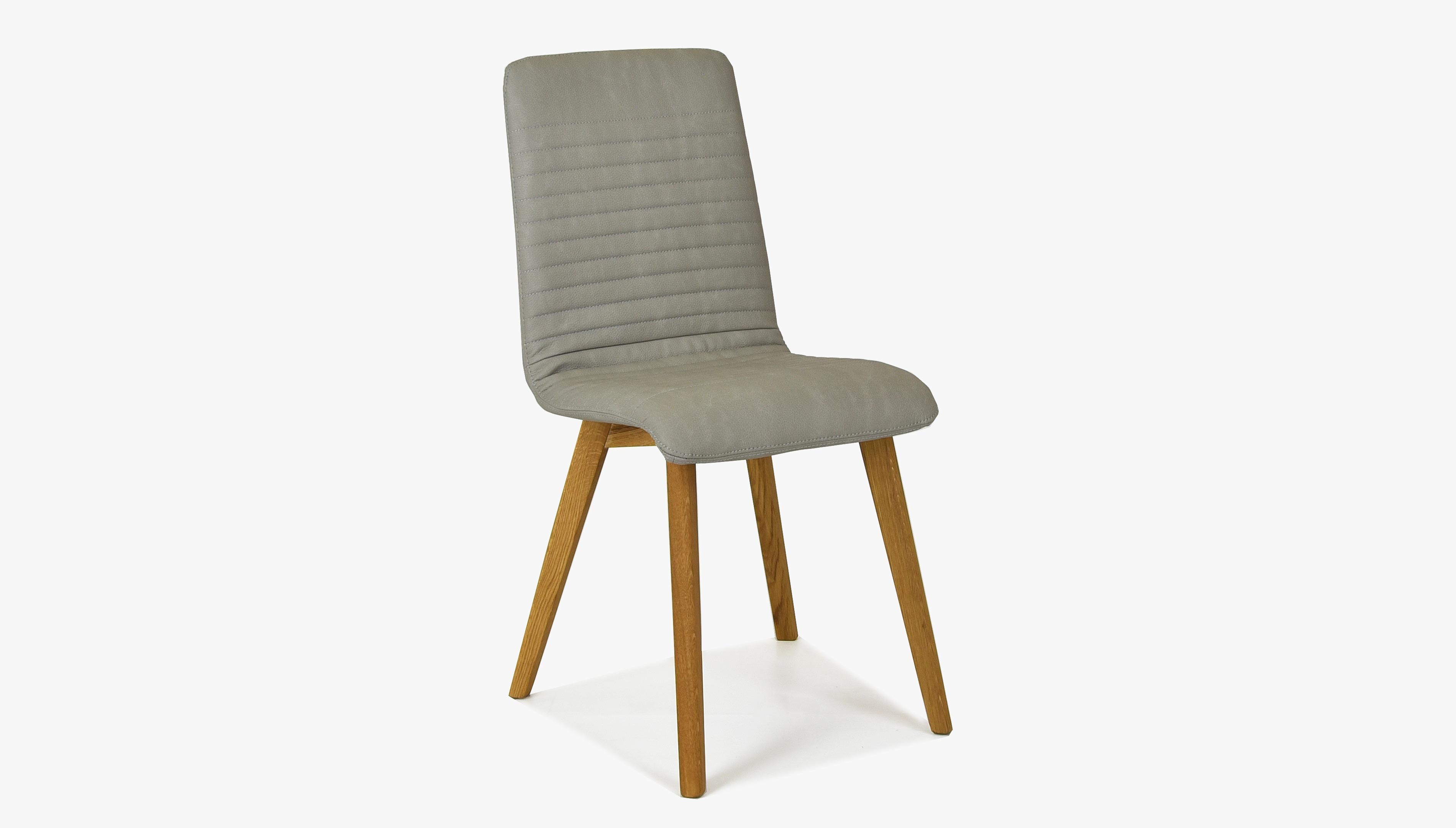 Világosszürke bőrhatású étkezőszék tölgyfa lábakkal, könnyen