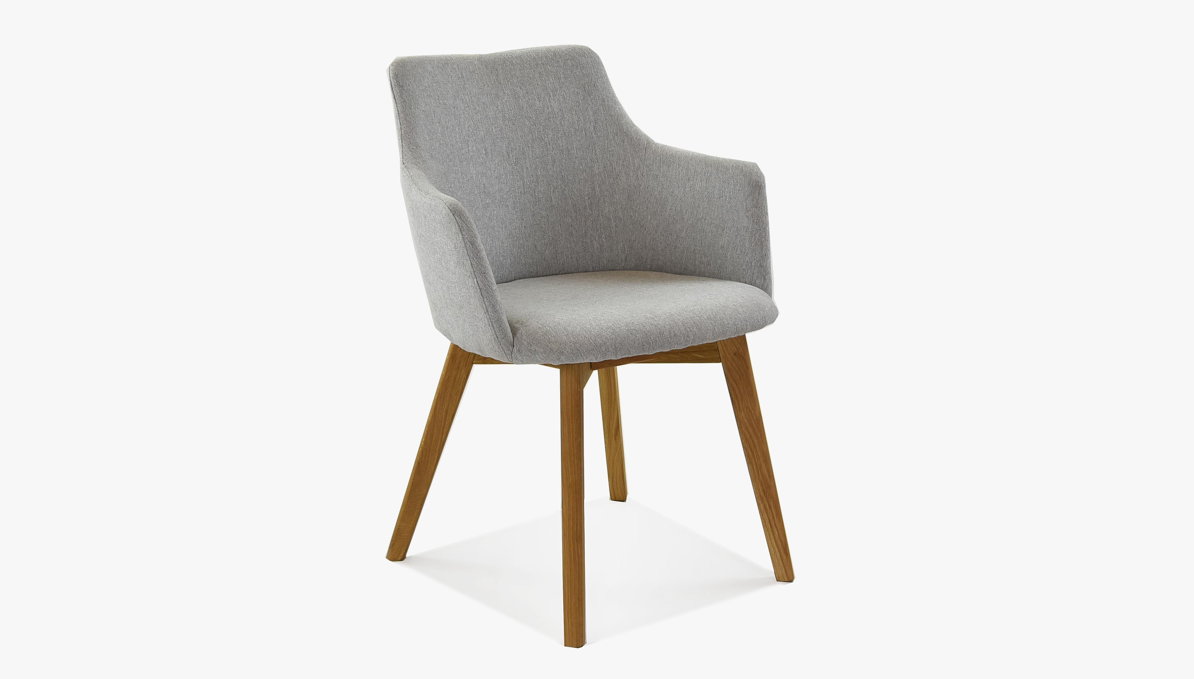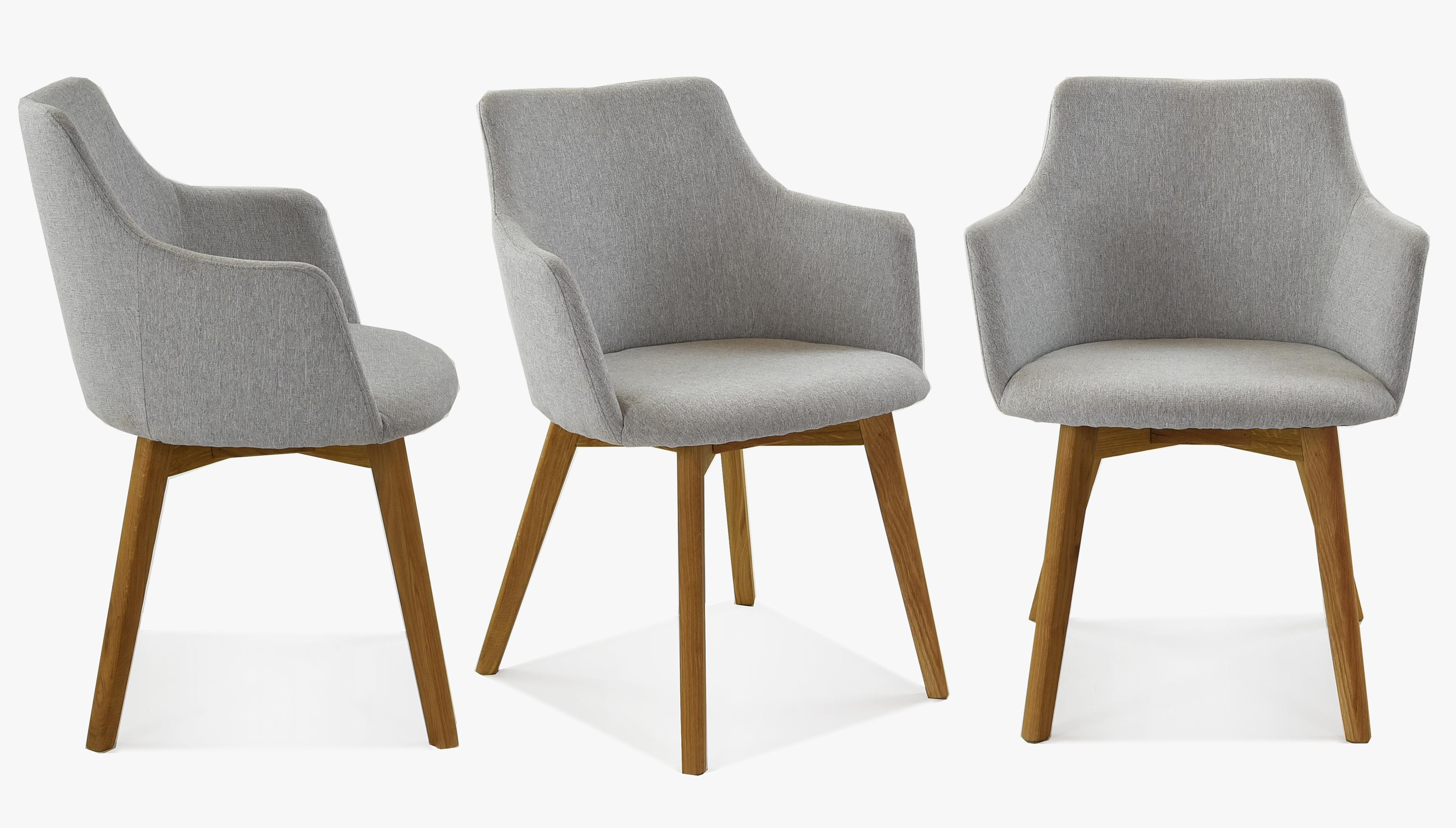 Kényelmes karfás étkezőszék világosszürke anyagból, 2 darabos szett