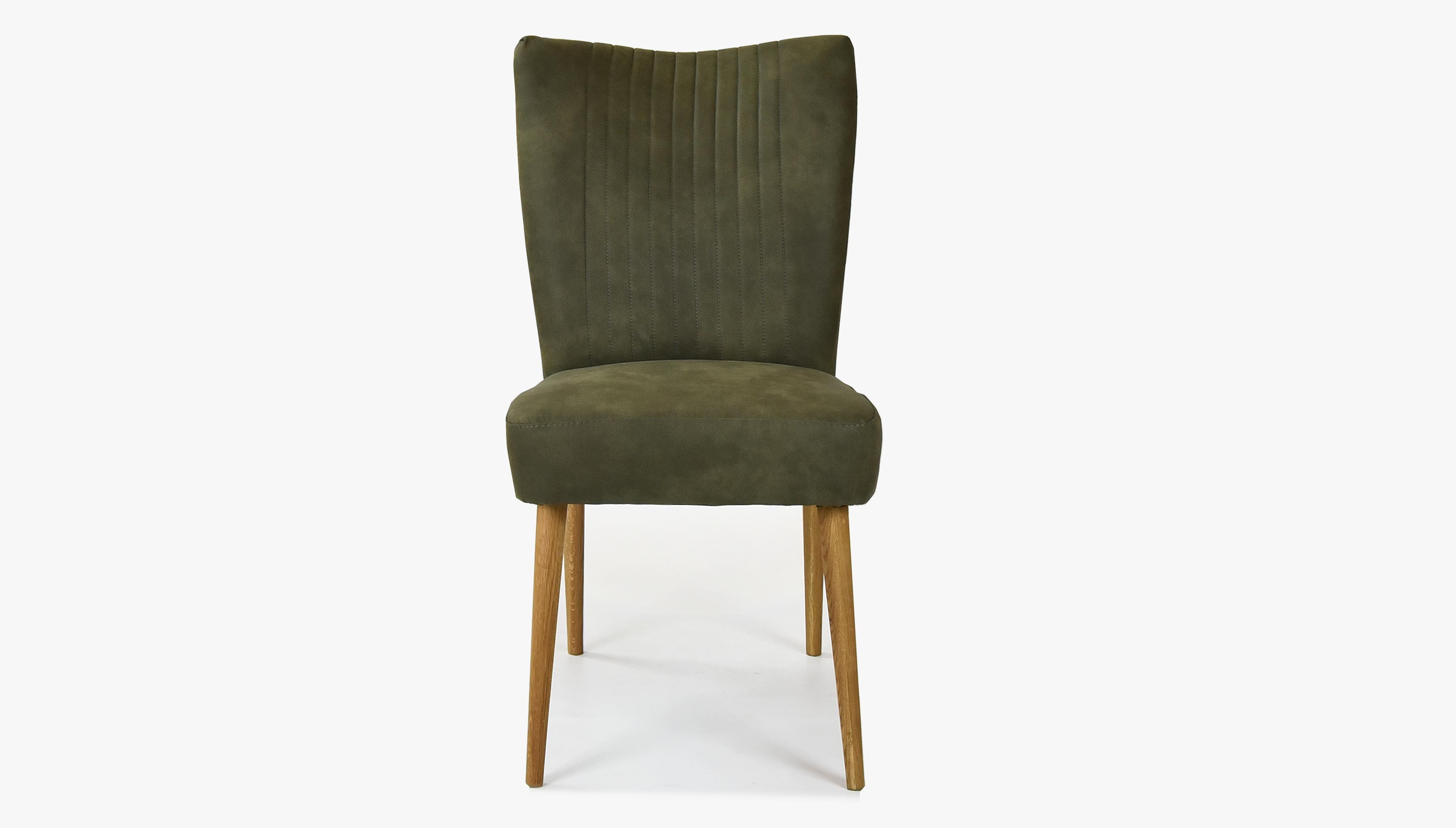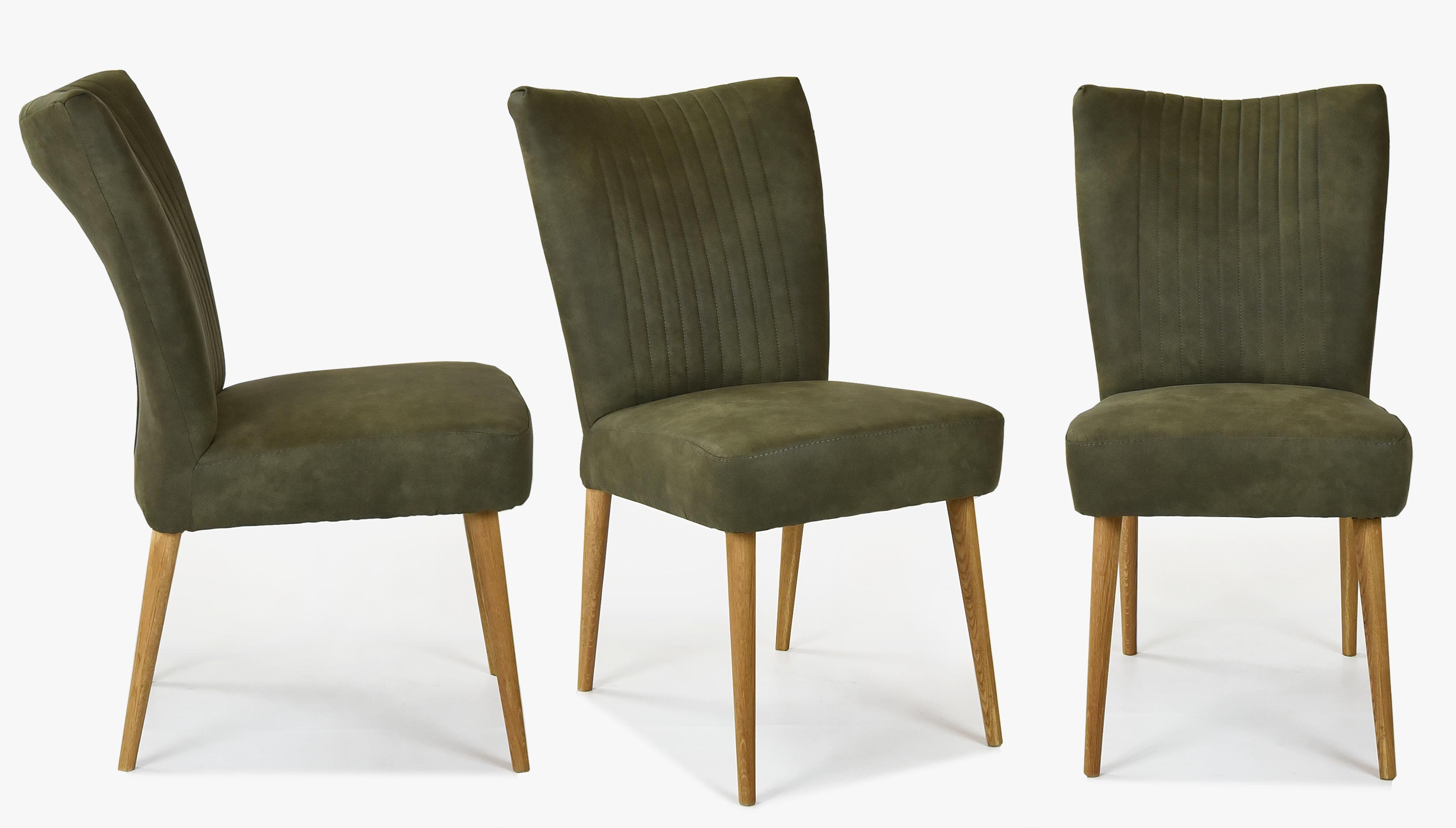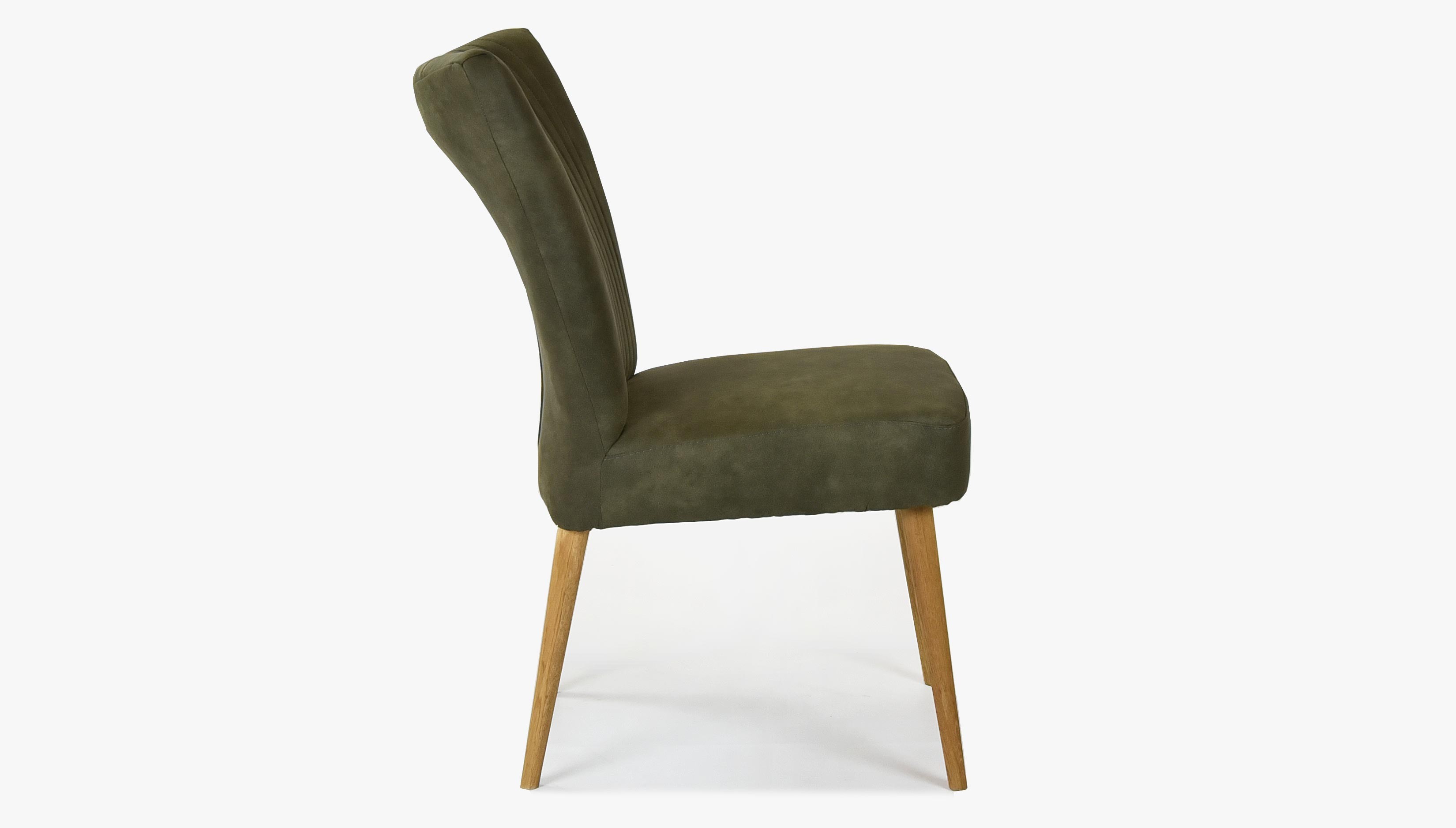Elegáns Valencia szék - kerek tölgyfa lábak, olívazöld