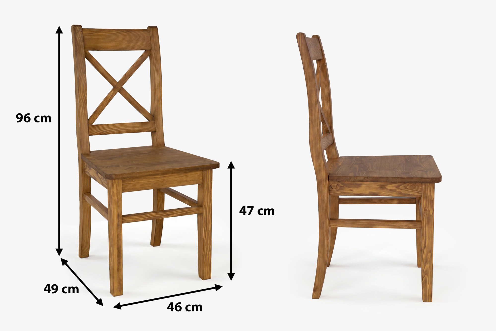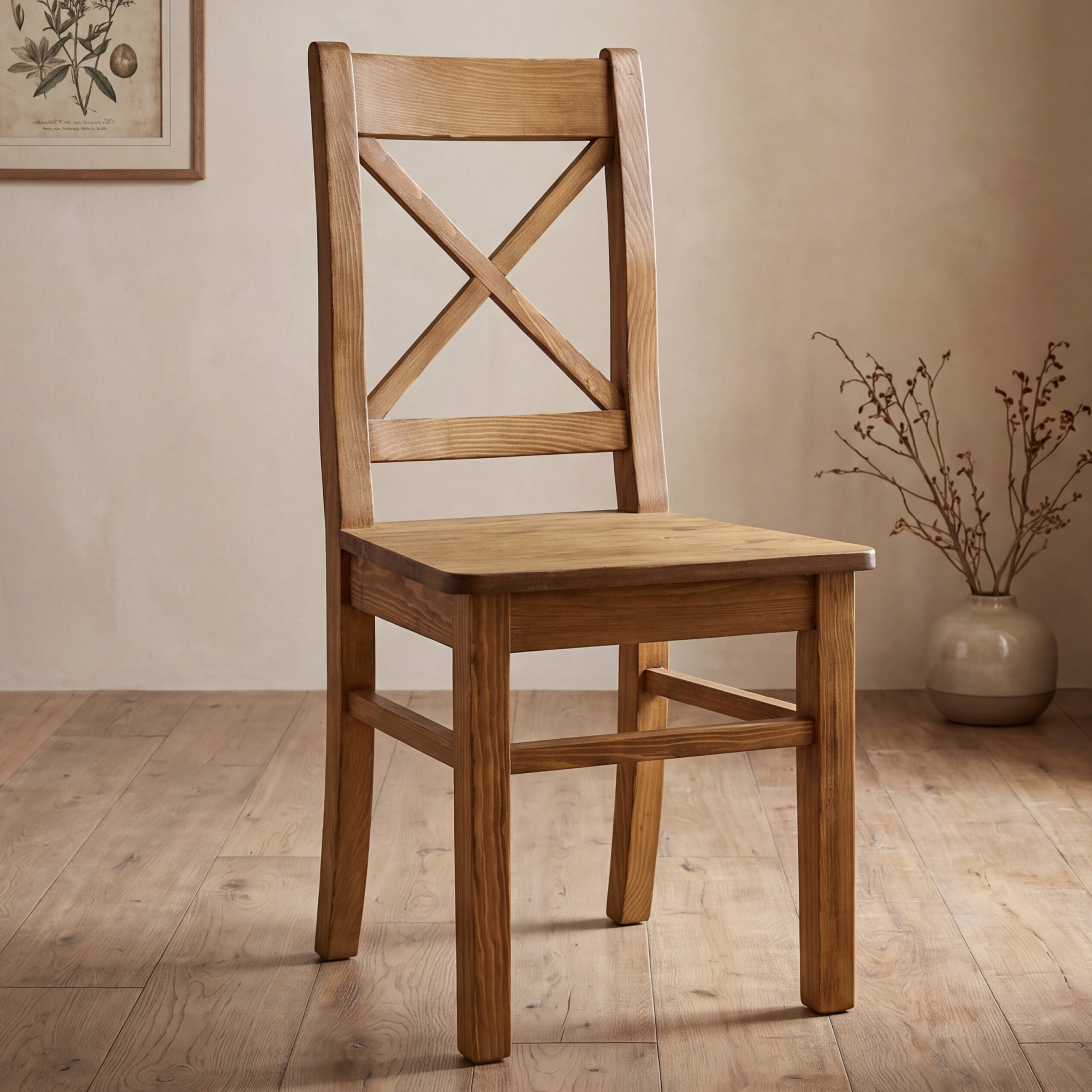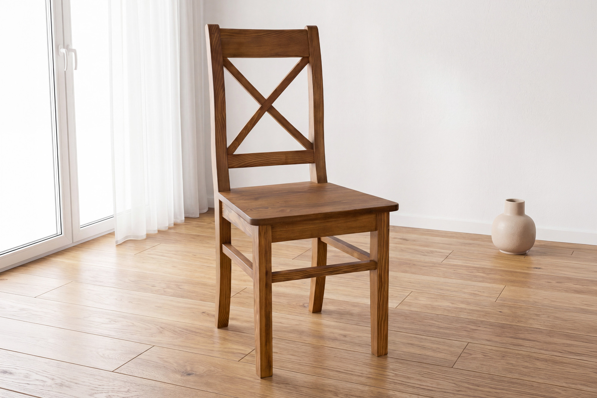 A szék magas minőségű tömör fenyőfából készül, amely erősségével, tartósságával és természetes megjelenésével emelkedik ki.