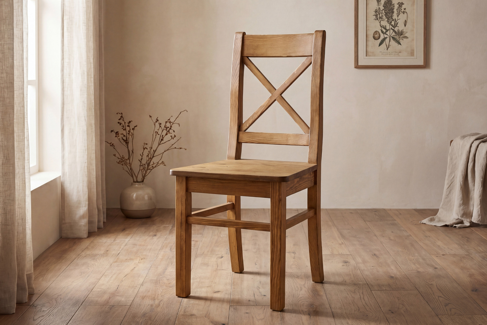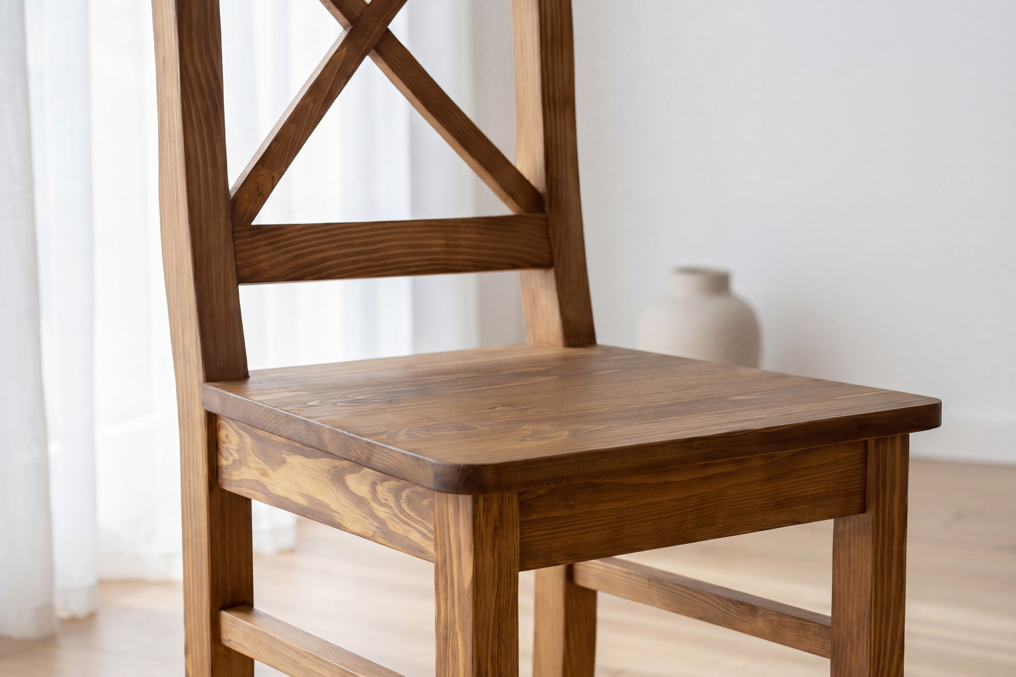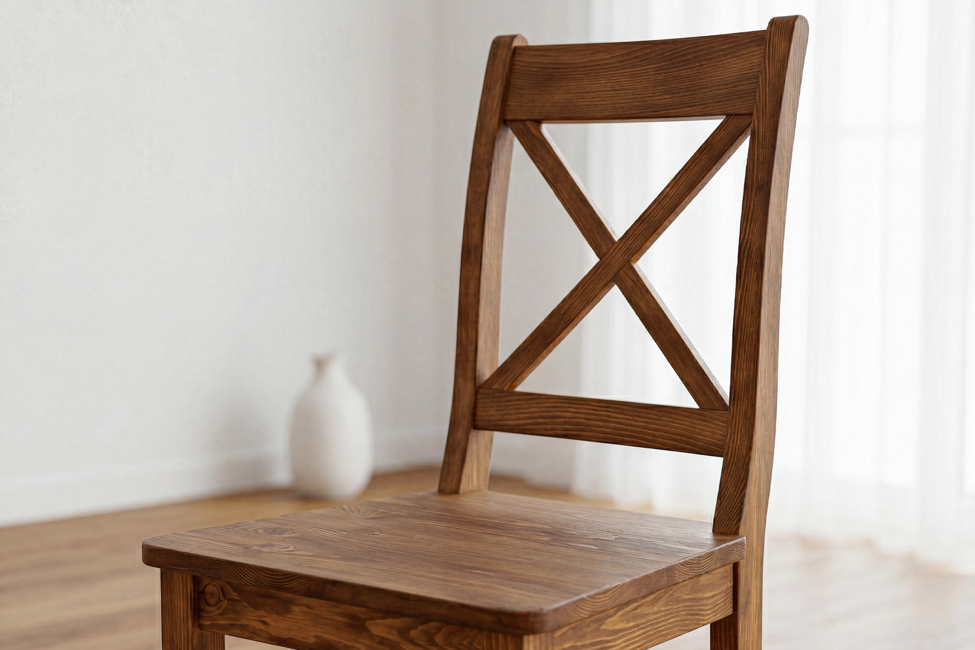 A szék magas minőségű tömör fenyőfából készül, amely erősségével, tartósságával és természetes megjelenésével emelkedik ki.