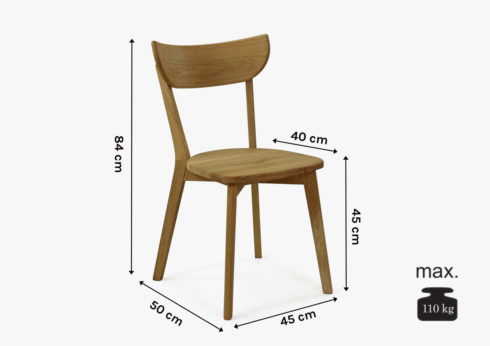 Az Eva szék már teljesen összeszerelve érkezik, így azonnal használatba vehető. A masszív szerkezet stabilitást és hosszú élettartamot biztosít anélkül, hogy a szépség vagy a minőség csorbulna. A javasolt terhelhetőség akár 110 kg, ami aláhúzza a termék praktikusságát és megbízhatóságát. Előnye továbbá az egyszerű kombinálhatóság más tölgybútorokkal – így harmonikus, egységes otthont hozhat létre. A gyártótól közvetlenül elérhető kedvező árnak köszönhetően egy modern széket kap, amely egyszerre kínál minőséget, funkcionalitást és időtlen dizájnt.