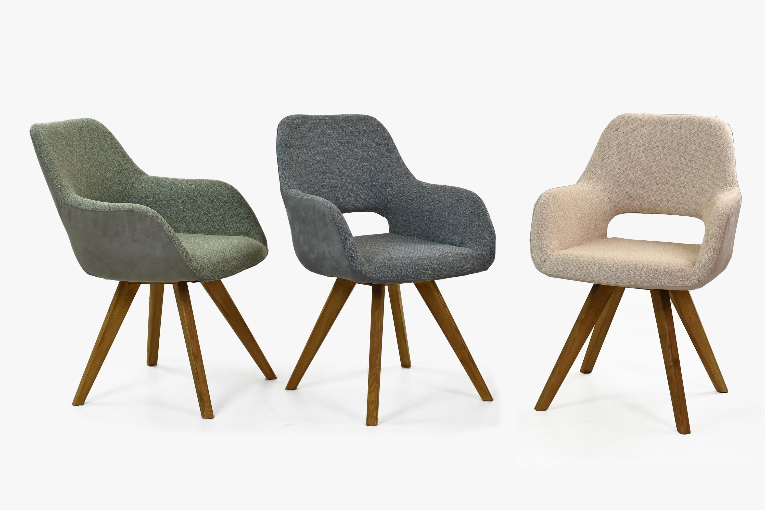 Modern étkezőszék designos nyílással a támlán. A szék kényelmes karfával rendelkezik. A széket szétszerelve szállítjuk, nagyon egyszerű az összeszerelése. Kétszínű kombináció, ahol az ülőfelületen ARTE szövet található, amely rendkívül könnyen tisztítható Easy Clean funkcióval. Kényelmes és komfortos ülést biztosít a bútorkárpit habos kitöltése. A támla modern szövetből készül, amely műszőrmét imitál. A szék lábai tölgyfából készültek, természetes olajjal kezelve. Az összes Asella szék variáció megtekintése