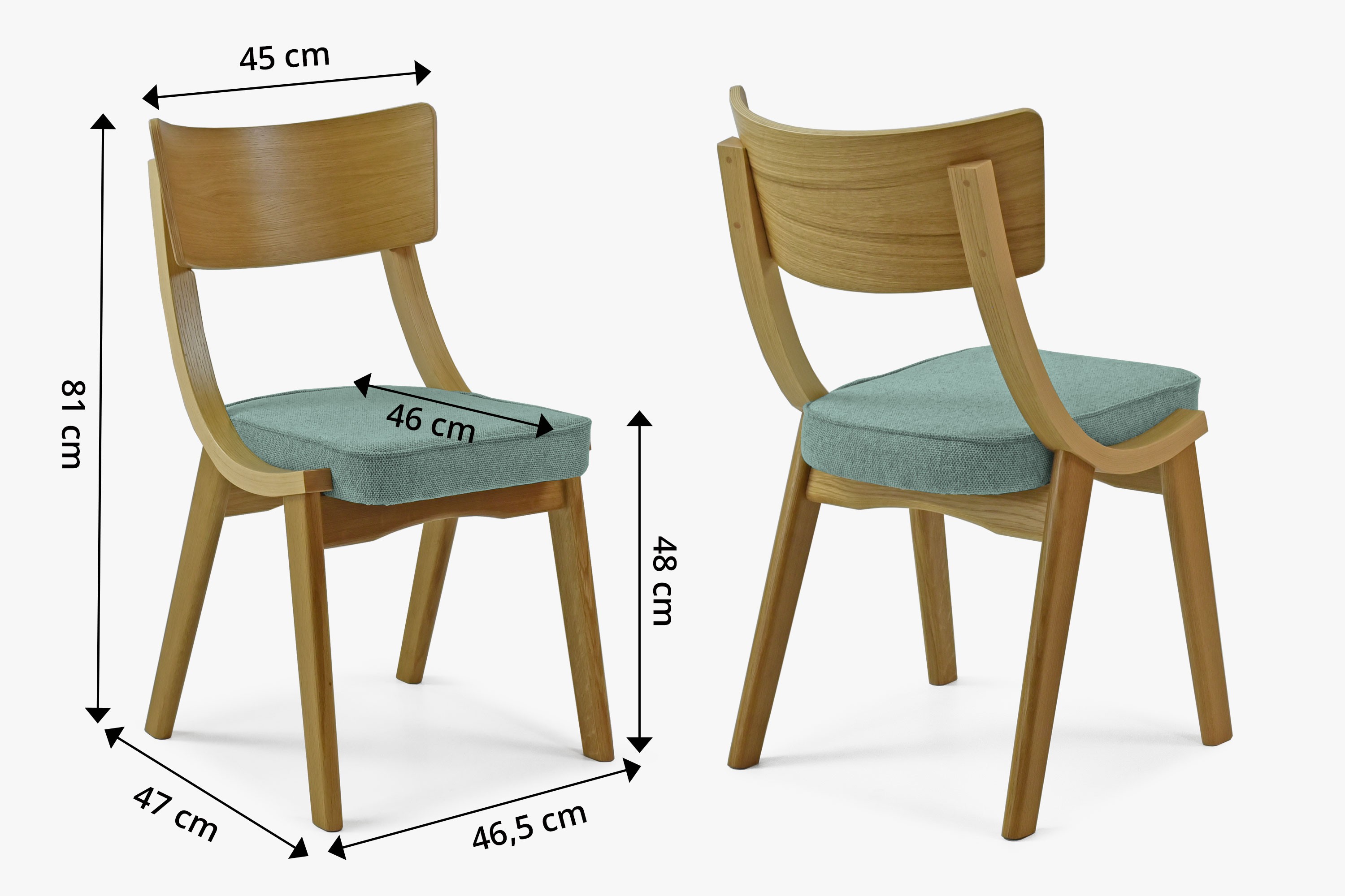 Tölgyfa étkezőszék menta színű kárpitozással, ergonomikus design