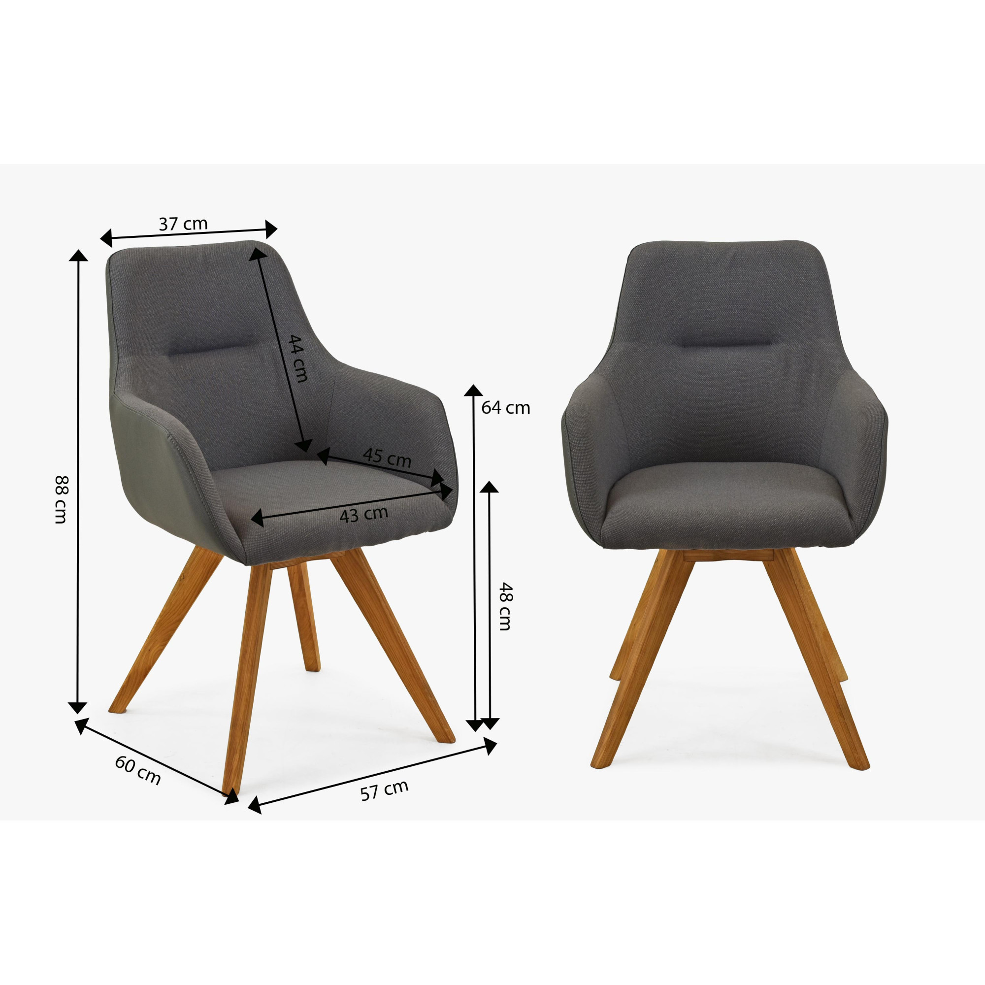 A modern étkezőszék forgatható ülőkével ideális kiegészítője otthonának. A szék lábai tölgyfából készülnek, amelyet natúr tölgy színű természetes olajjal kezeltek, ami nemcsak szép megjelenést, hanem hosszú élettartamot is biztosít. Ez a szék különböző belső terekhez alkalmas, és könnyen kombinálható a többi tölgyfából készült bútorral. Az FSC tanúsítványnak köszönhetően biztos lehet benne, hogy széke fenntartható forrásokból származik. Az ülőke forgatható, ami növeli funkcionalitását és kényelmes használatot tesz lehetővé étkezőasztalnál vagy akár íróasztalnál is. A szék hátoldalán lévő sötétszürke anyag elegáns hatást kelt és kellemesen utánzója a természetes bőrnek, míg az elülső szürke anyag modern megjelenést ad és kényelmes ülést biztosít. A Colmar szék kiváló választás azoknak, akik stílusos, kényelmes és funkcionális bútort keresnek otthonukba.