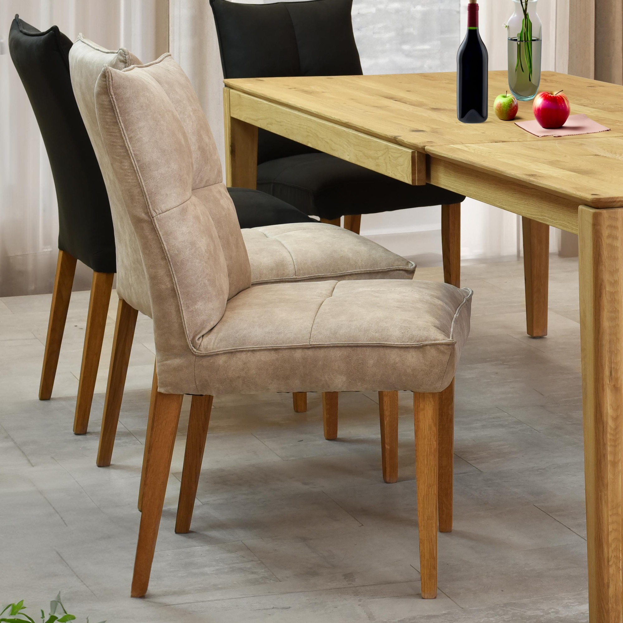 Komfortos étkezőszék Riga szürke kárpitozás - tölgyfa lábak