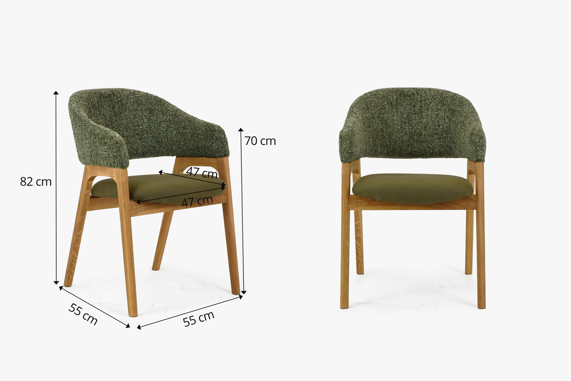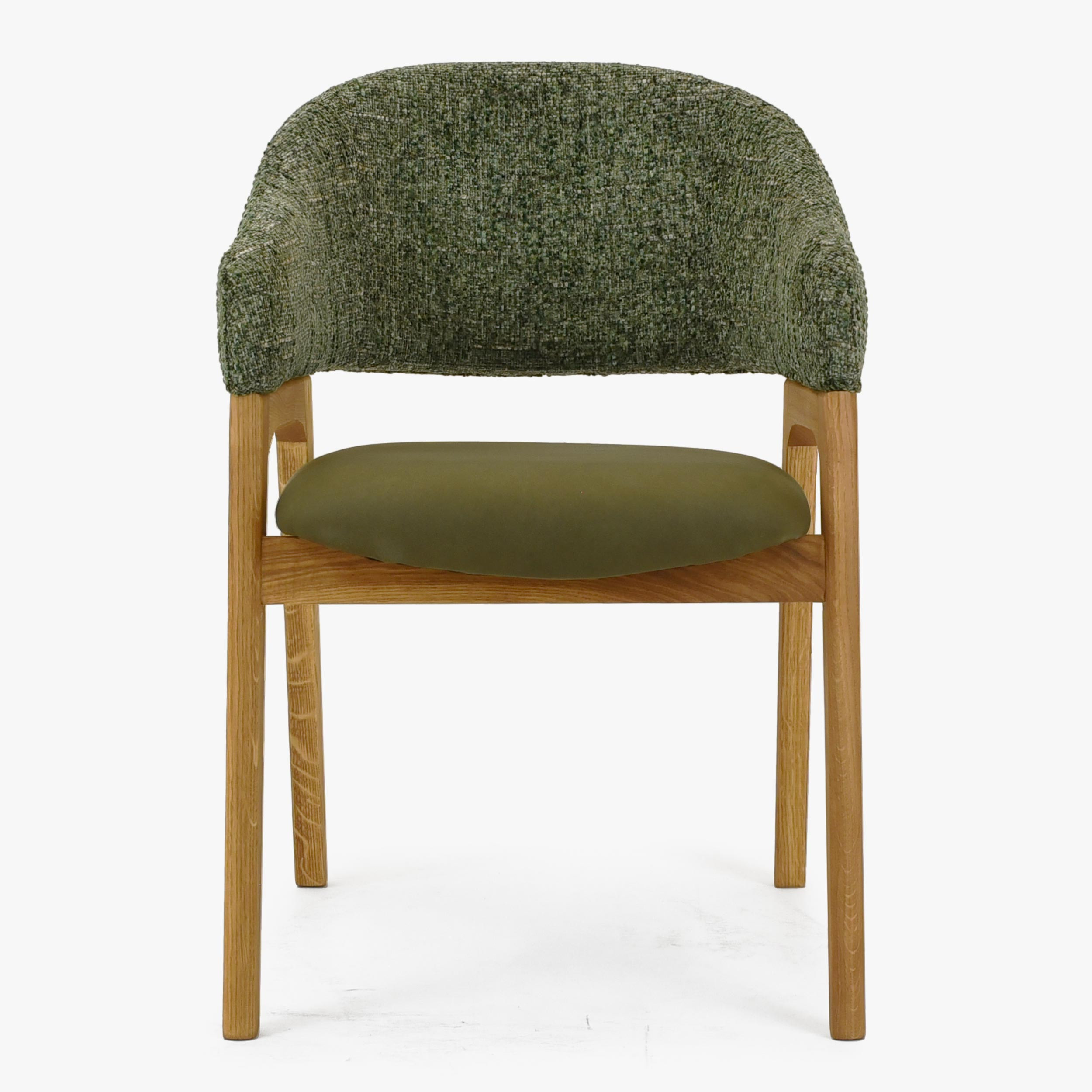 Ez a zöld színű karfás szék ideális választás minden otthonba, amely természetes fa alapanyagú, minőségi és stílusos bútort keres. A szék kombinálja a kiemelkedő dizájnt a magas komforttal és a mi rendkívüli tapasztalatunkkal az étkezőszékek gyártásában. Most vonzó áron elérhető, akár étkezőszék kiegészítőjeként, akár kényelmes fotelként a dolgozószobájába. A széket tölgyfából készítik, ami biztosítja stabilitását és hosszú élettartamát, ugyanakkor természetes eleganciát és meleget hoz a belső térbe.
