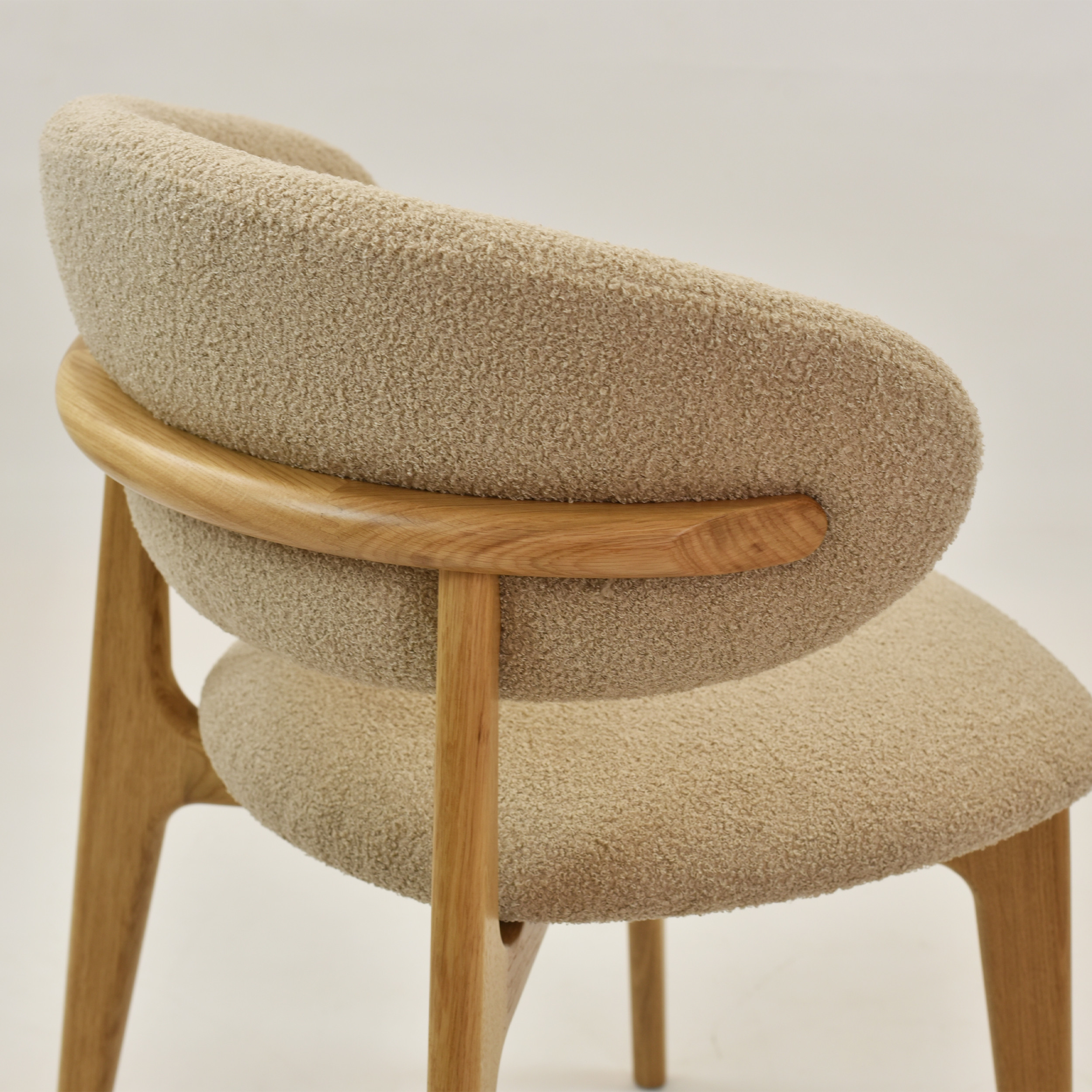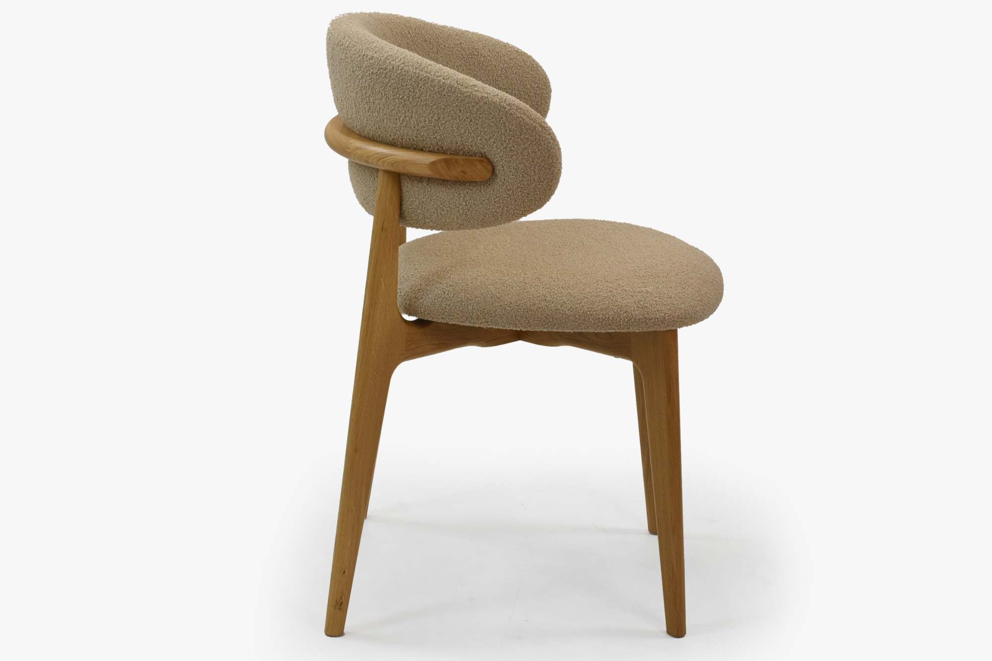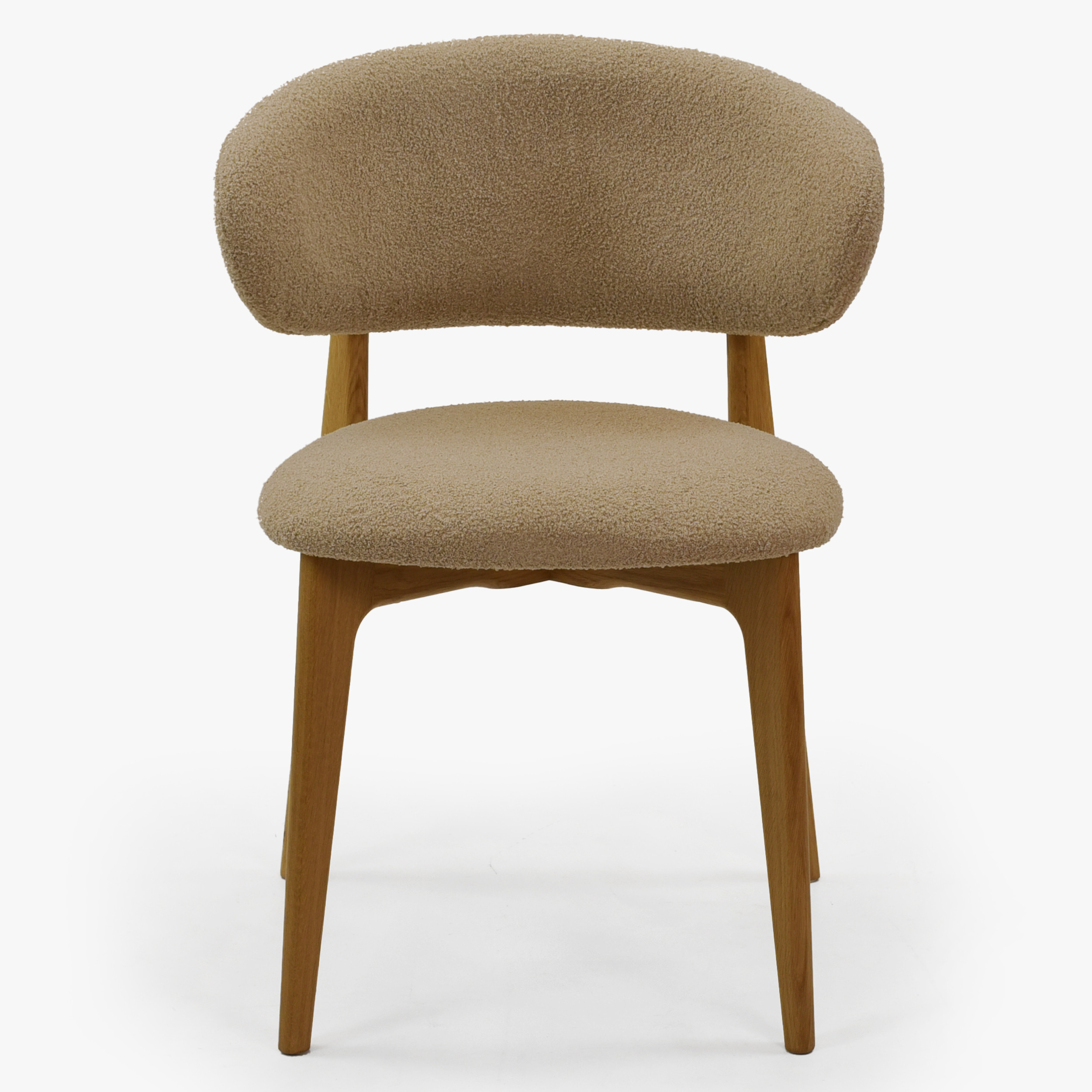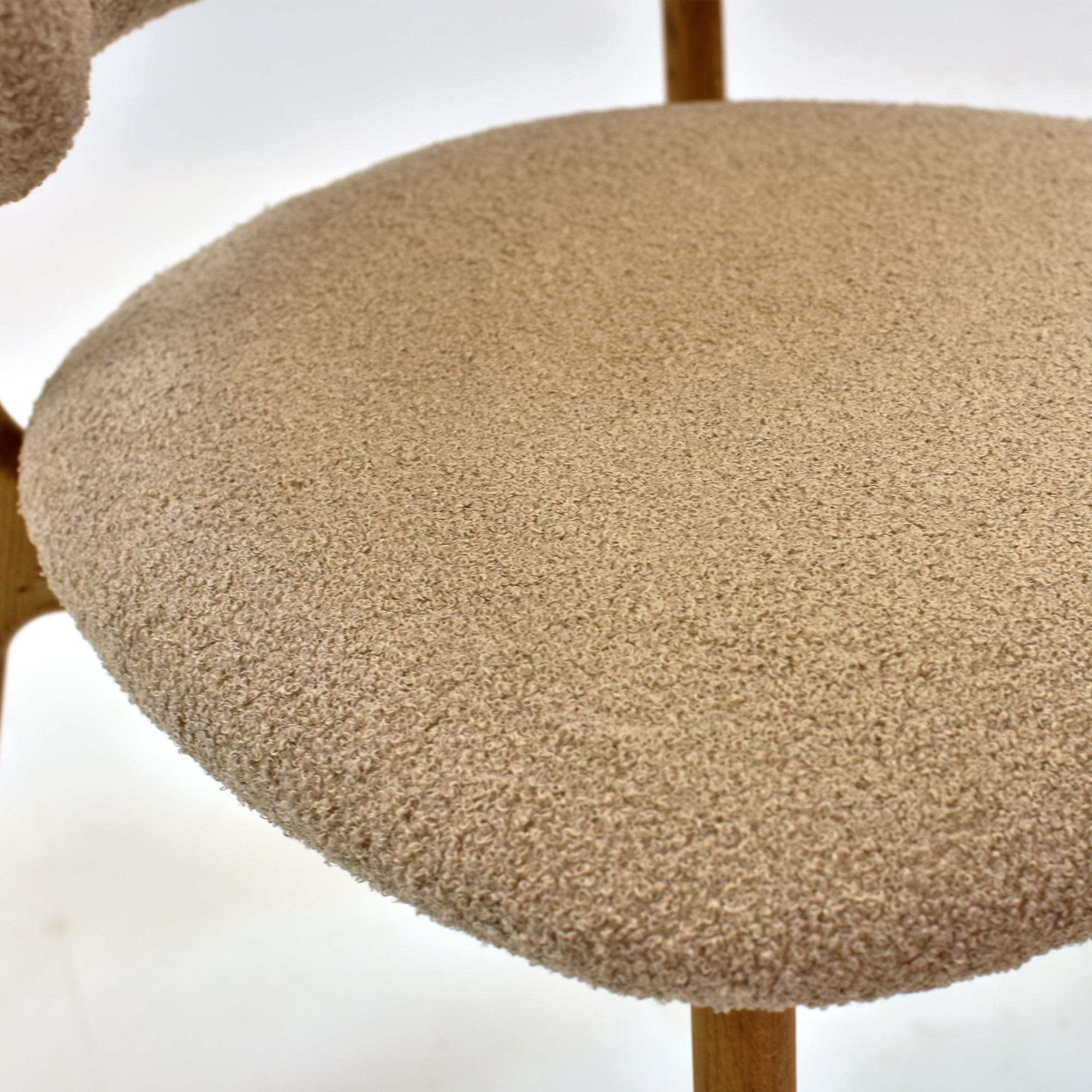 Tömör tölgyfa egymásra rakható szék bézs-barna bouclé ülőlappal