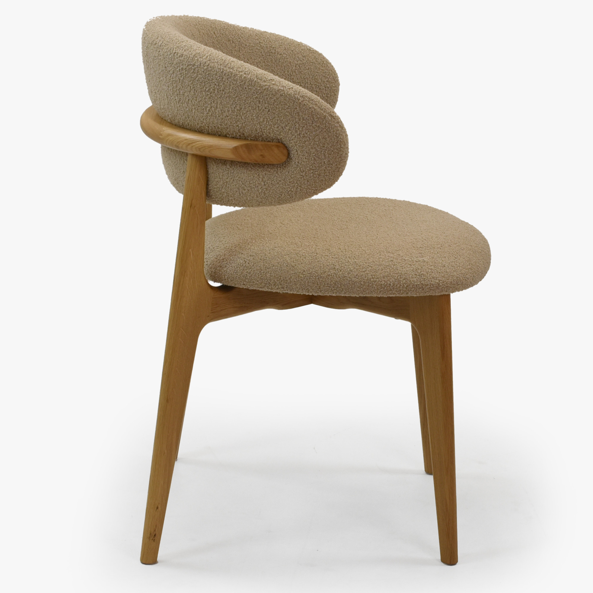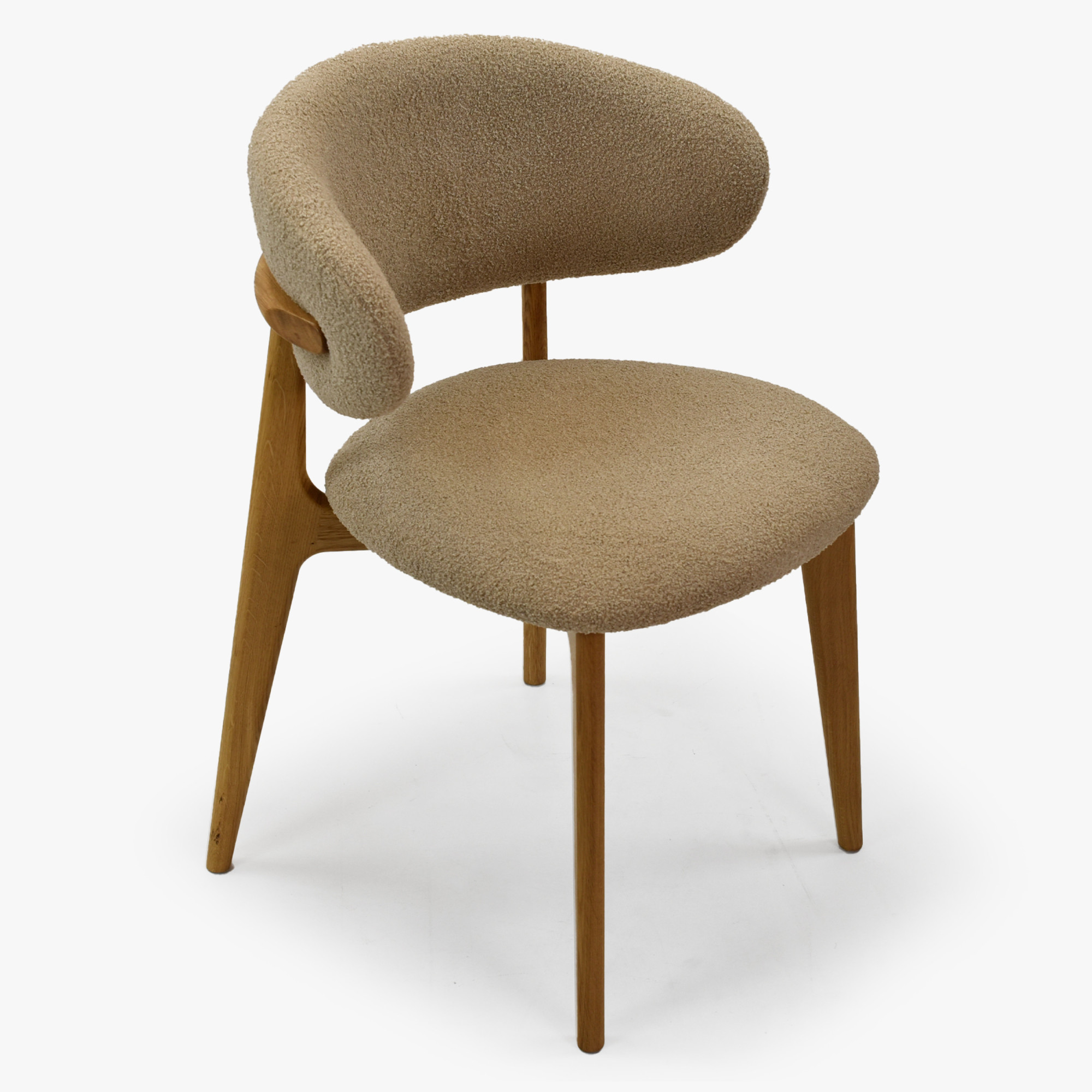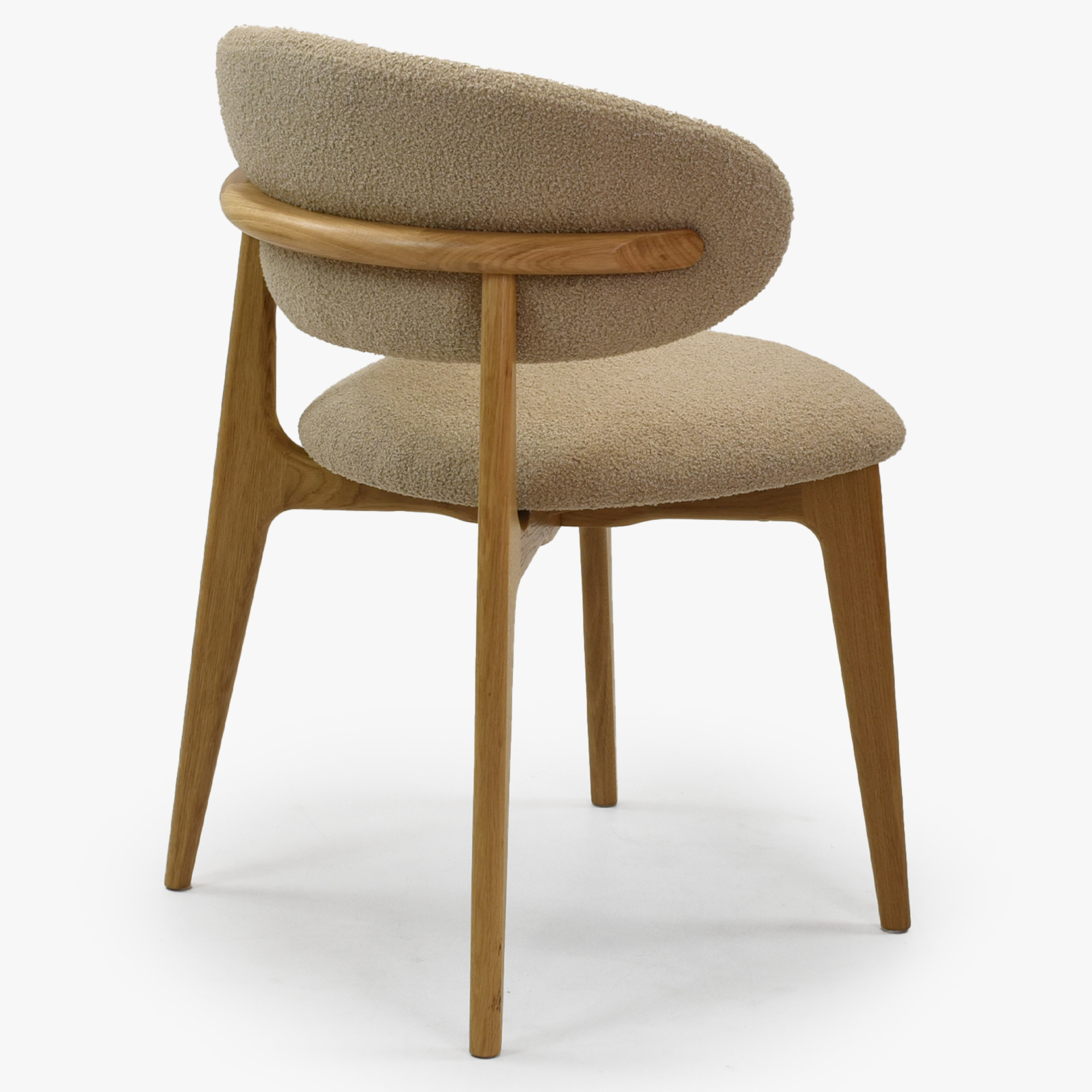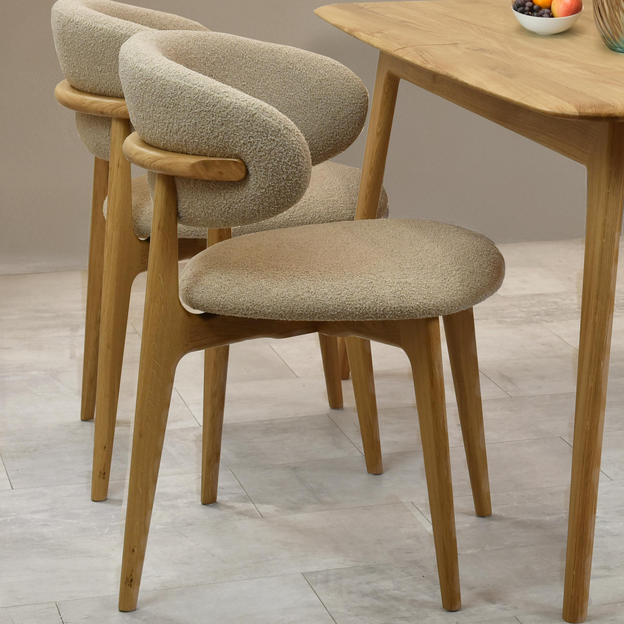 Tömör tölgyfa egymásra rakható szék bézs-barna bouclé ülőlappal