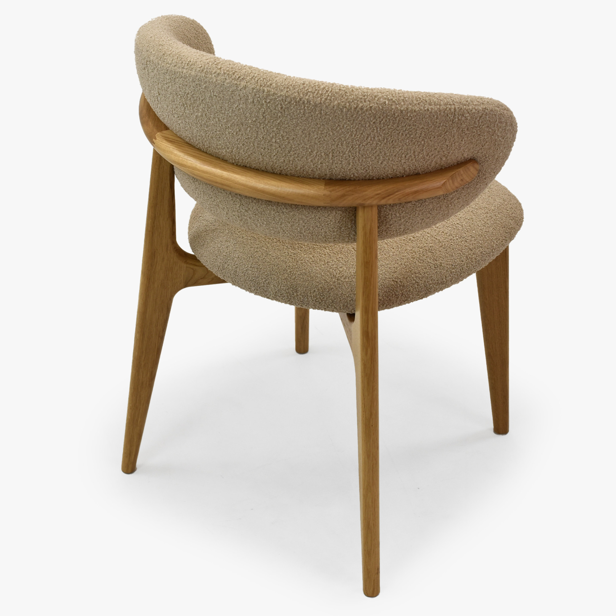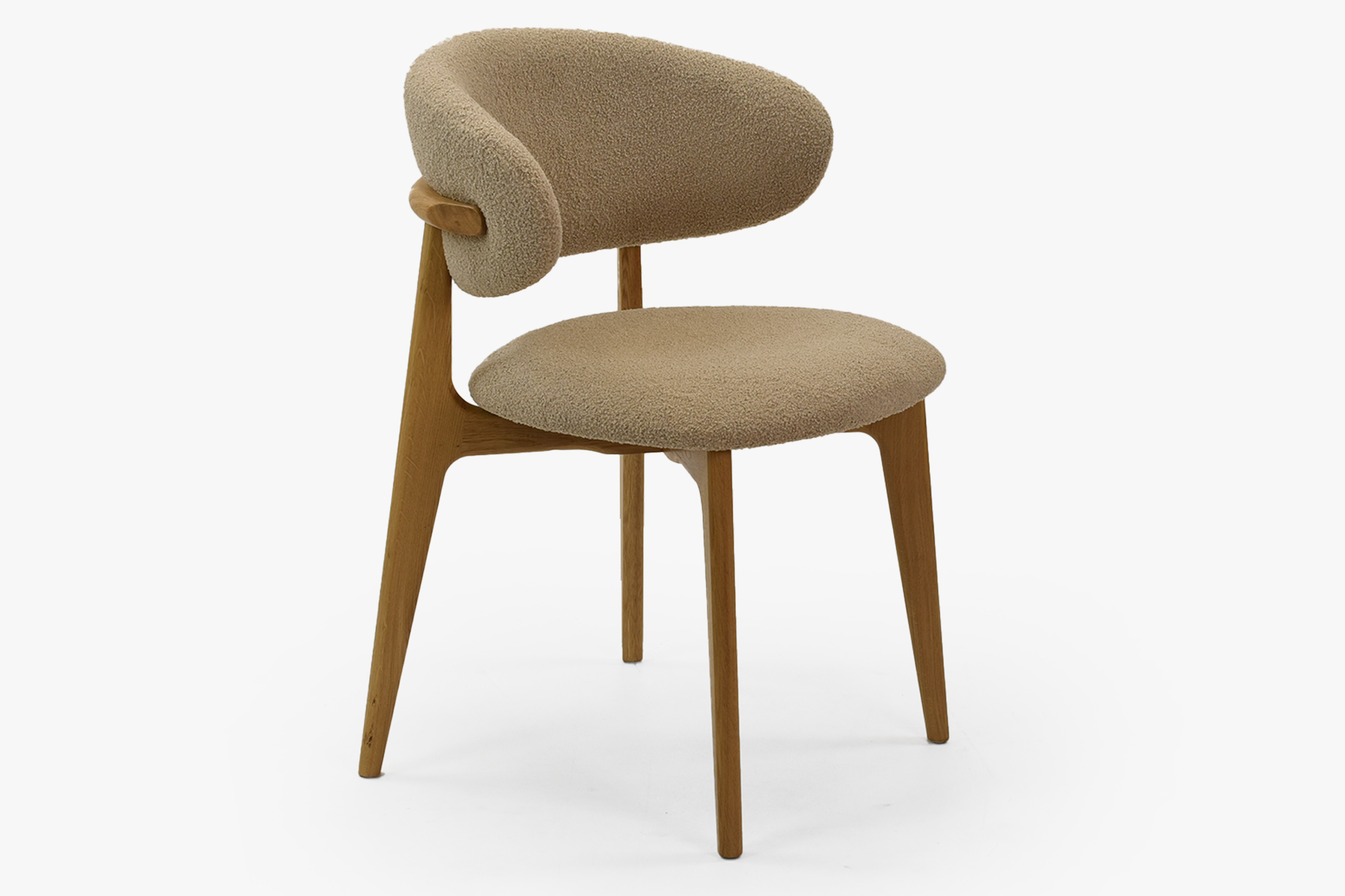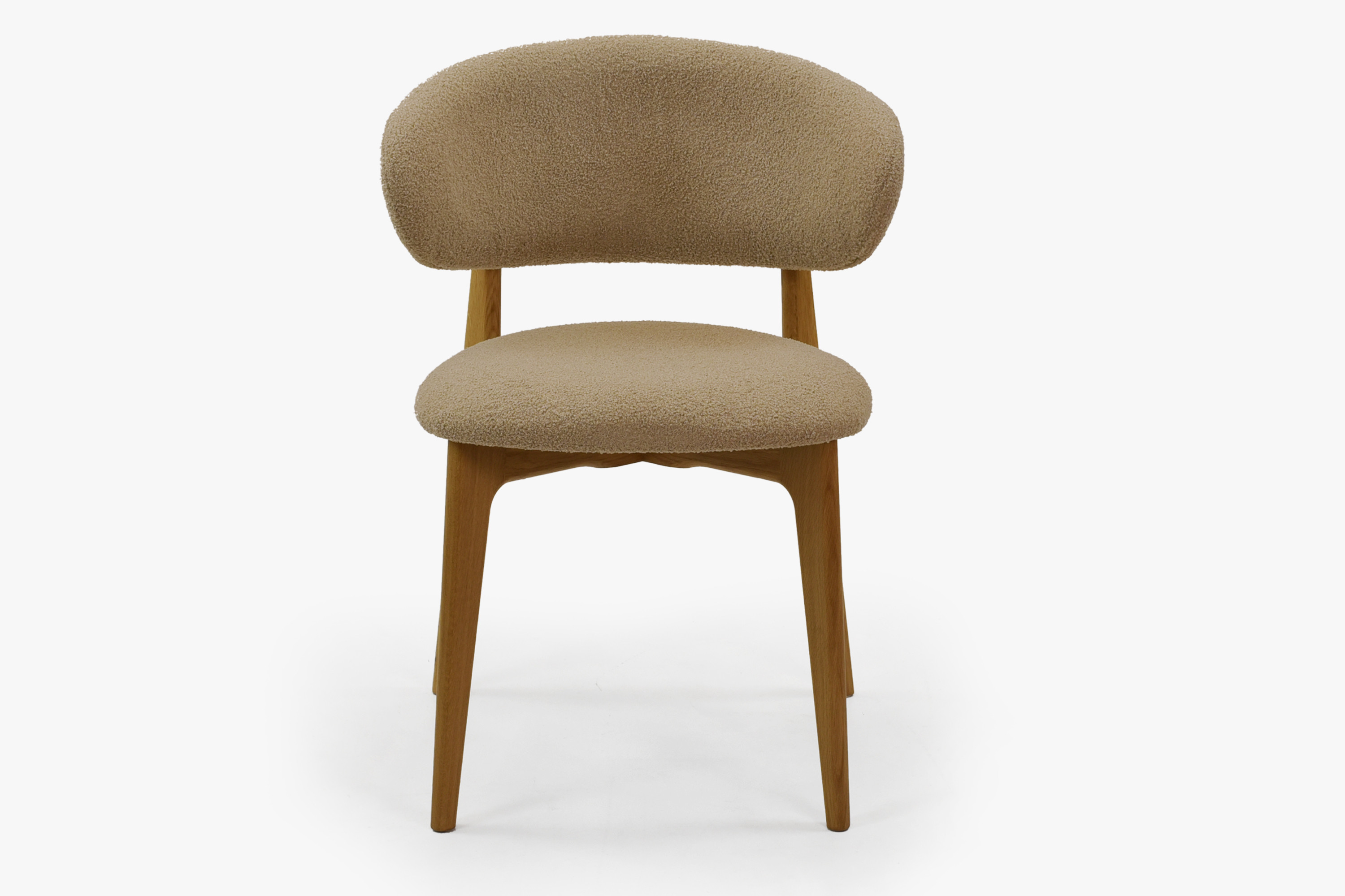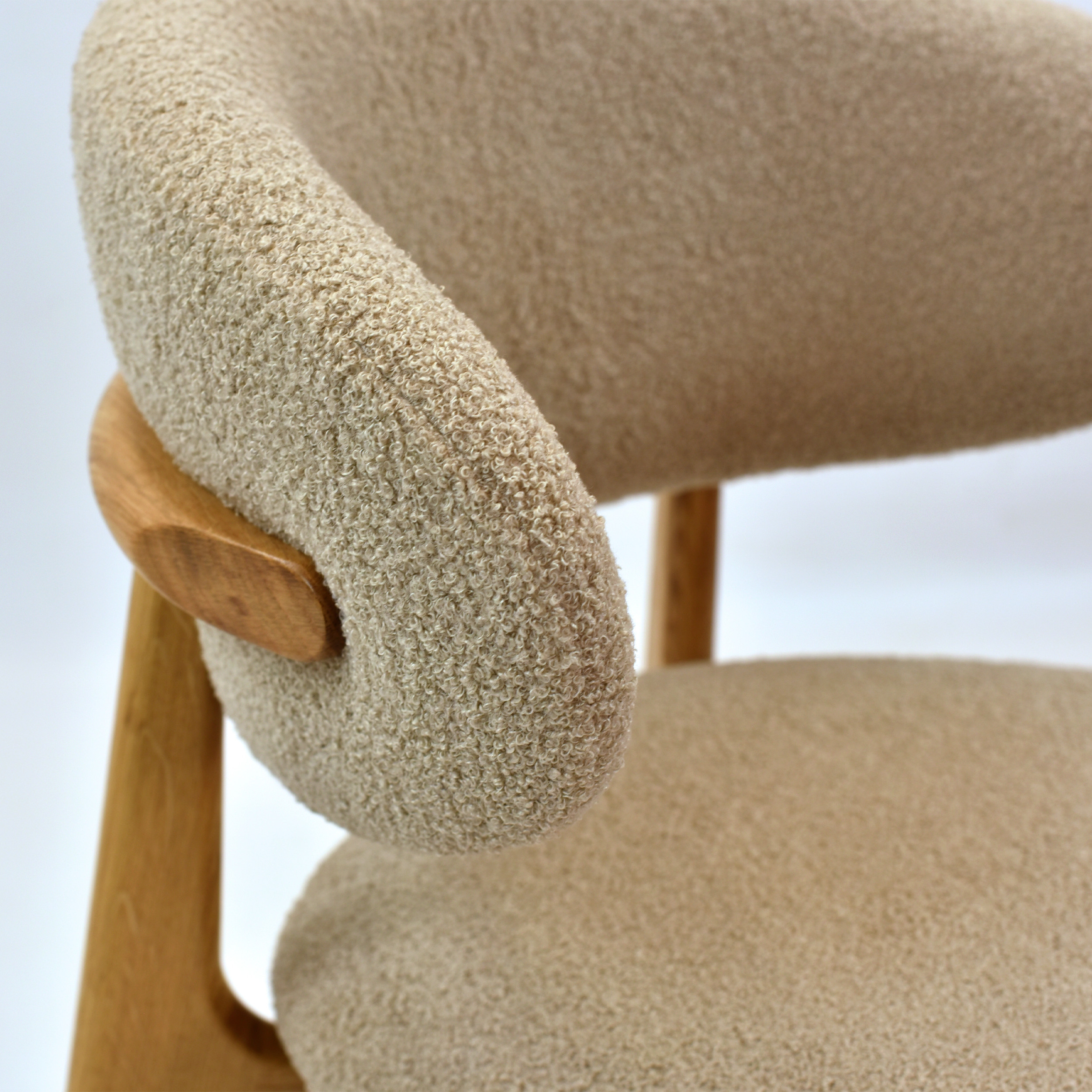 Tömör tölgyfa egymásra rakható szék bézs-barna bouclé ülőlappal