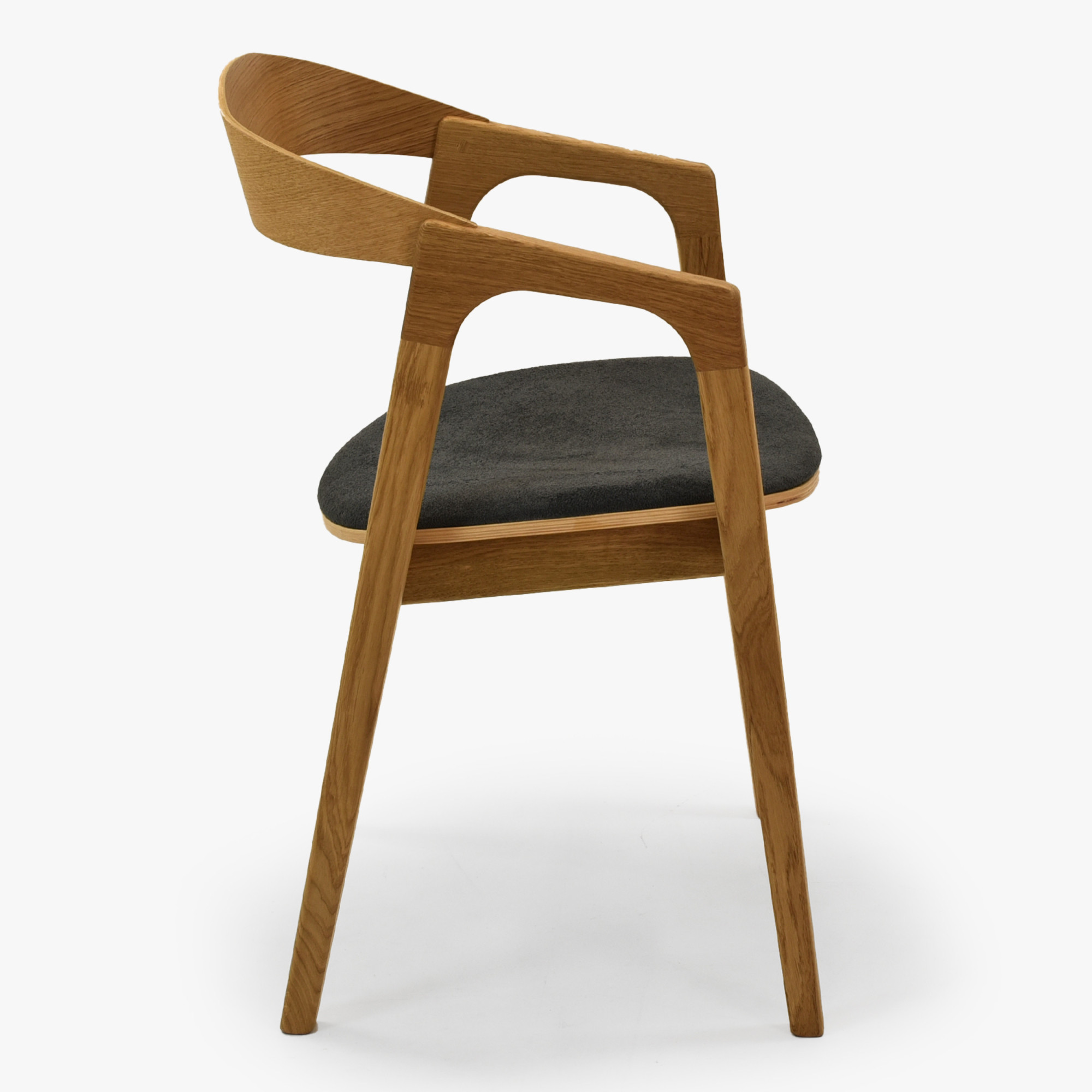 Modern tölgyfa étkezőszék sötétszürke bouclé kárpittal