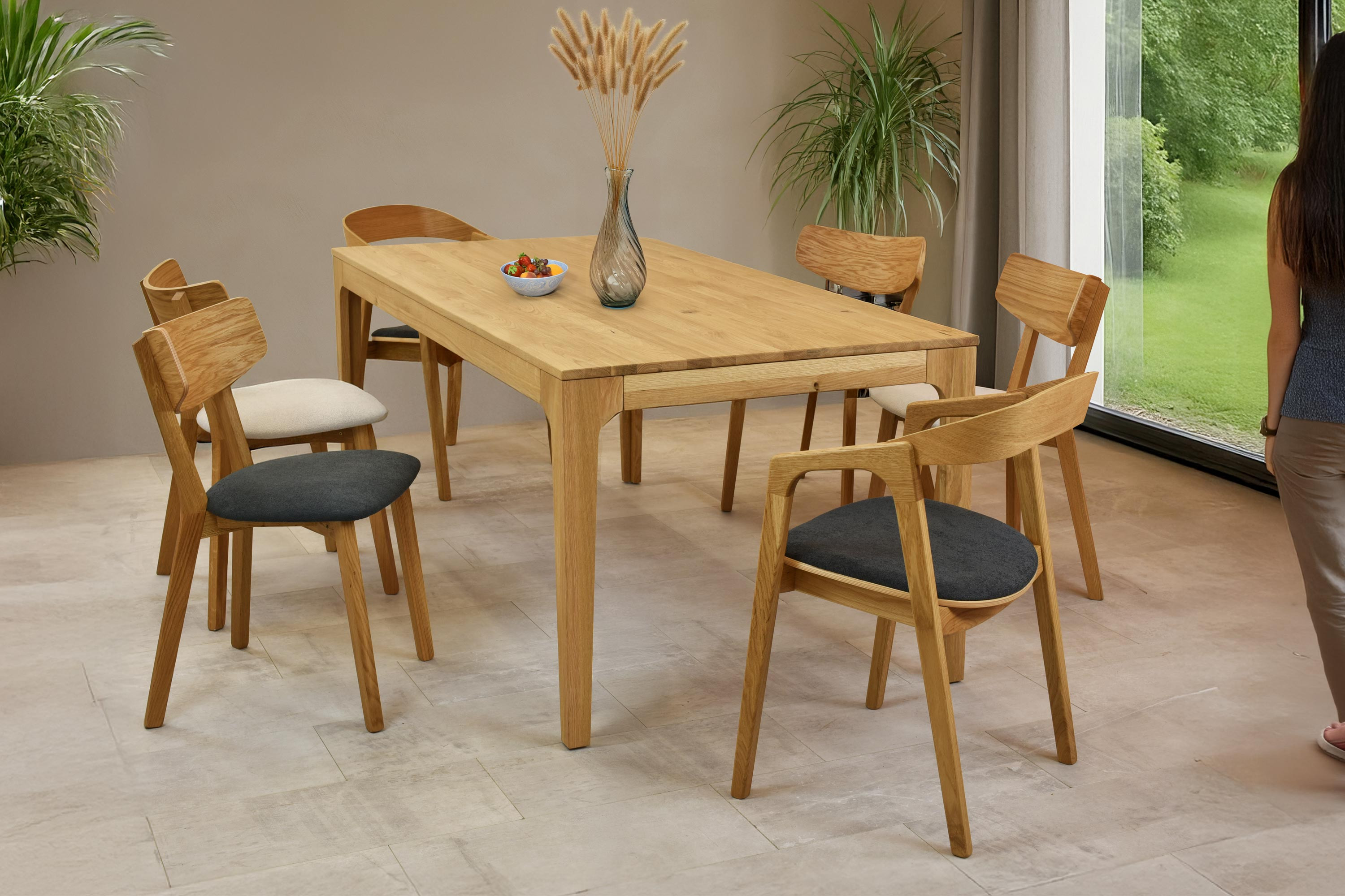 Prémium Modern tölgy étkezőfotel ötvözi a természetes anyag tisztaságát és a kifinomult olasz dizájnt. A tömör tölgyfa keret fenntartható, FSC tanúsítvánnyal rendelkező erdőkből származik, és természetes olajjal van kezelve, amely kiemeli a fa egyedi erezetét, egyben védi a felületet a mindennapi kopástól. Az ergonomikusan formázott karfák folyamatosan átmennek a háttámlába, és kivételes kényelmet nyújtanak még huzamosabb ülés esetén, akár családi vacsoránál, akár ünnepi ebédnél.